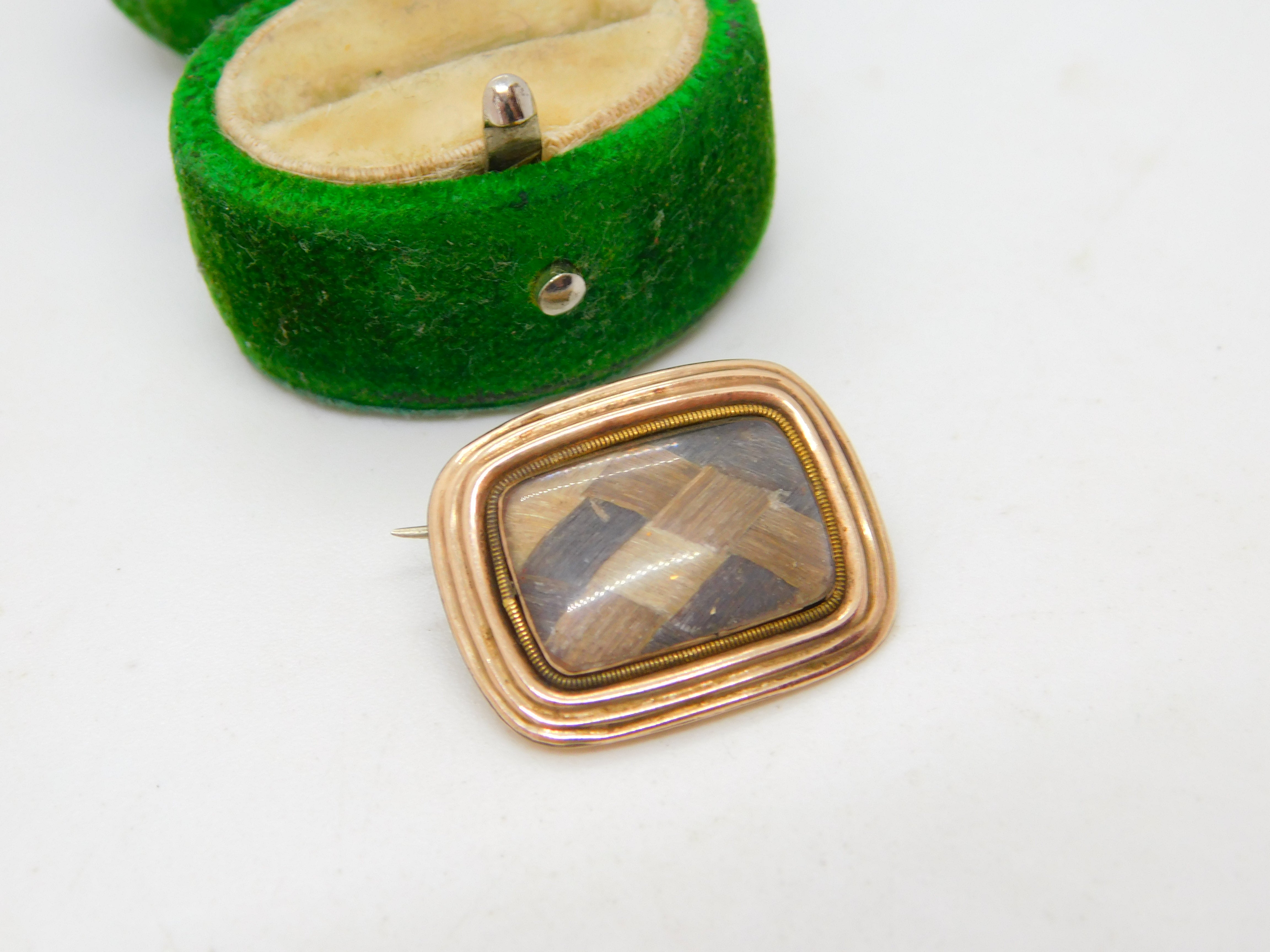 George III 9ct Gold & Woven Hair Set Mourning Brooch Antique c1820