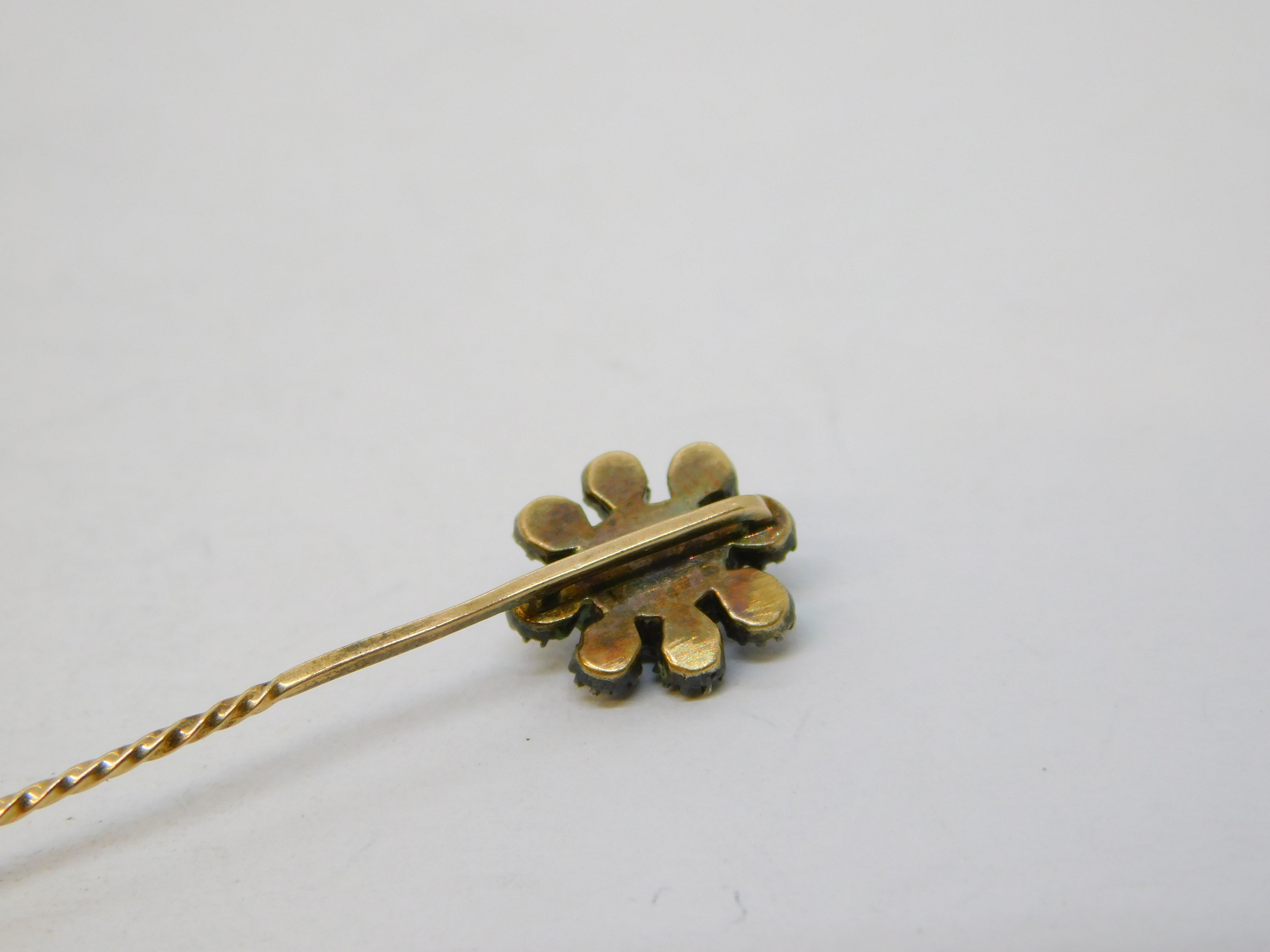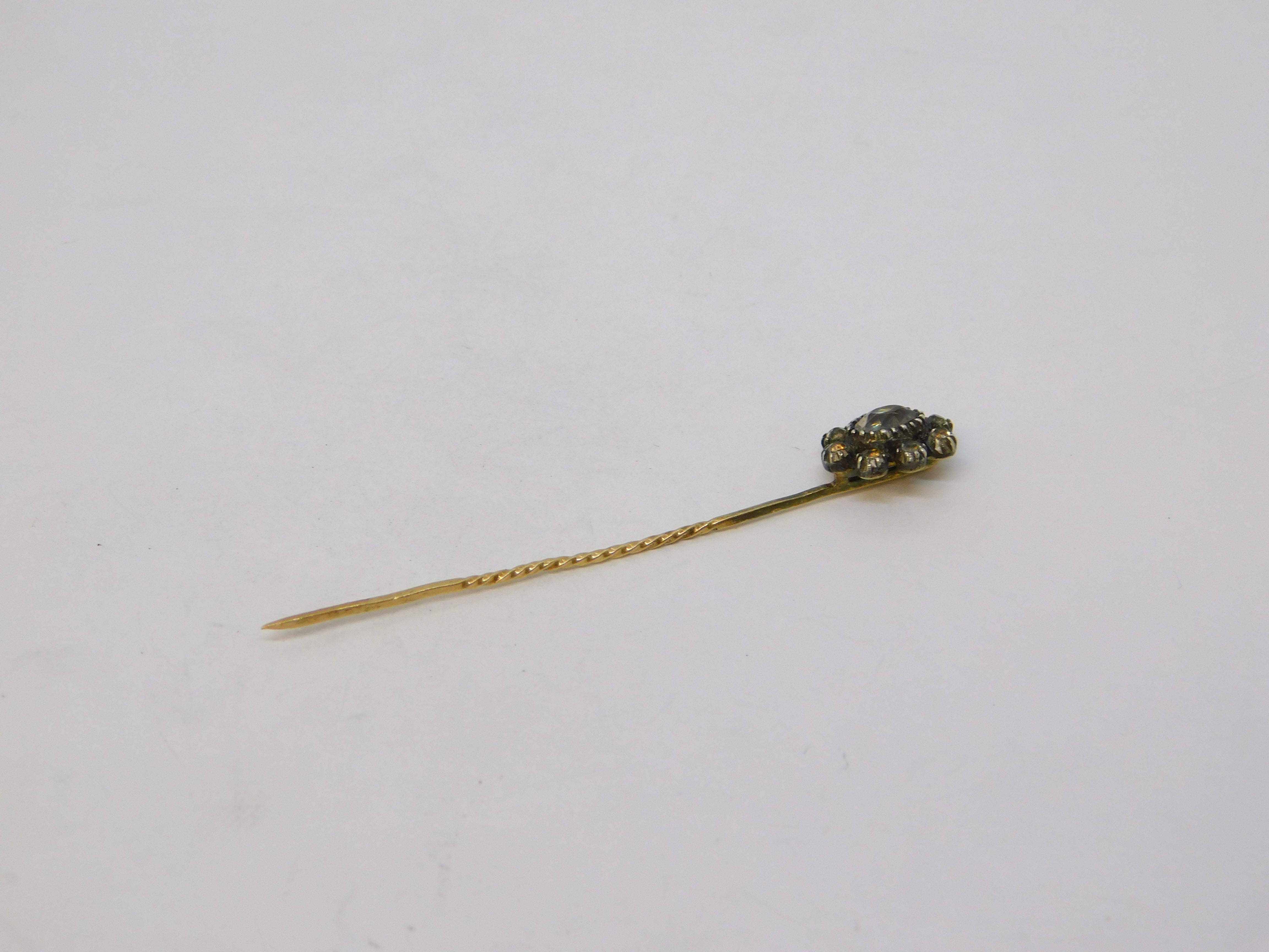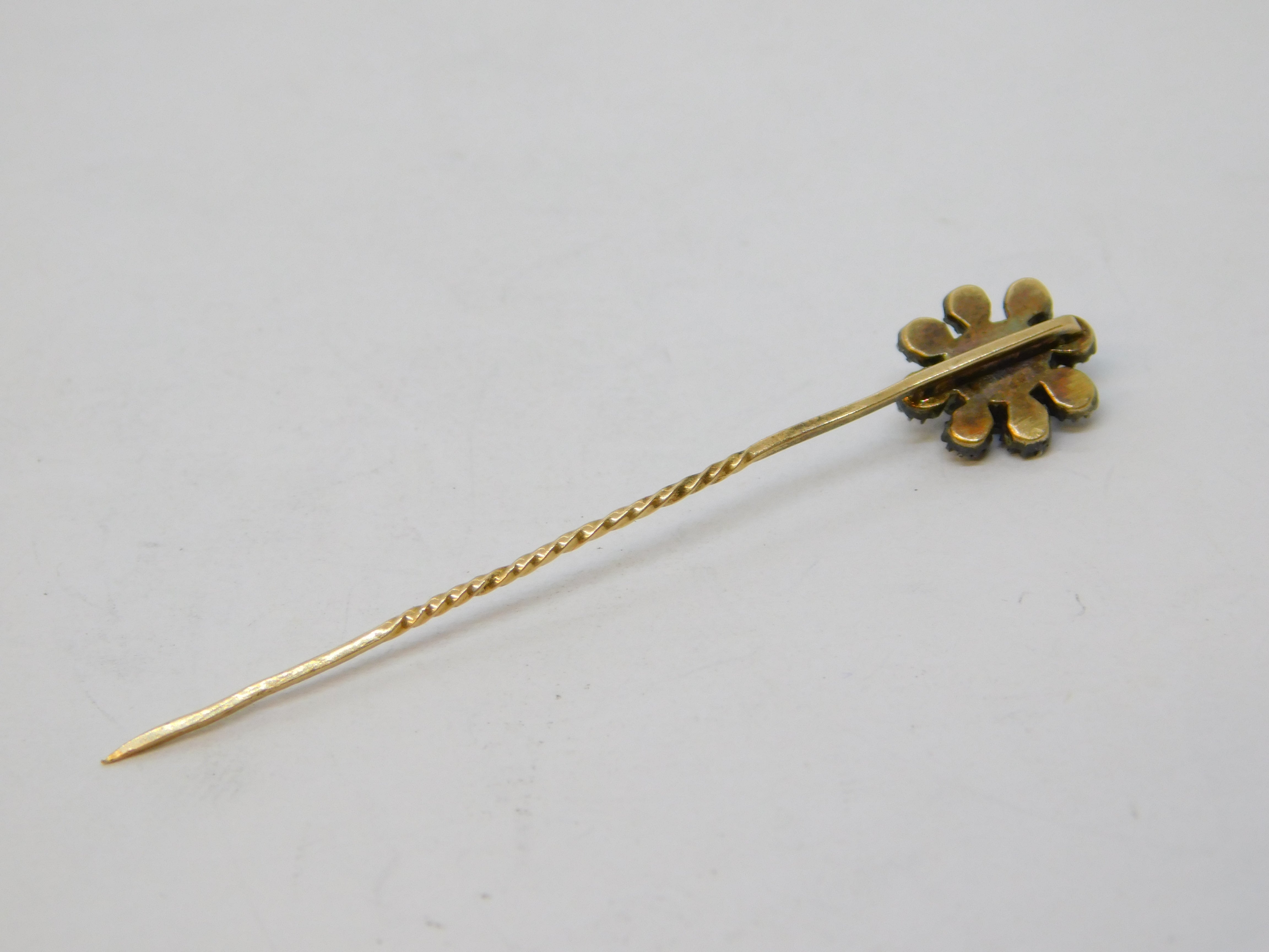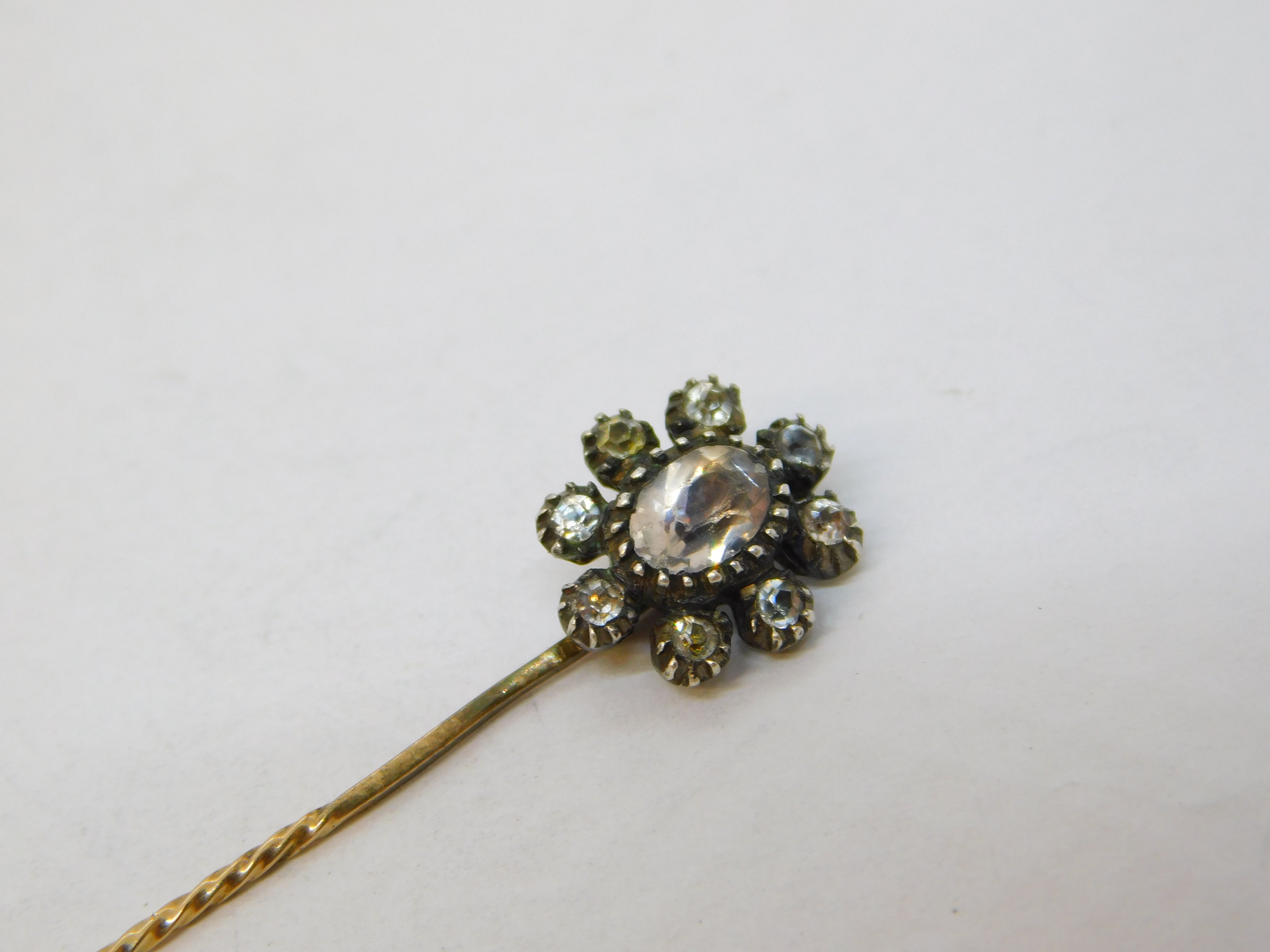 George III 9ct Rose Gold Crystal Set Floral Stick Pin Antique c1790