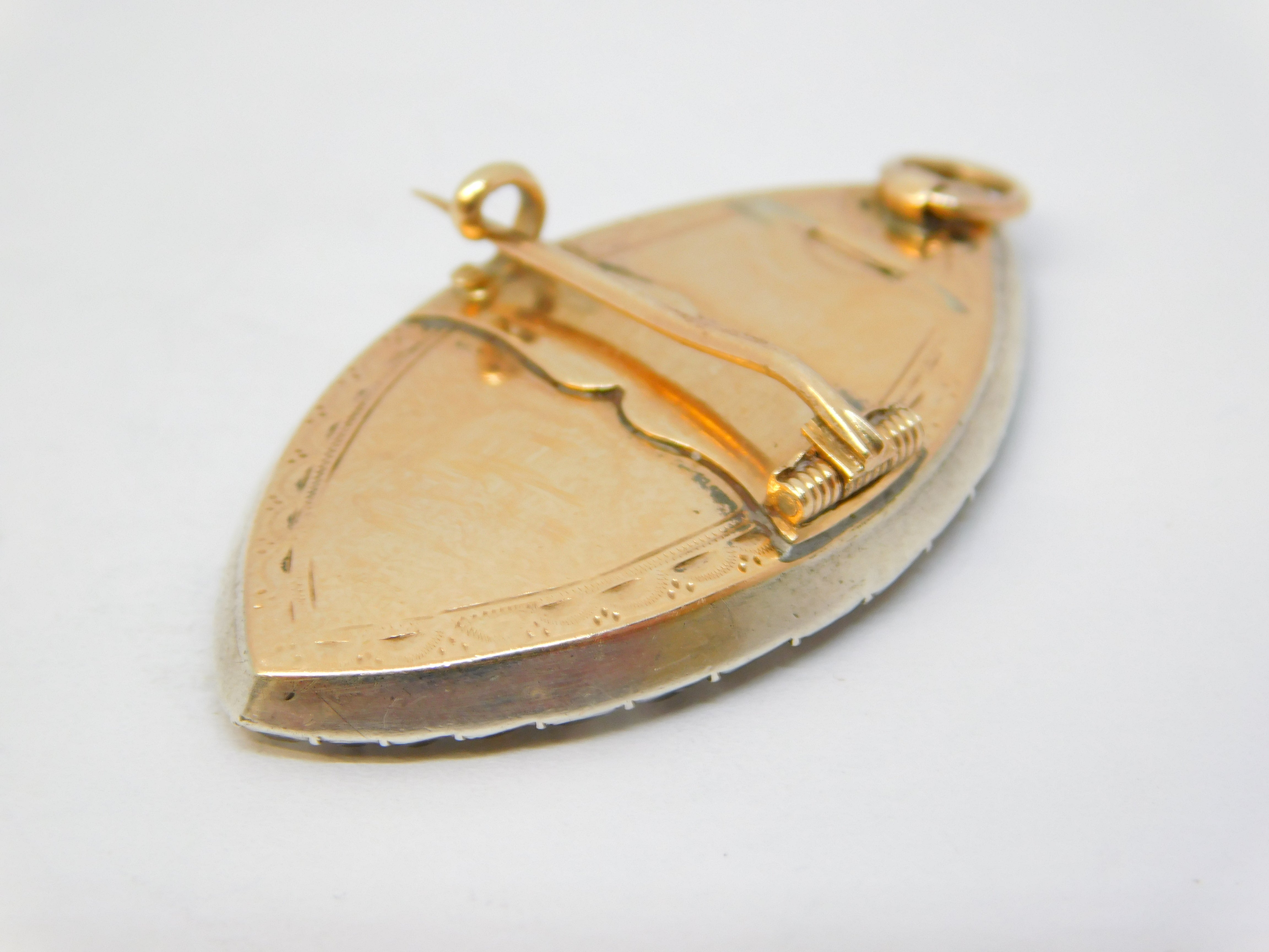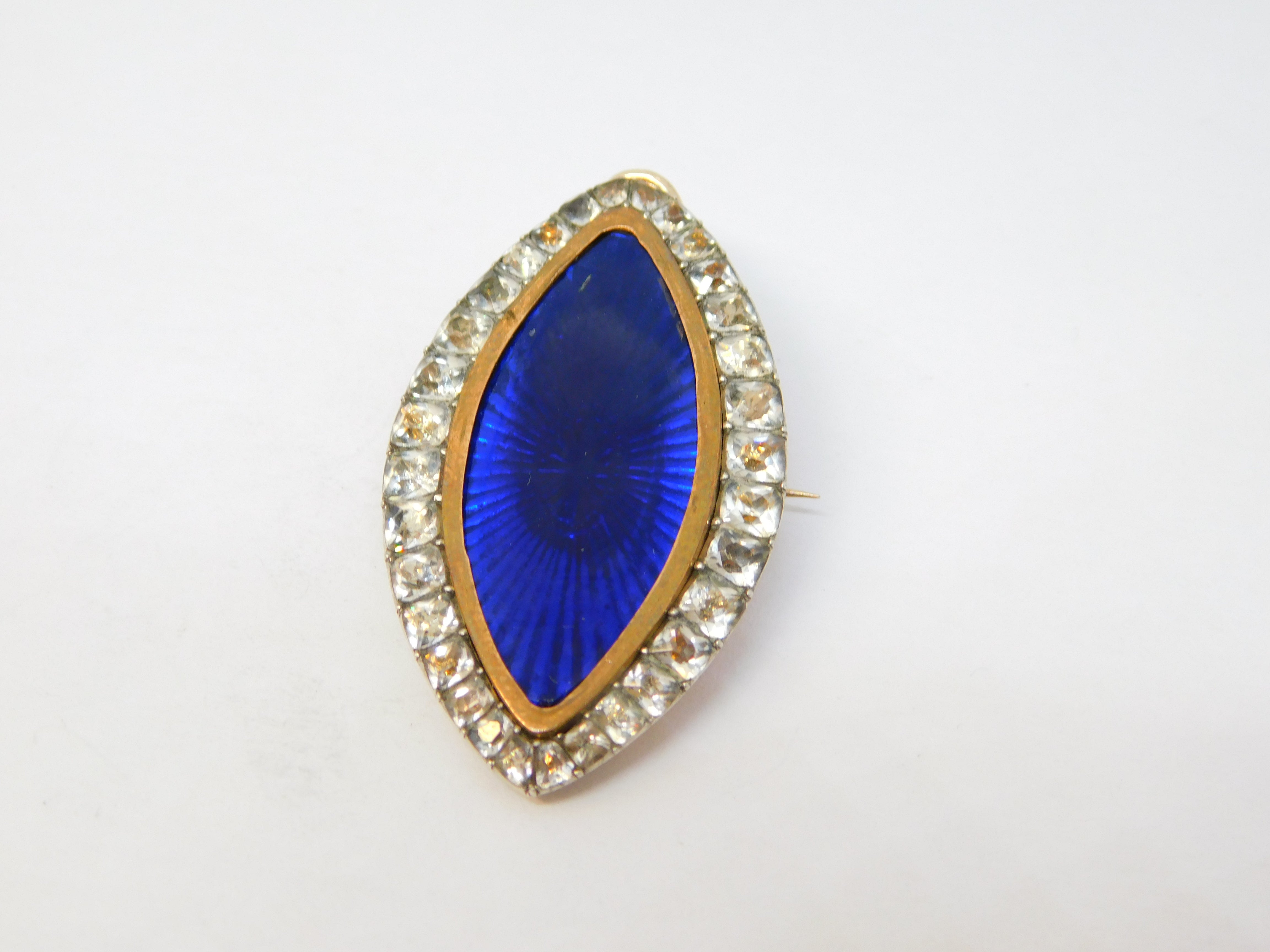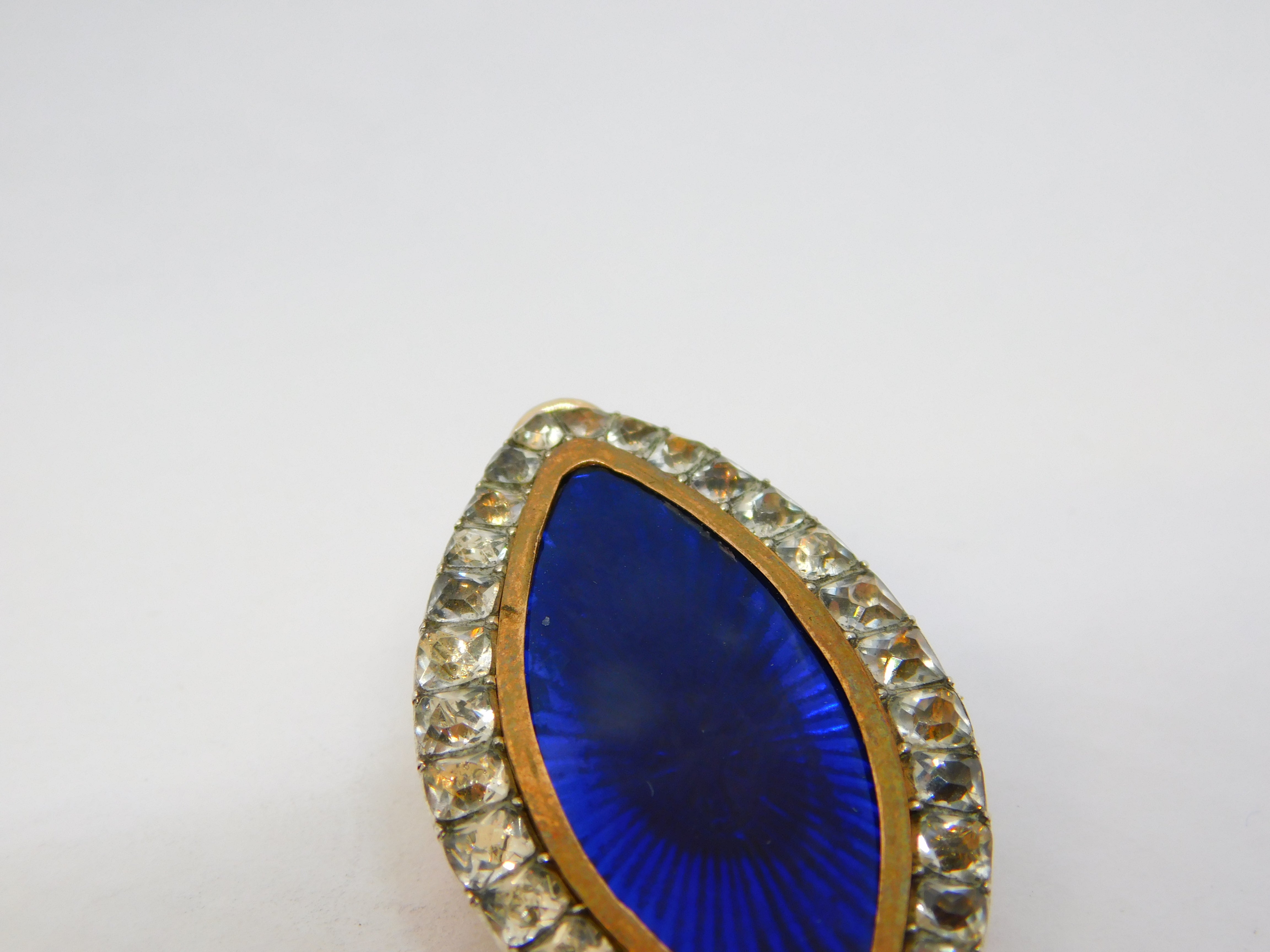 Details: A fantastic and wonderfully designed antique georgian 9ct rose gold & silver set mourning pendant or brooch adorned with superb blue enamel to the front surrounded by paste stones c1820, the gold and silver have been XRF tested. This is a wonderful item that would make a perfect gift or addition to any collection. The BOX pictured is for PRESENTATION ONLY and is NOT included in the listings but used to frame the pictures unless specifically stated otherwise.
