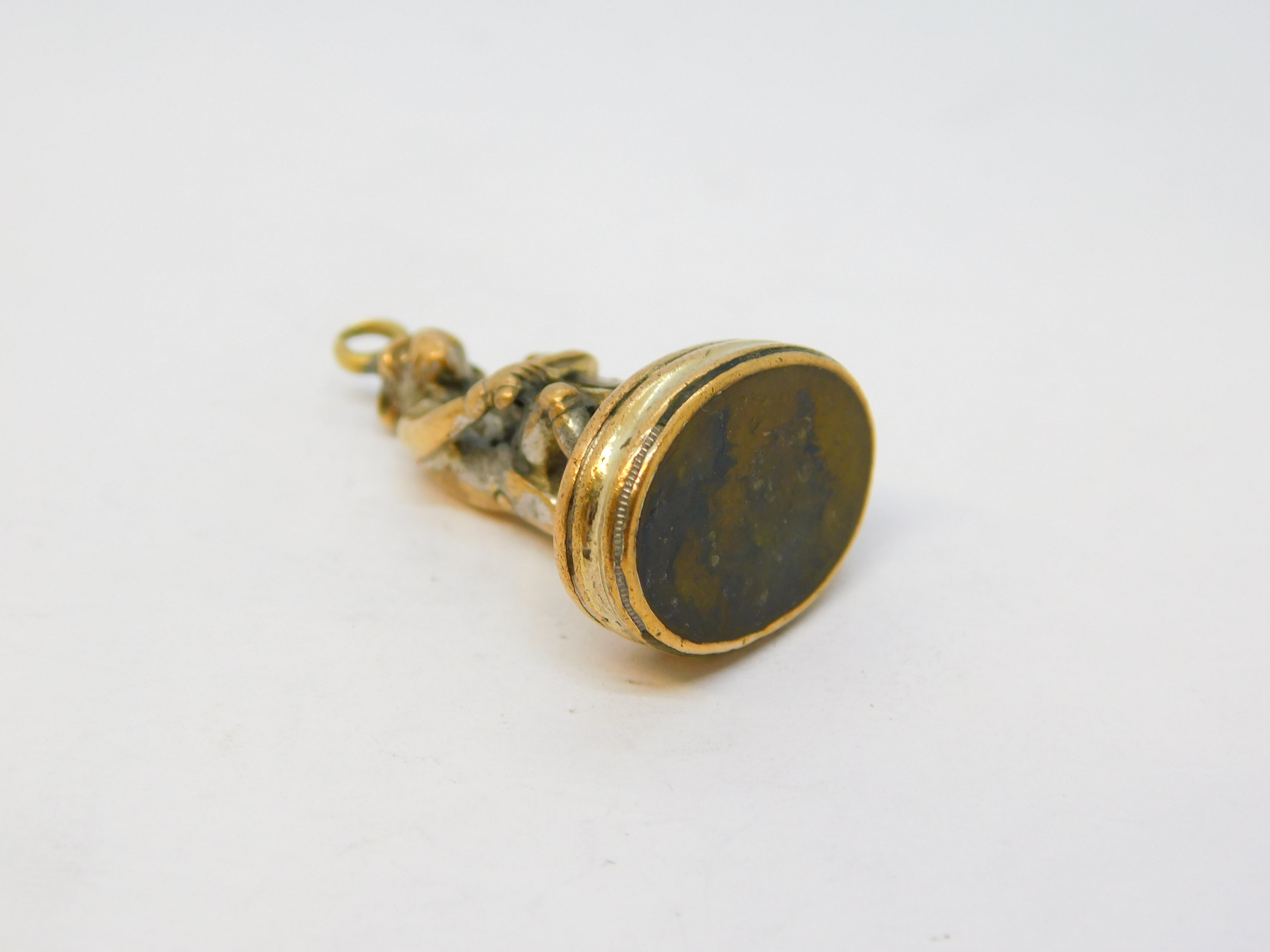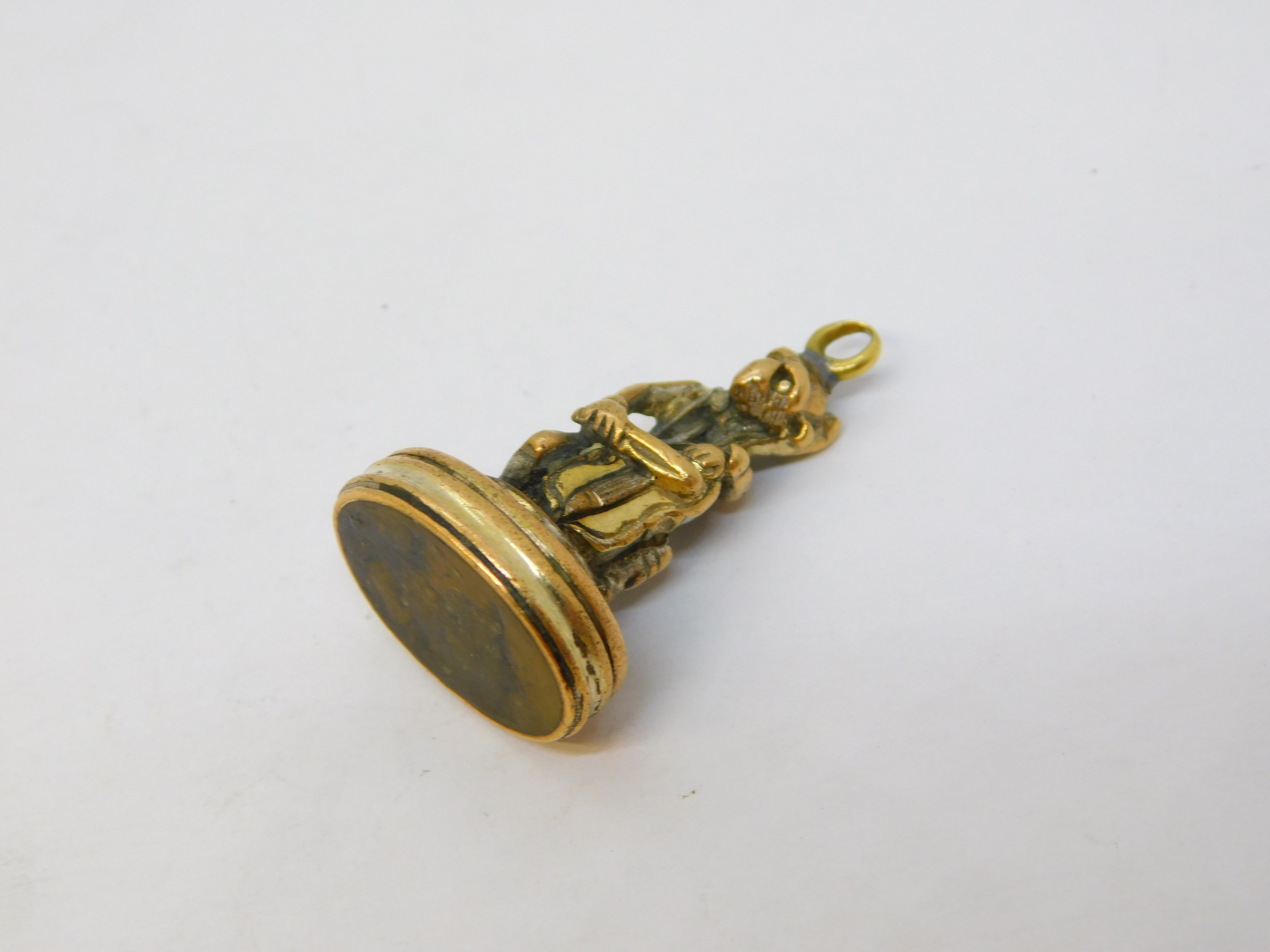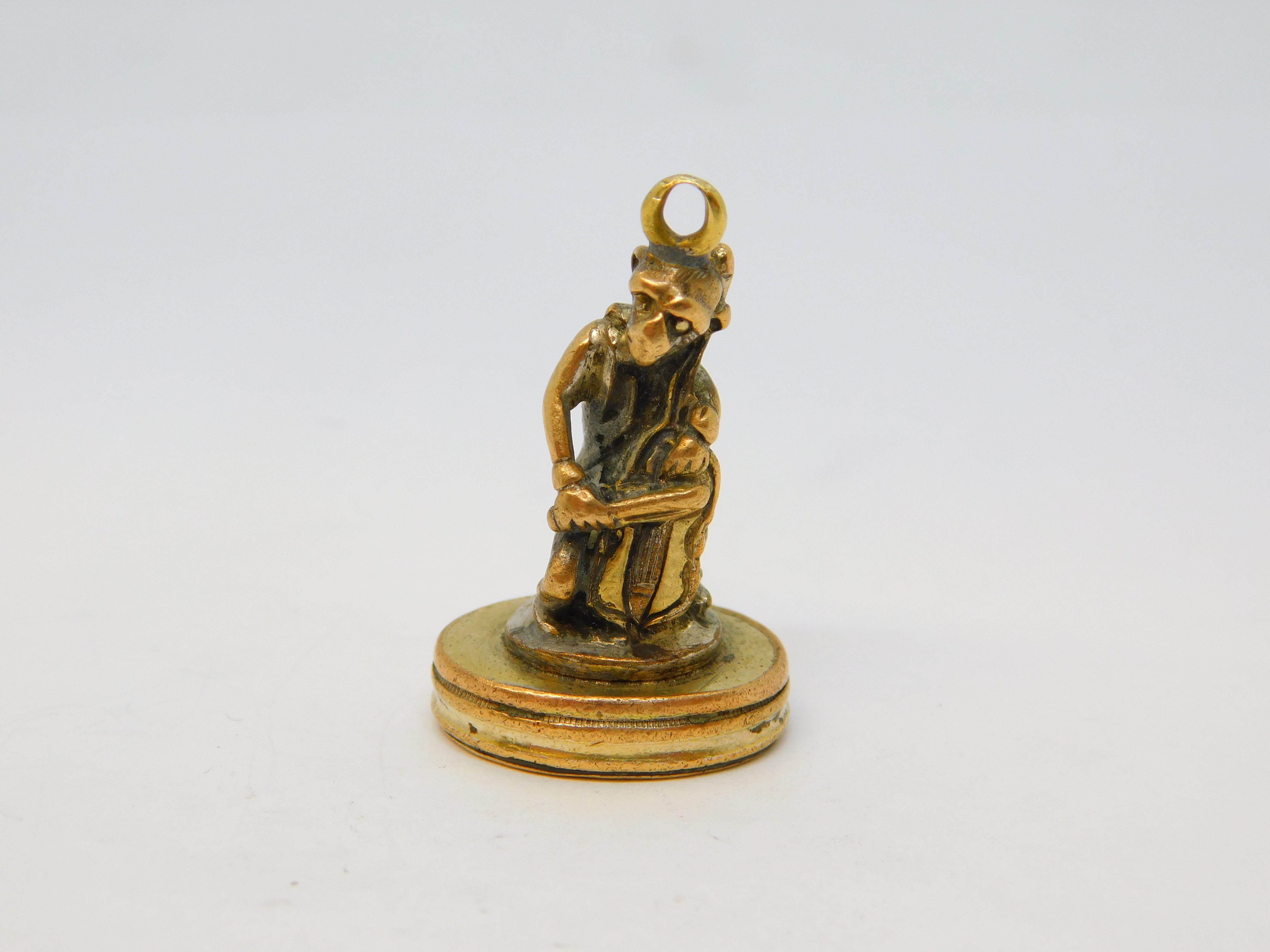 Details: A fantastic and wonderfully designed antique georgian period rolled gold novelty fob seal pendant depicting a monkey playing the cello or double bass c1820, the fob is set with agate. This is a wonderful item that would make a perfect gift or addition to any collection.