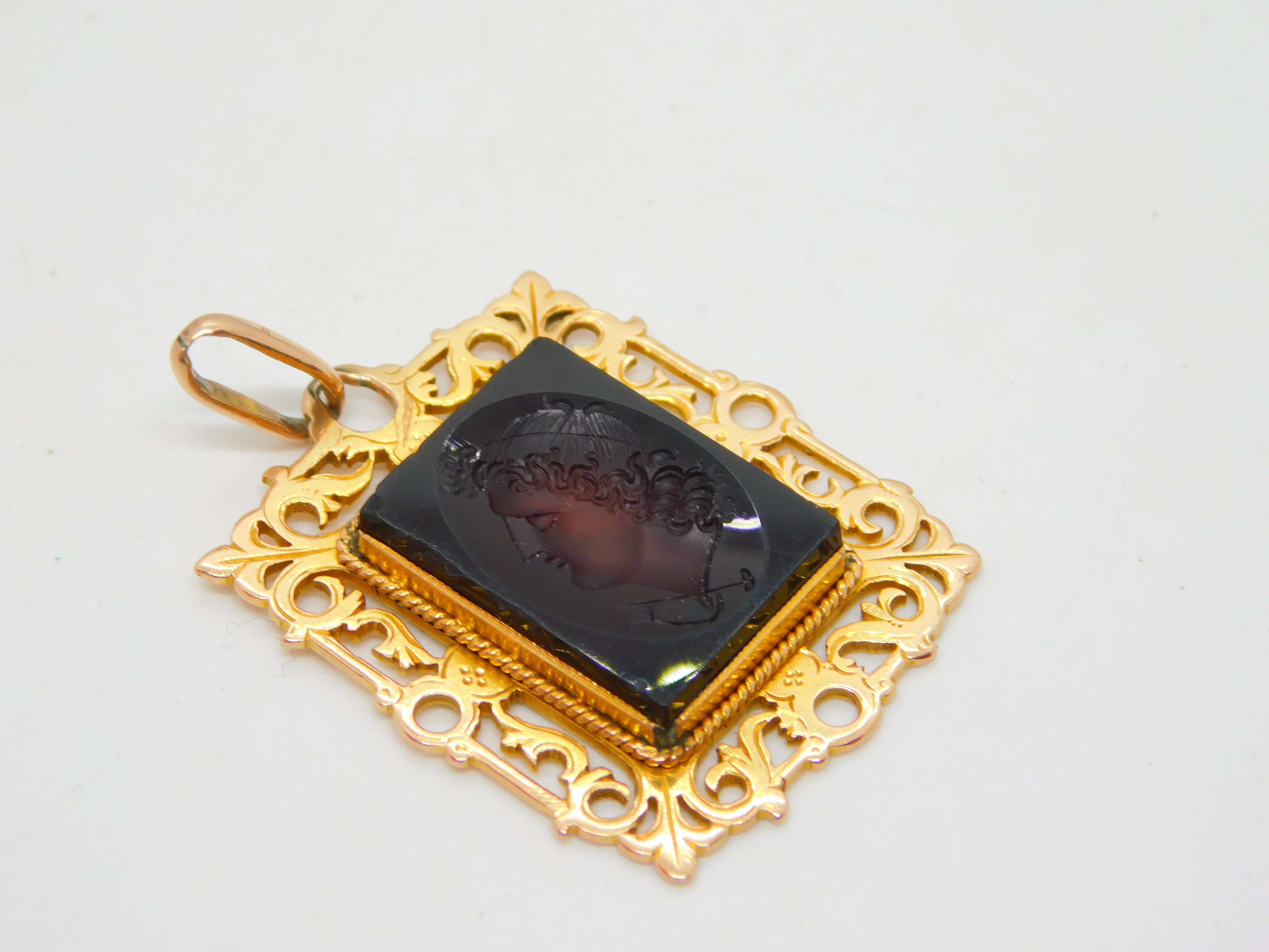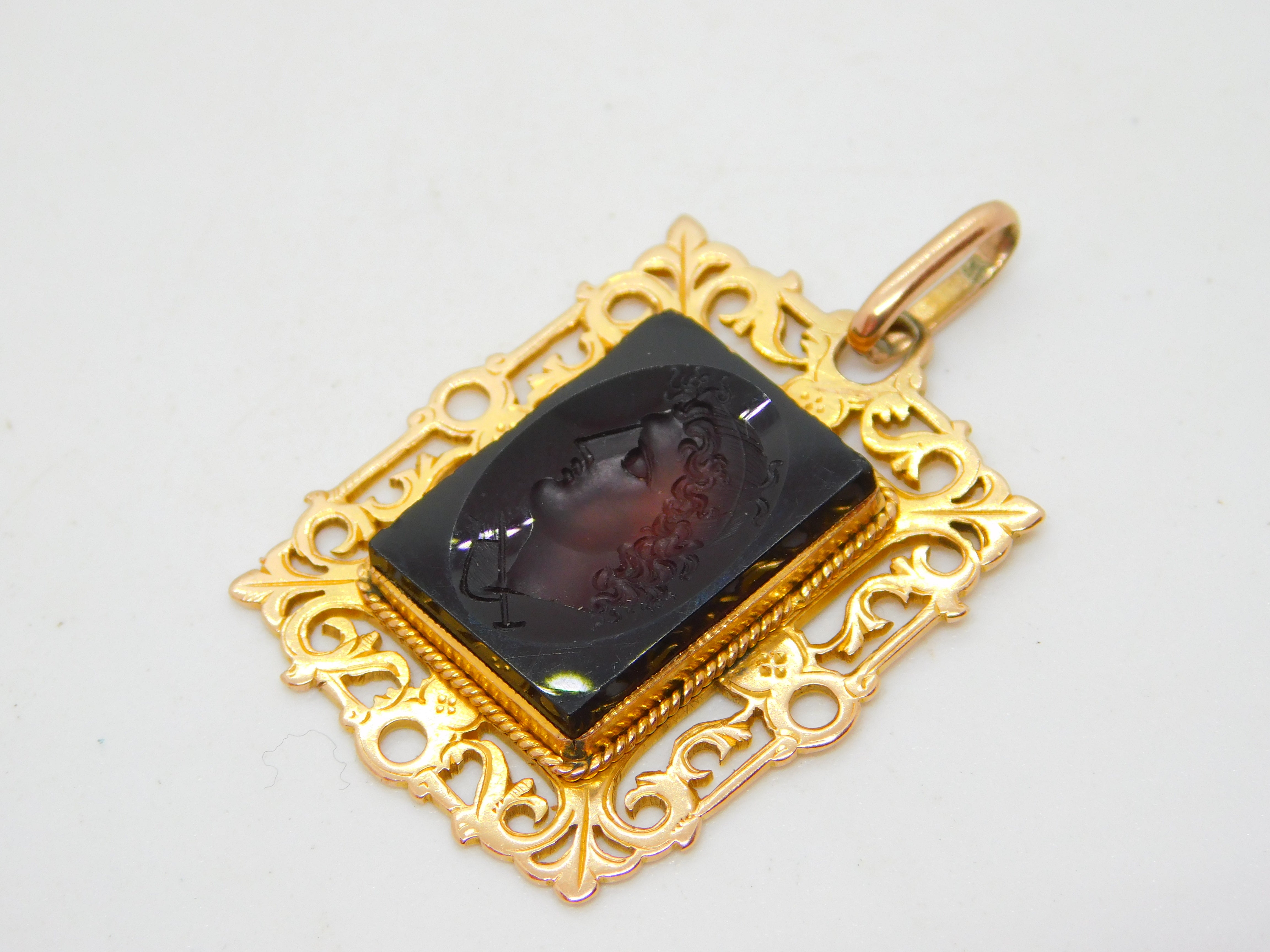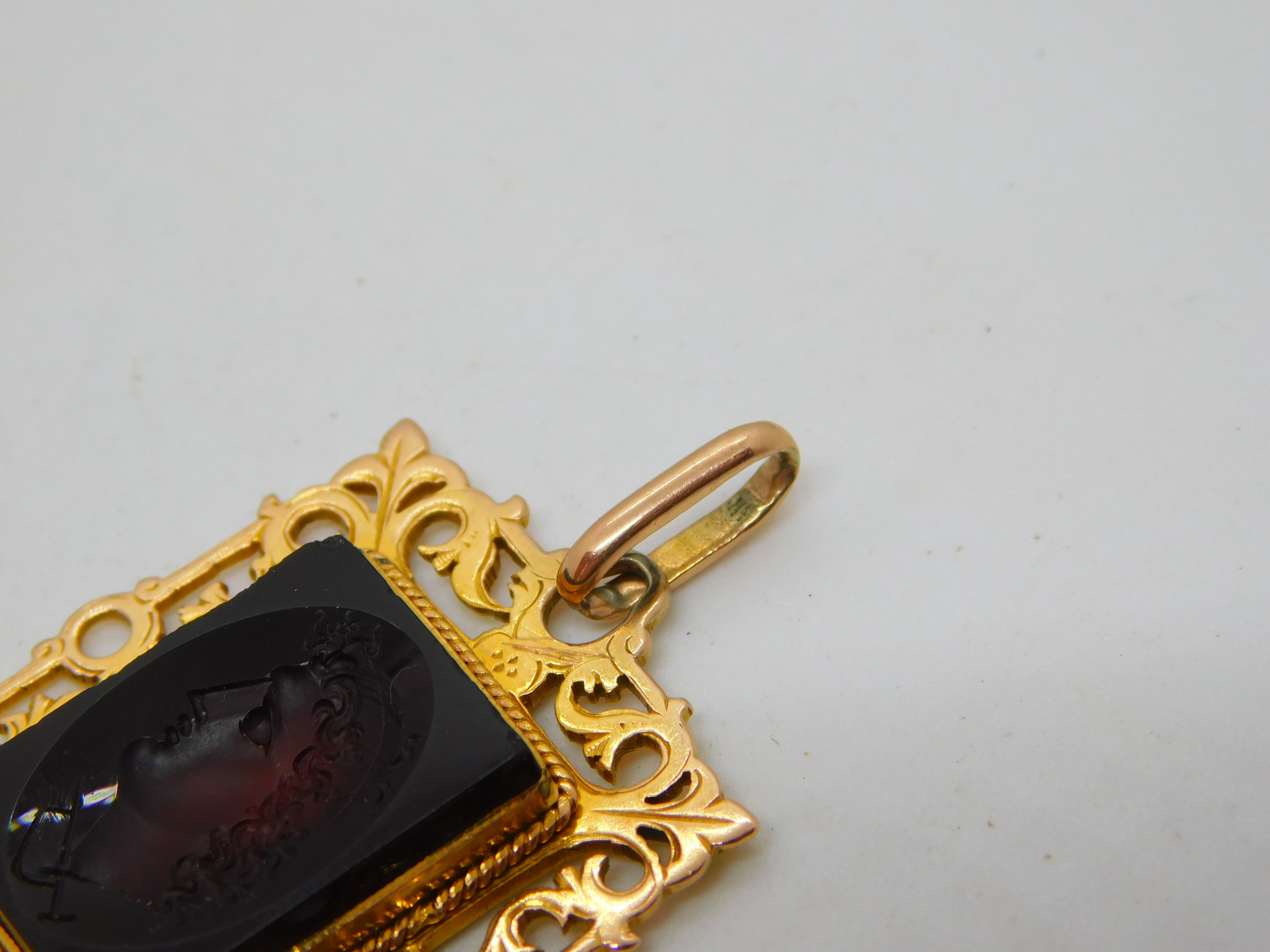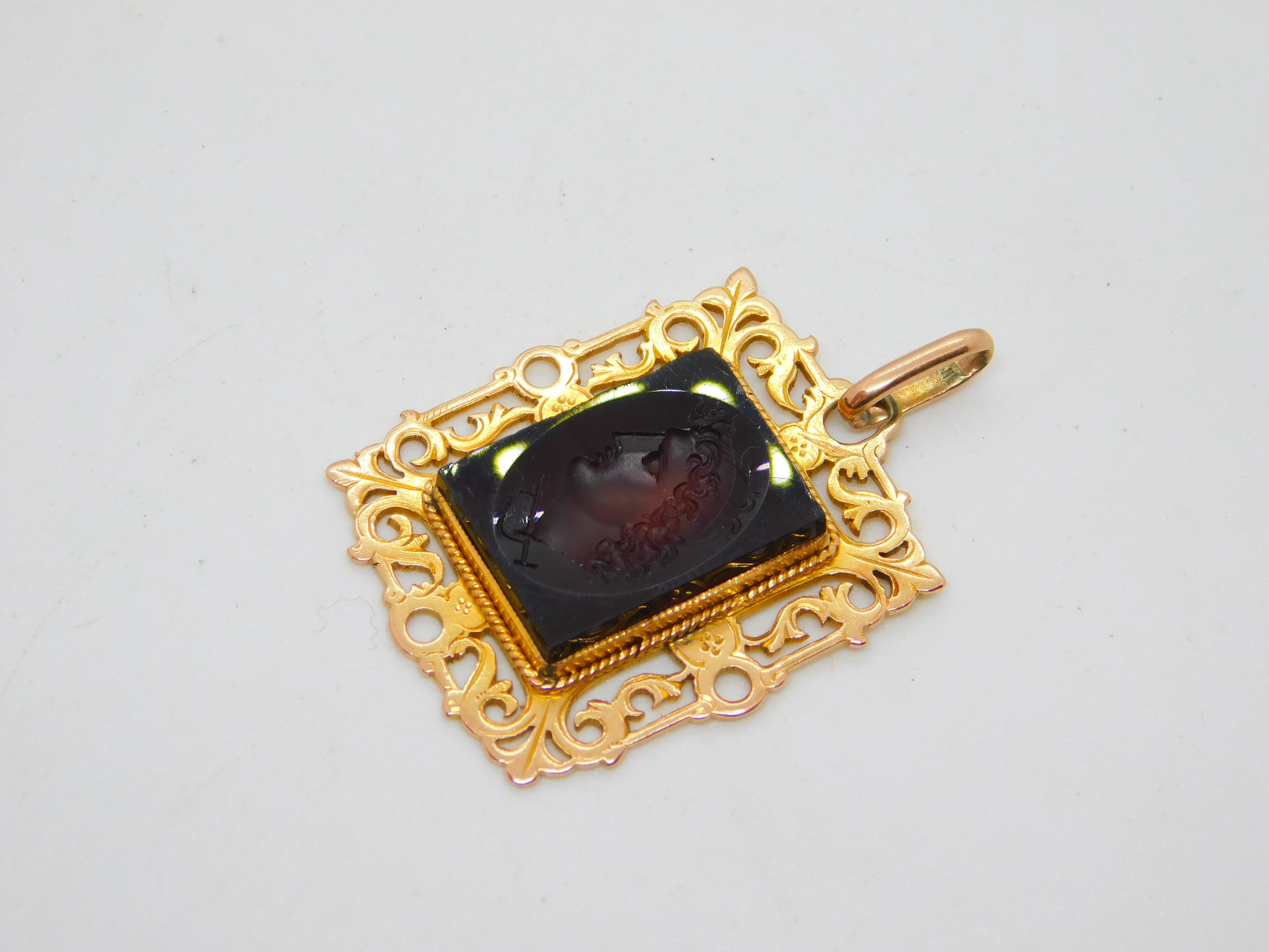 George IV 15ct Yellow Gold Carved Red Agate Cameo Pendant Antique c1830