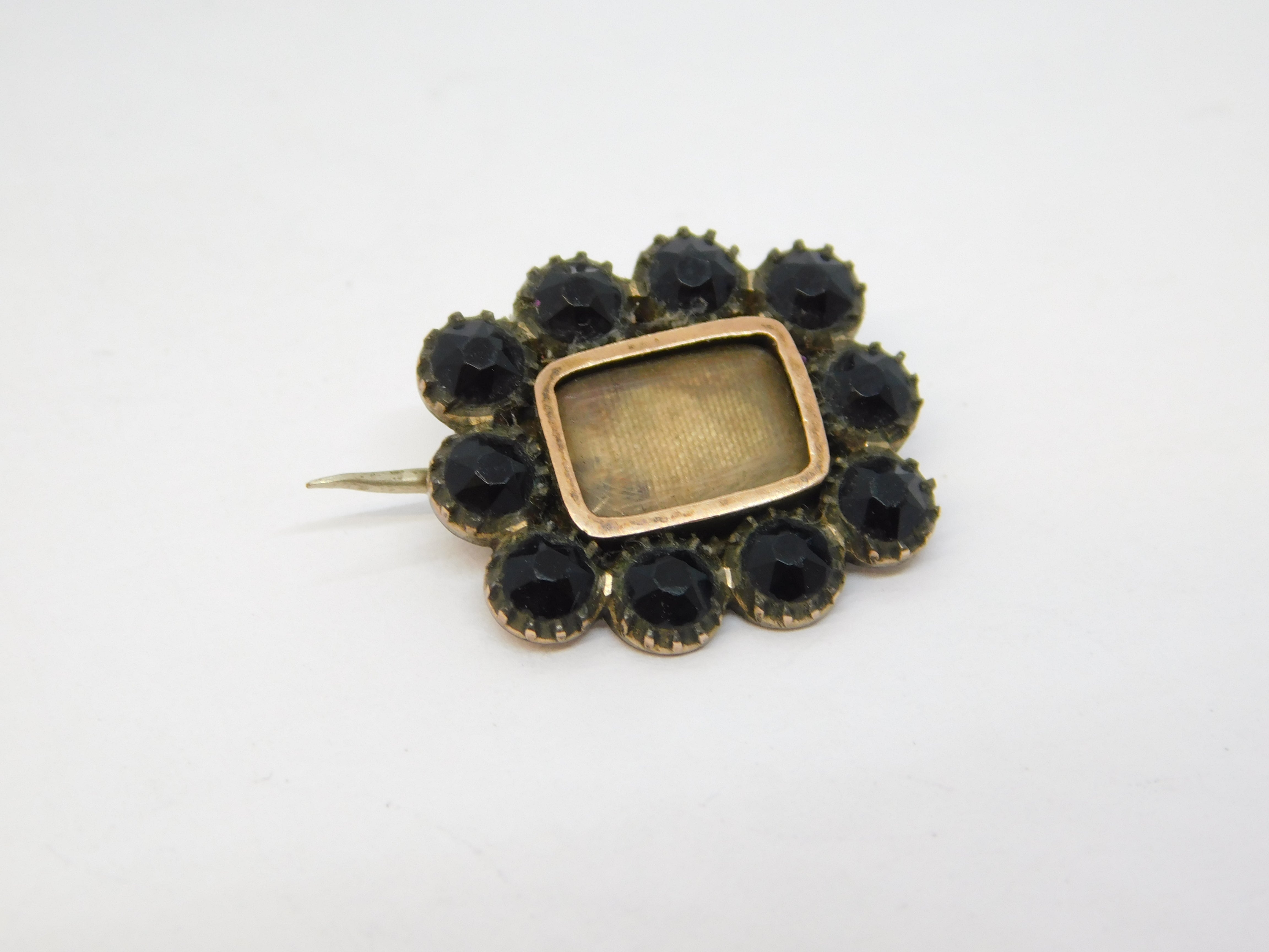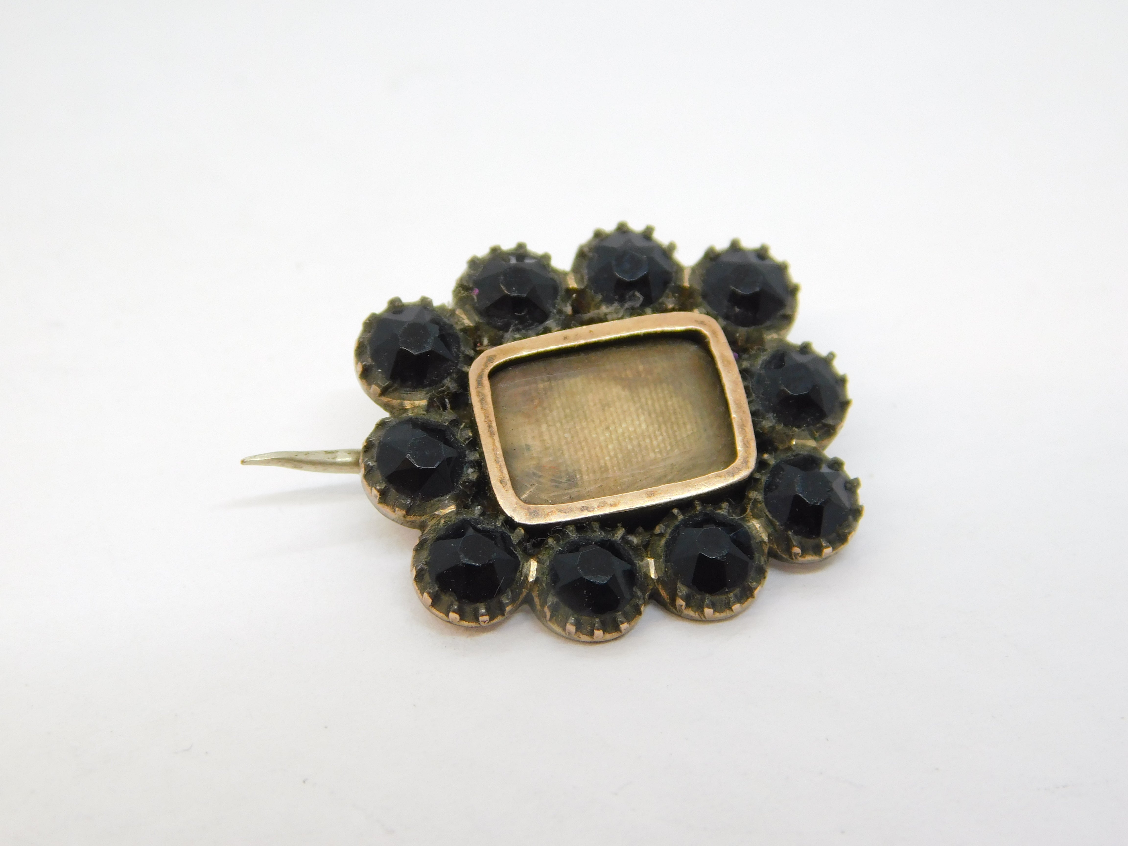 George IV 9ct Gold, Whitby Jet & Hair Set Mourning Brooch Antique 1830