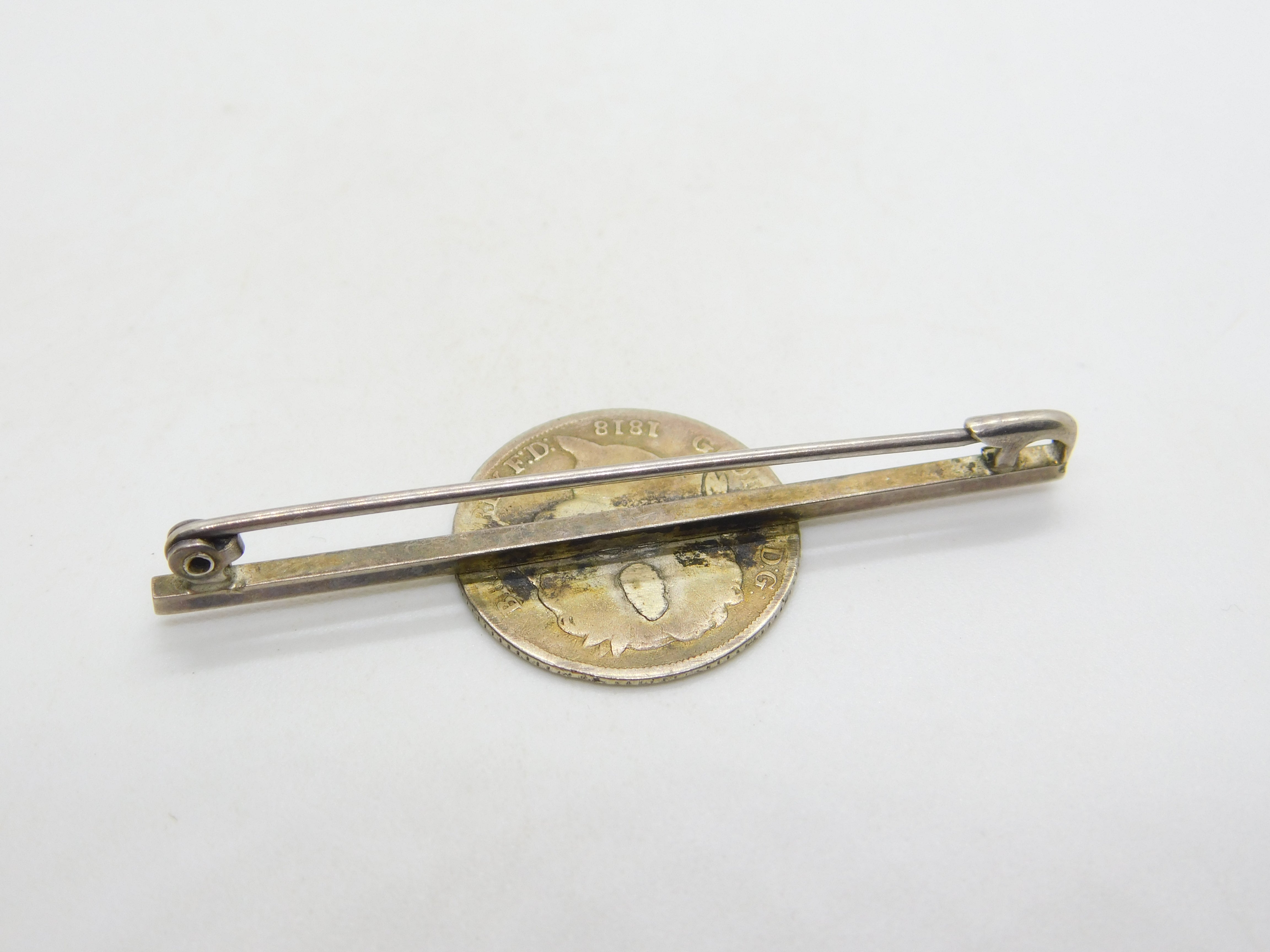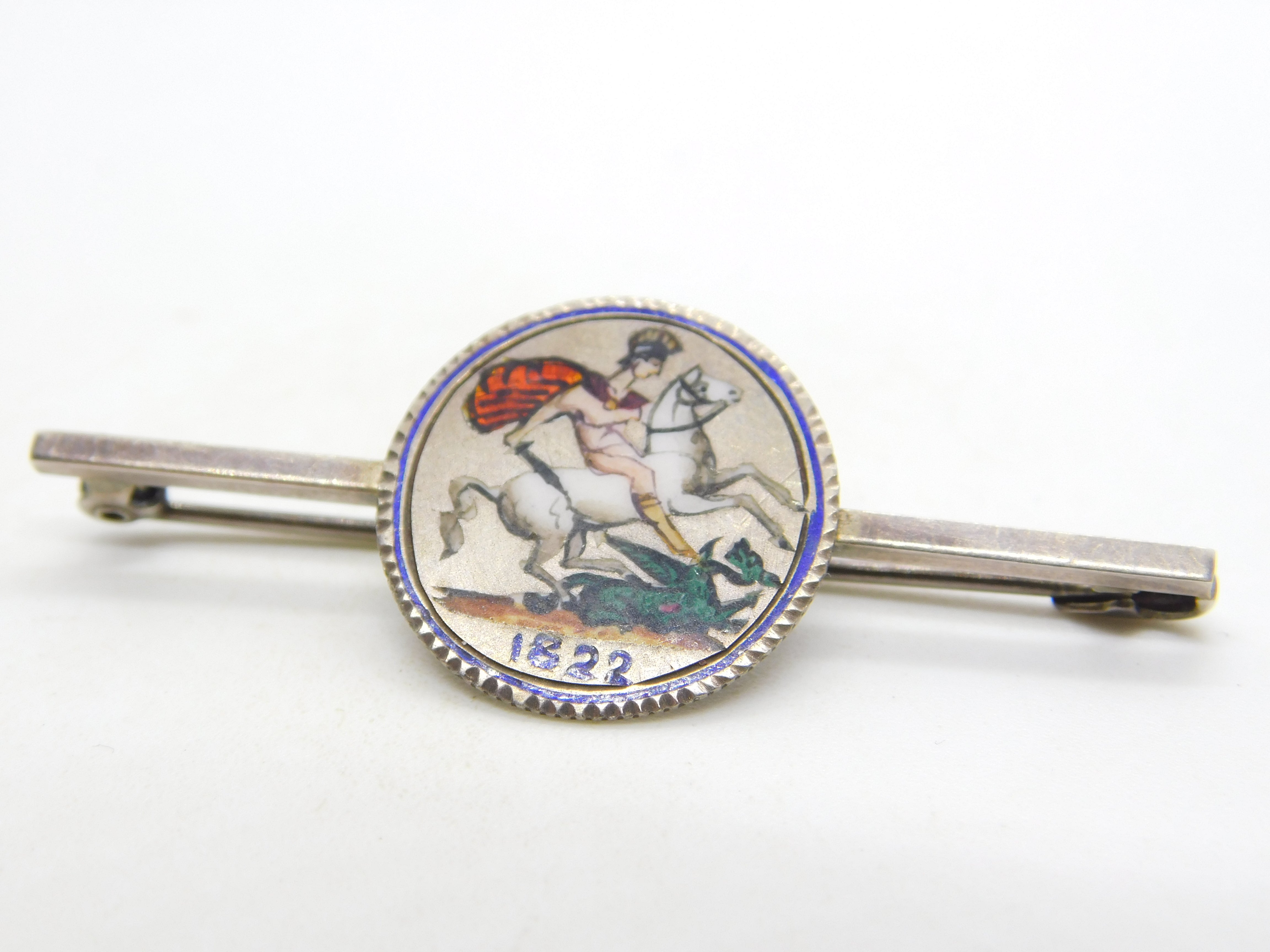 George IV Sterling Silver & Enamel Sixpence Coin Lucky Brooch Antique 1822