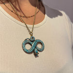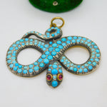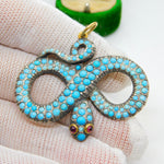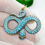 Georgian 18ct Gold & Silver Pave Set Turquoise Snake Pendant Antique c1830
