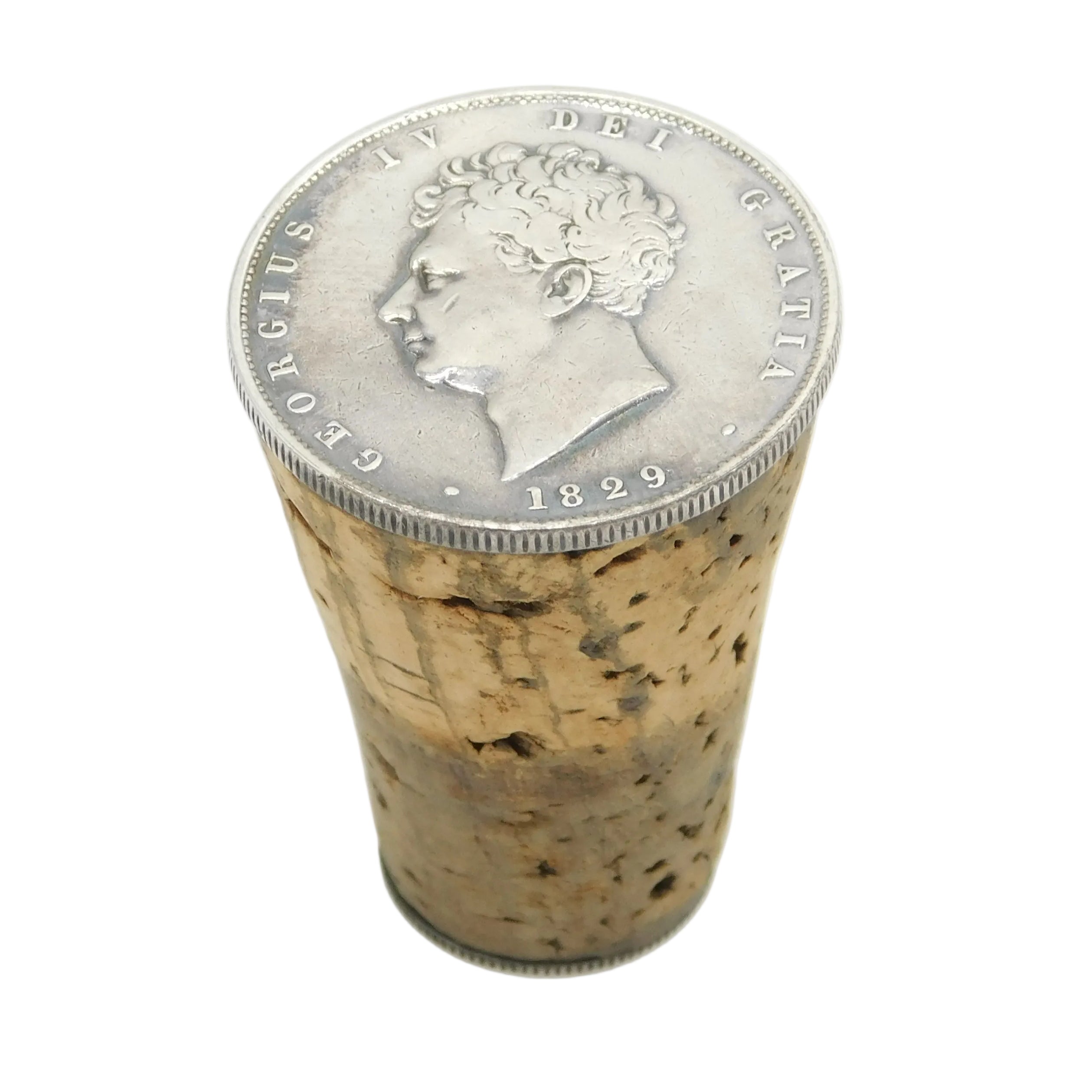 Georgian Sterling Silver Coin Set Cork Bottle Stopper Antique c1830
