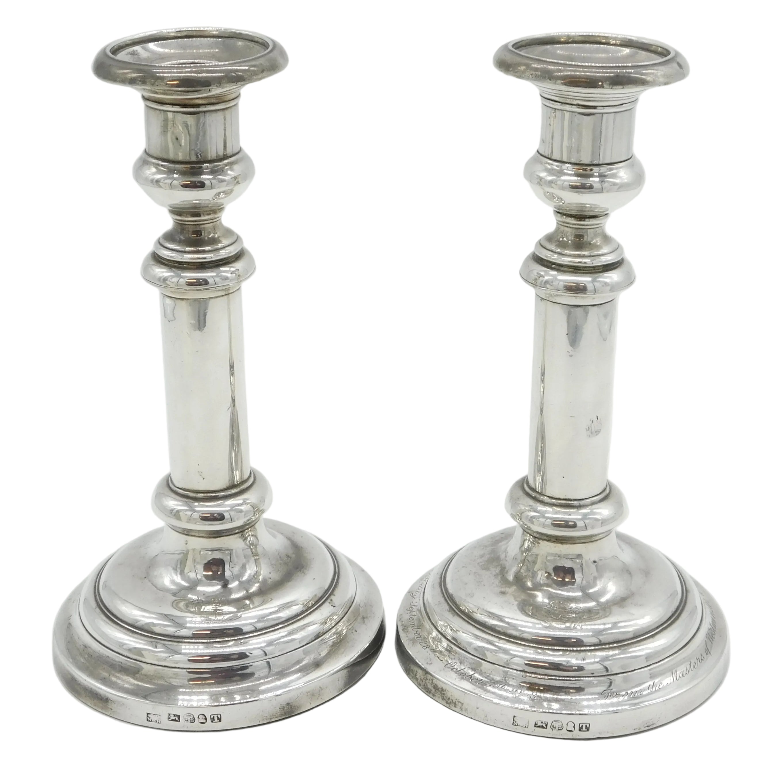 George III Pair of Sterling Silver Table Candlesticks Antique 1816 Sheffield