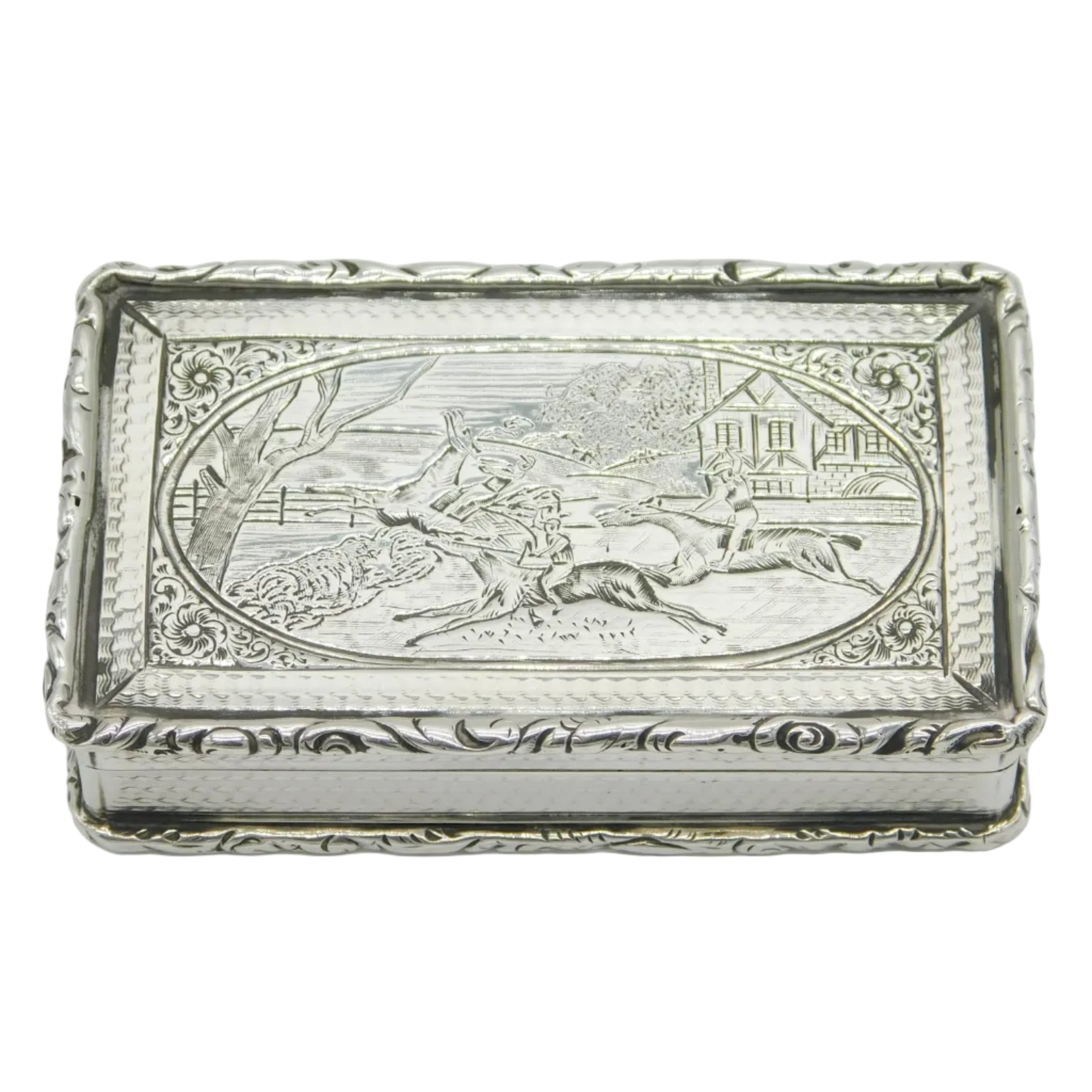 William IV Sterling Silver Horse Racing Snuff Box Antique 1836 Birmingham