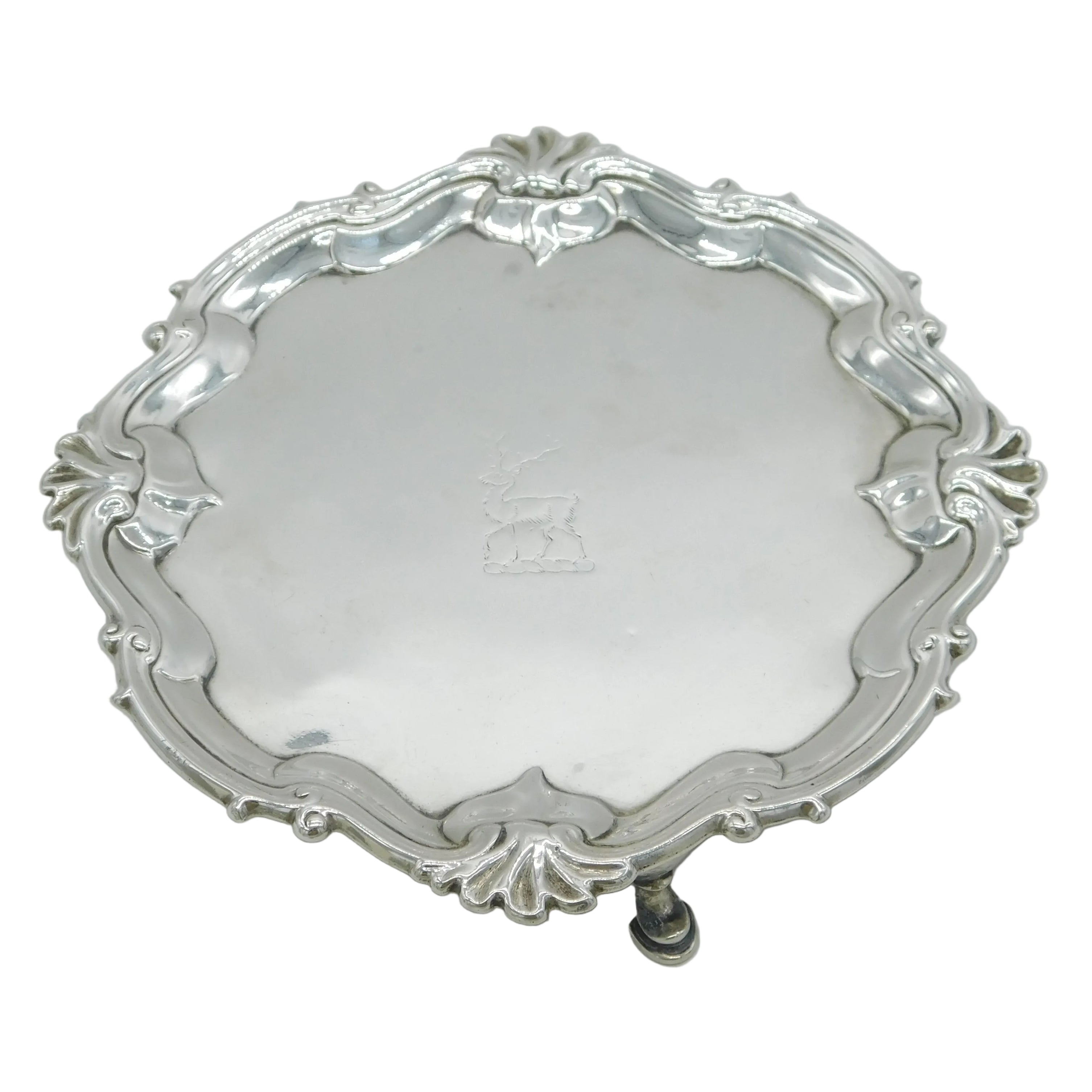 George II Sterling Silver Heraldic Crest Salver Dish Antique 1752 London