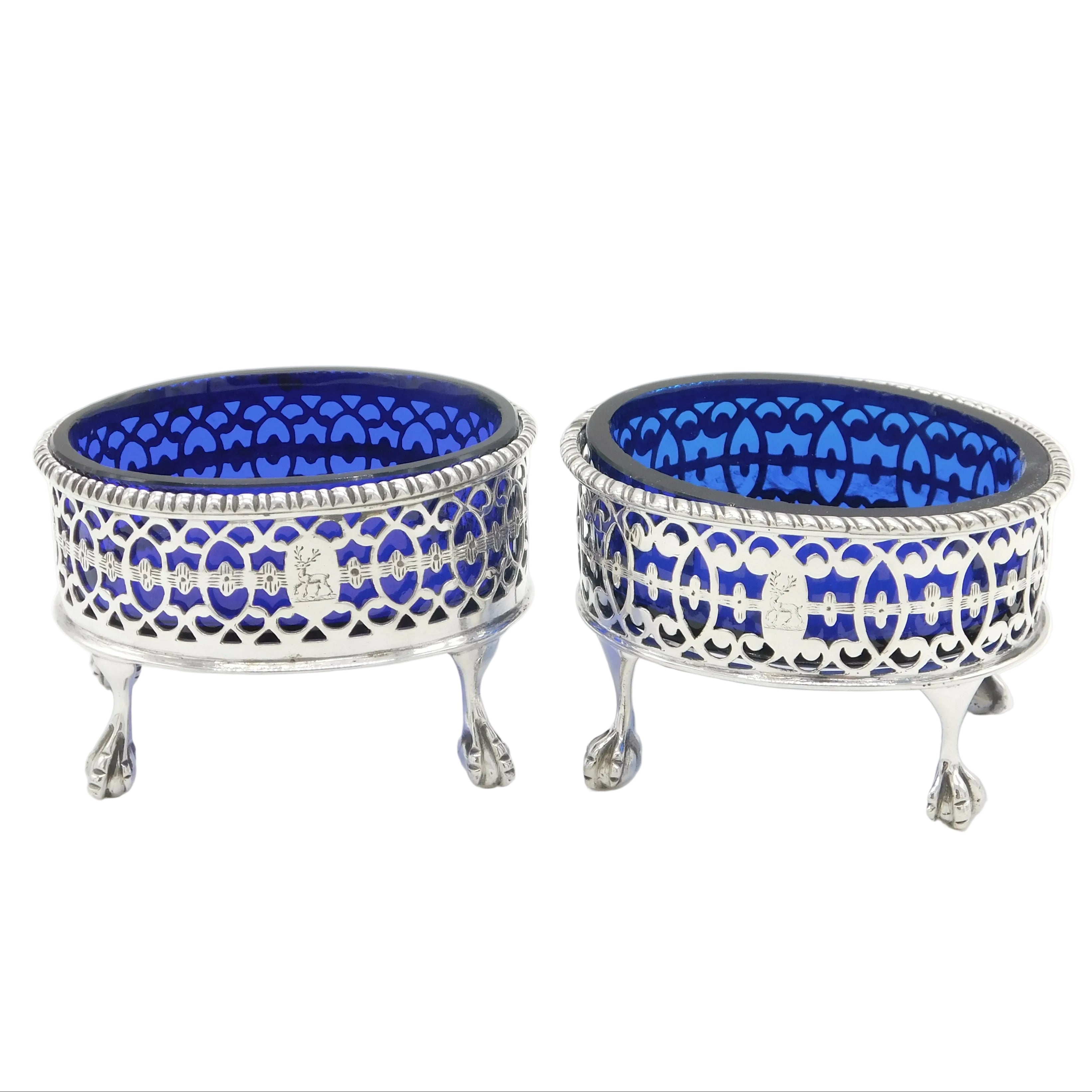 George III Sterling Silver Pair of Pierced Salt Cellars Antique 1774 London
