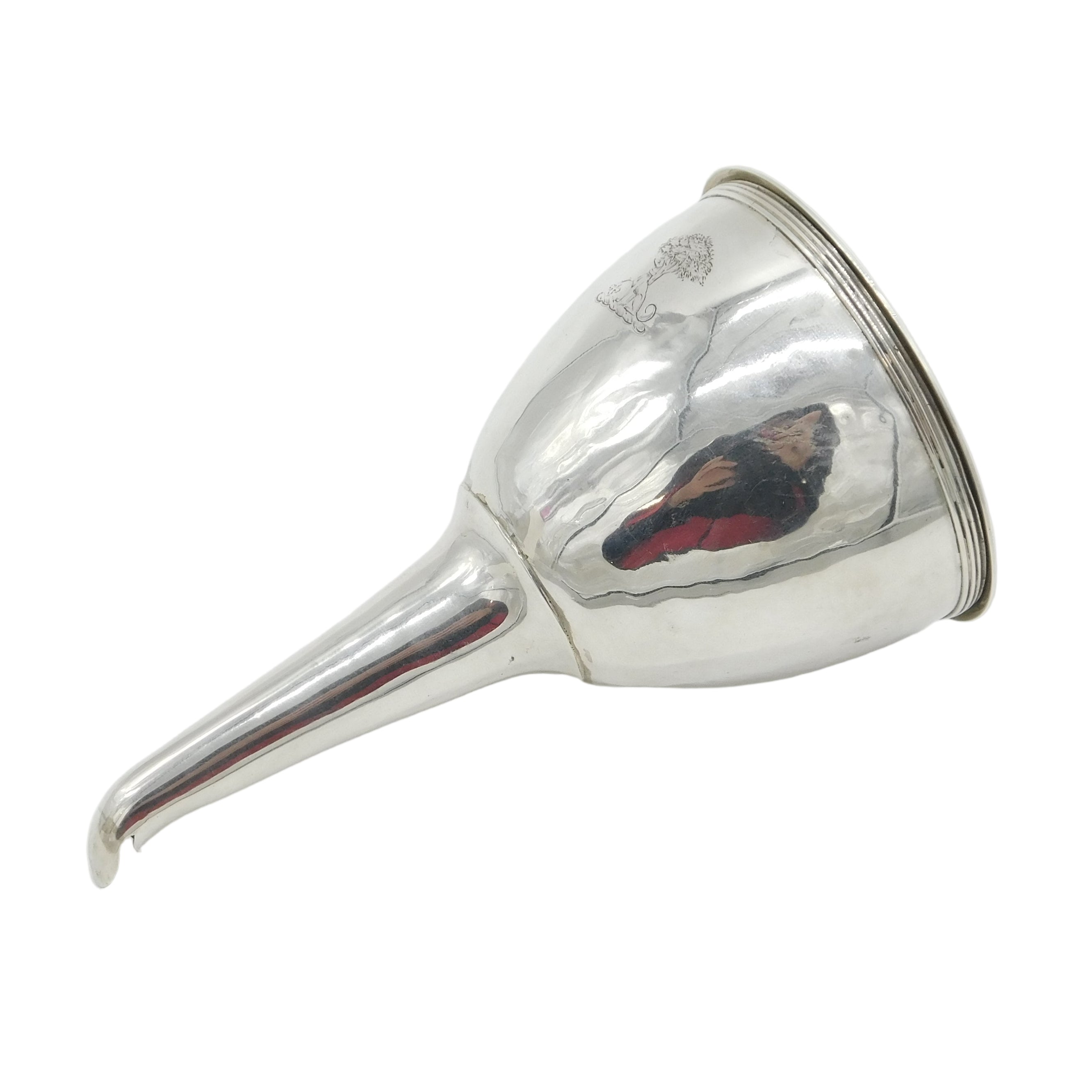 George III Sterling Silver Heraldic Crested Wine Funnel Antique 1795 London