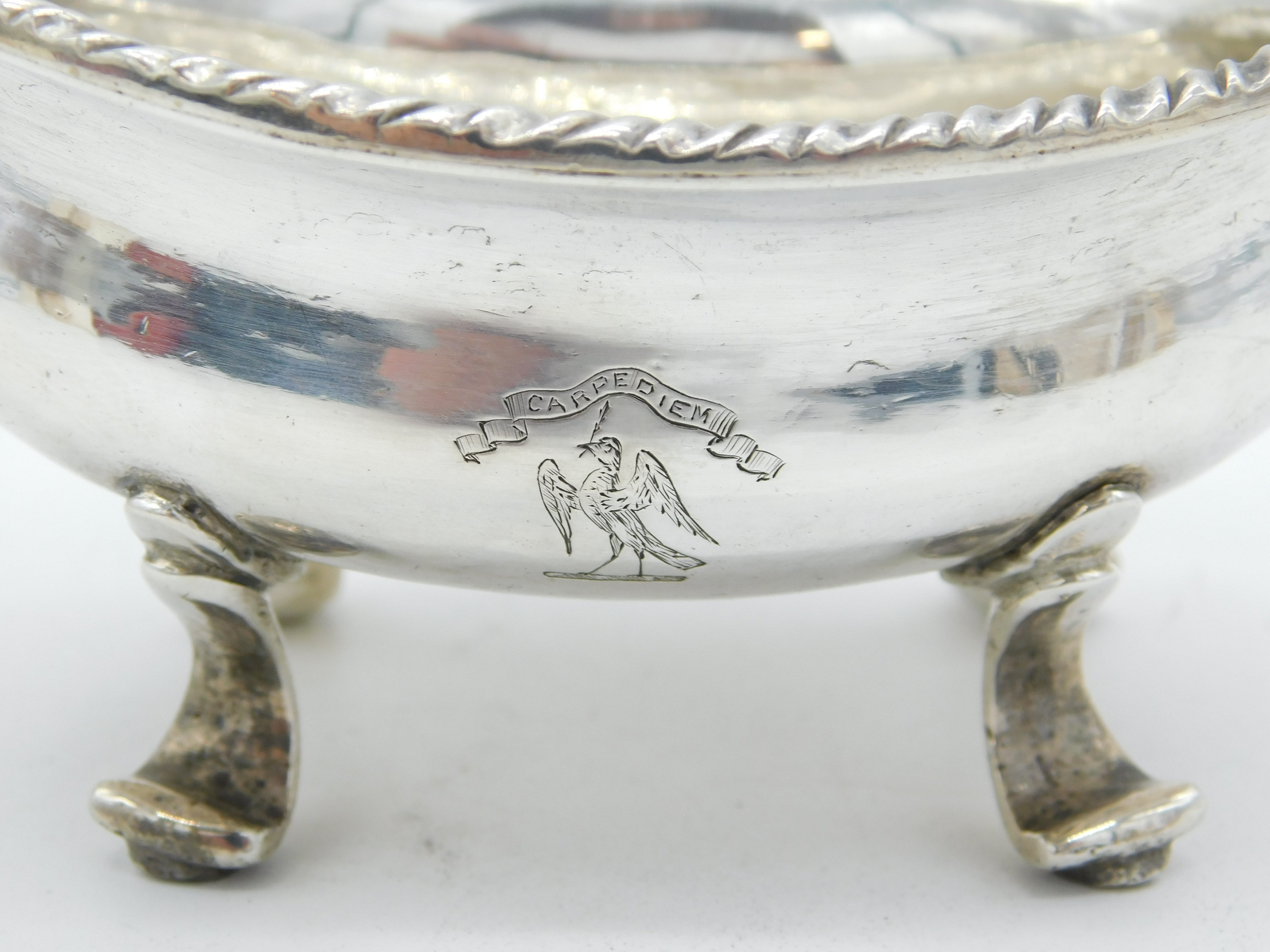 Details: A fantastic and wonderfully designed antique 18th century Austrian sterling silver salt cellar with paw feet and Carpe Diem heraldic crest to the front hallmarked to the base with Hapsburg Crest marks c1780 alongside BV makers mark, the silver has been XRF tested. This is a wonderful item that would make a perfect gift or addition to any collection.
