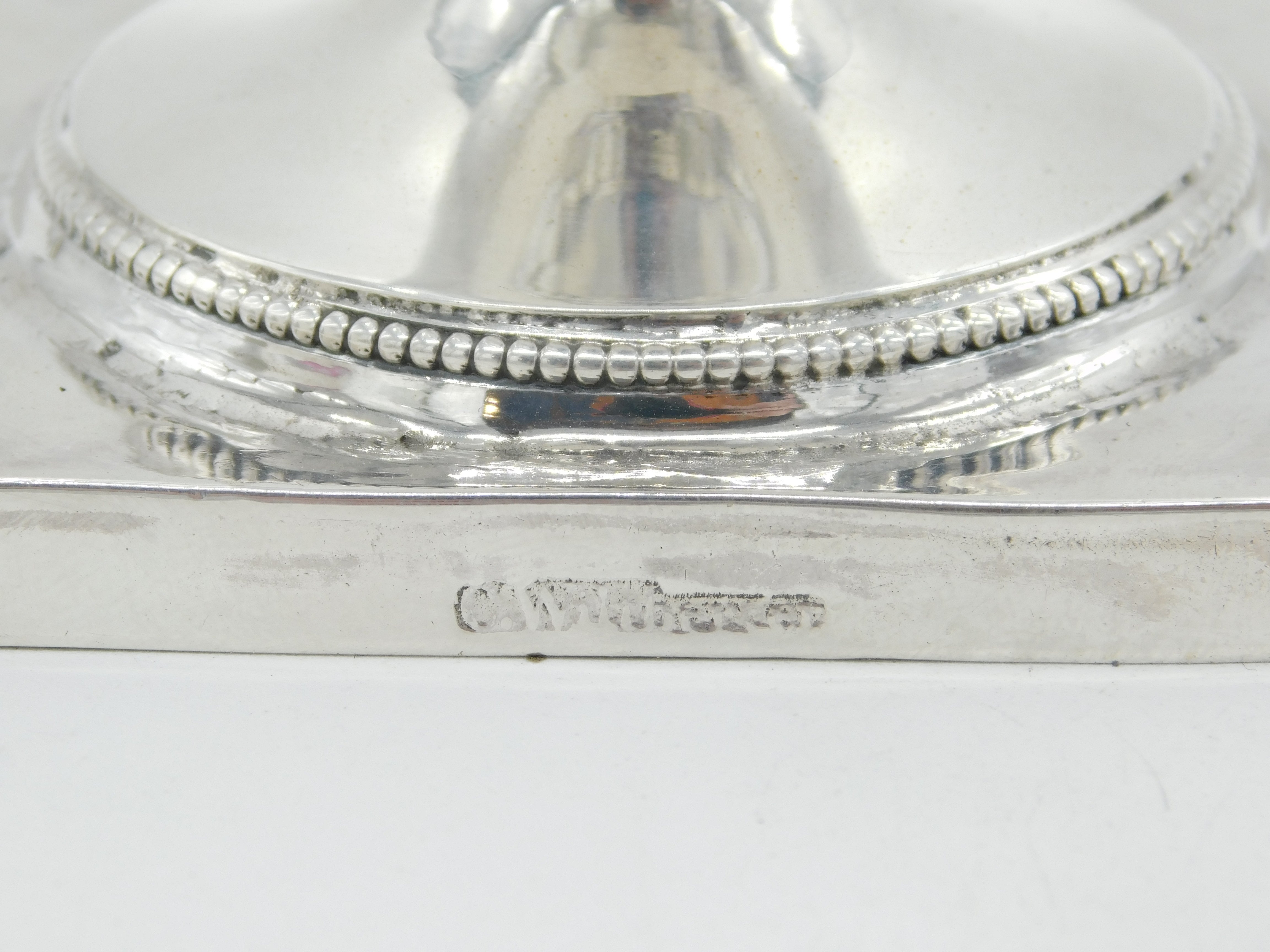 Details: A fantastic and wonderfully designed antique 19th century american sterling silver pedestal cream jug in georgian style with lovely design, hallmarked to the edge of the base for Philadelphia silversmith Christian Wiltberger c1795. Minor areas of repair, one to the left top edge and one to where the handle meets the main body. Otherwise the jug is in nice usable order. This is a wonderful item that would make a perfect gift or addition to any collection. We are more than happy to provide XRF reports for items upon request.
