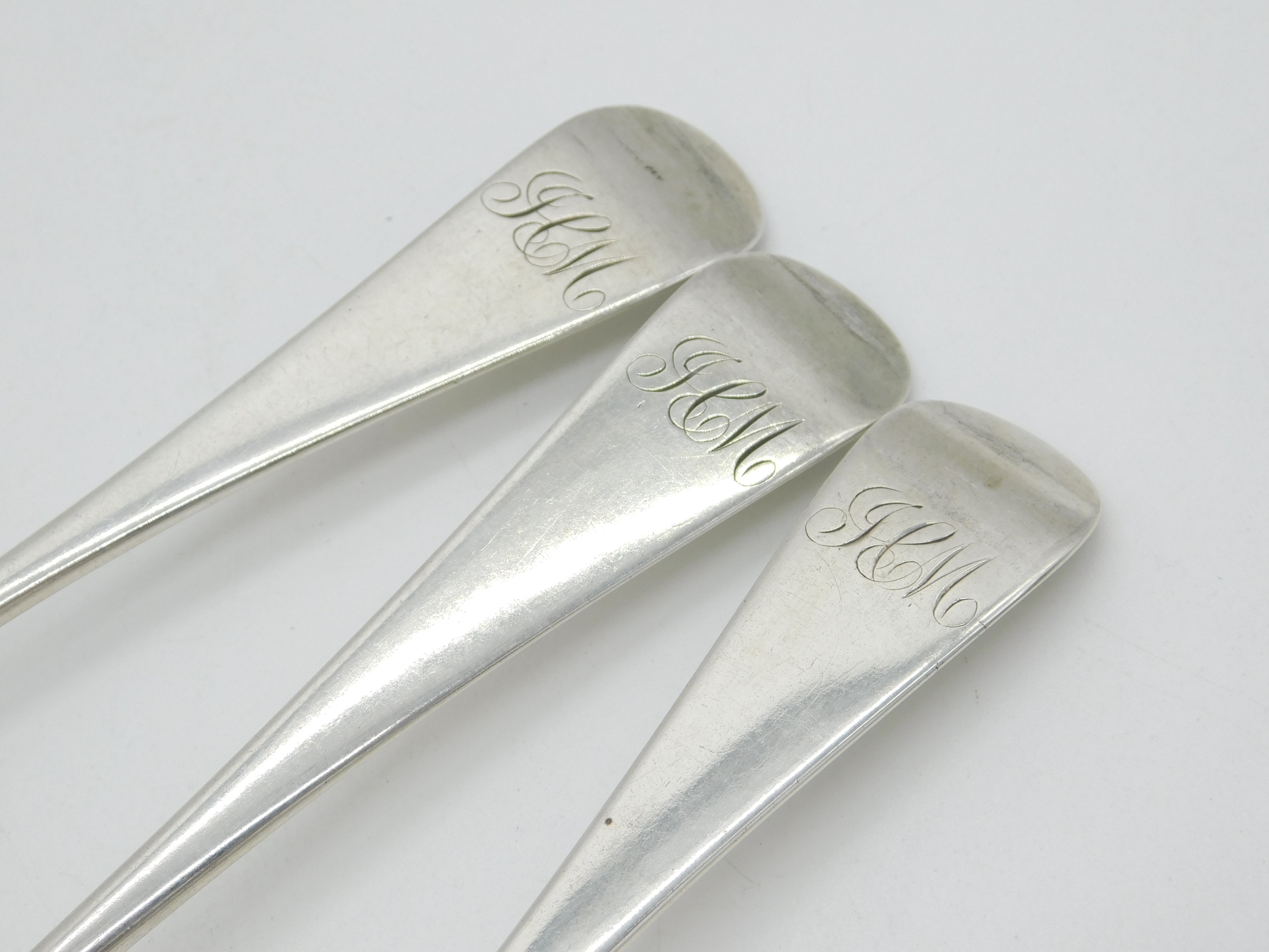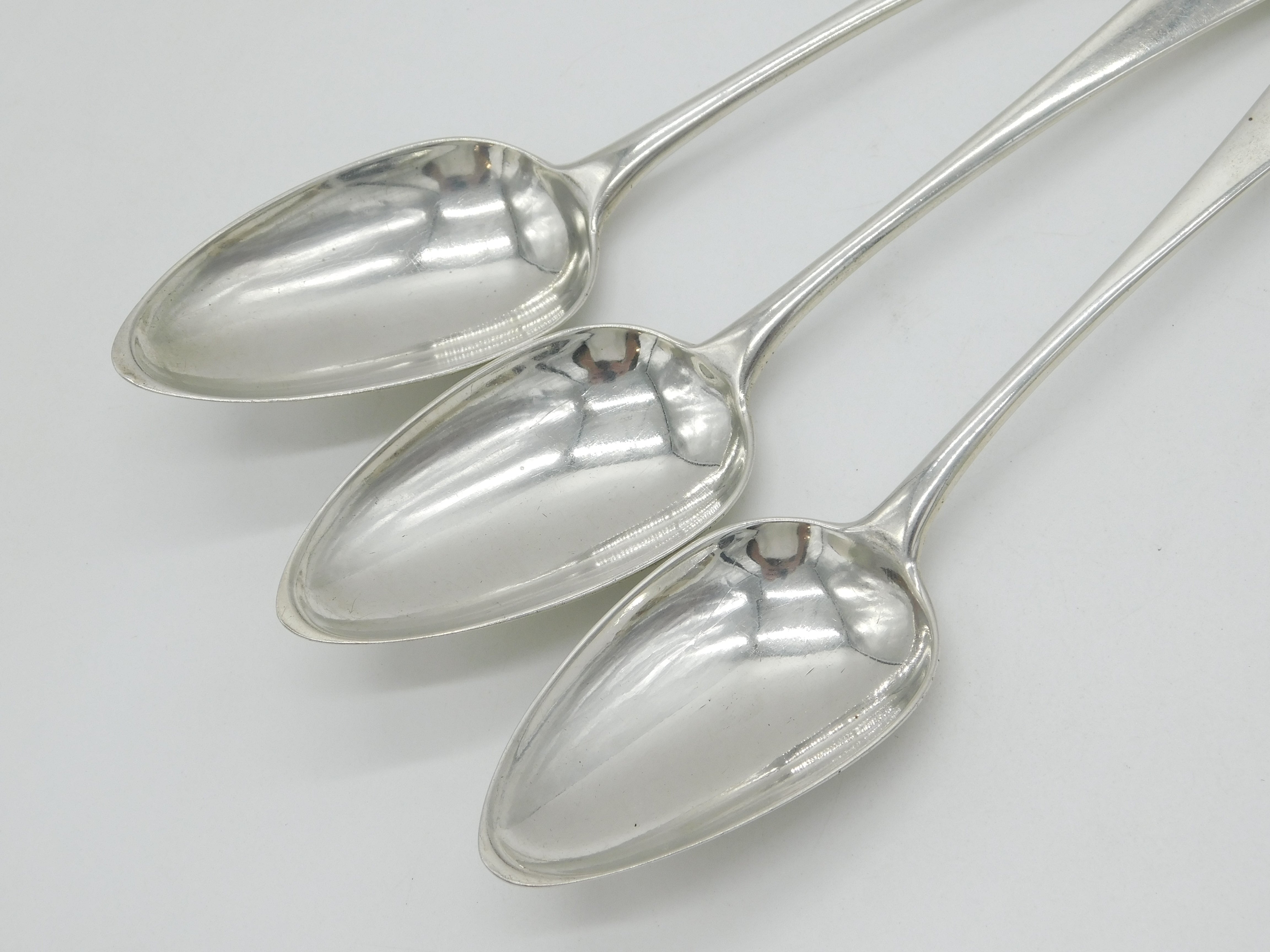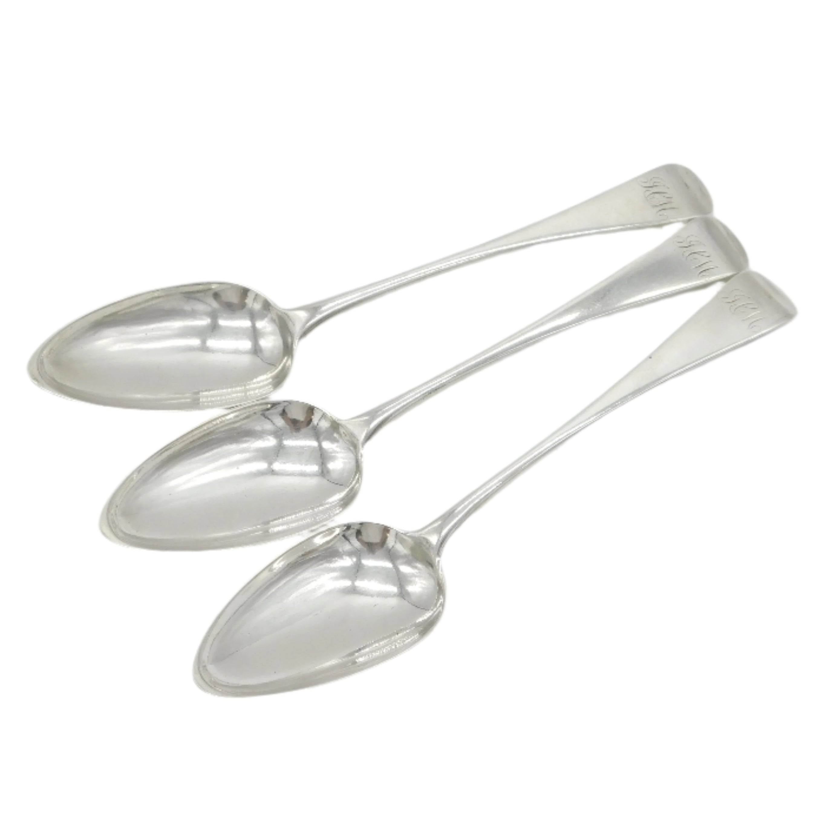 Details: A fantastic and wonderfully designed antique georgian Scottish provincial Aberdeen sterling silver set of three serving spoons with engraved initials to the terminals hallmarked to lovely provincial marks to the reverse by Aberdeen maker William Jameison c1800. This is a wonderful item that would make a perfect gift or addition to any collection.