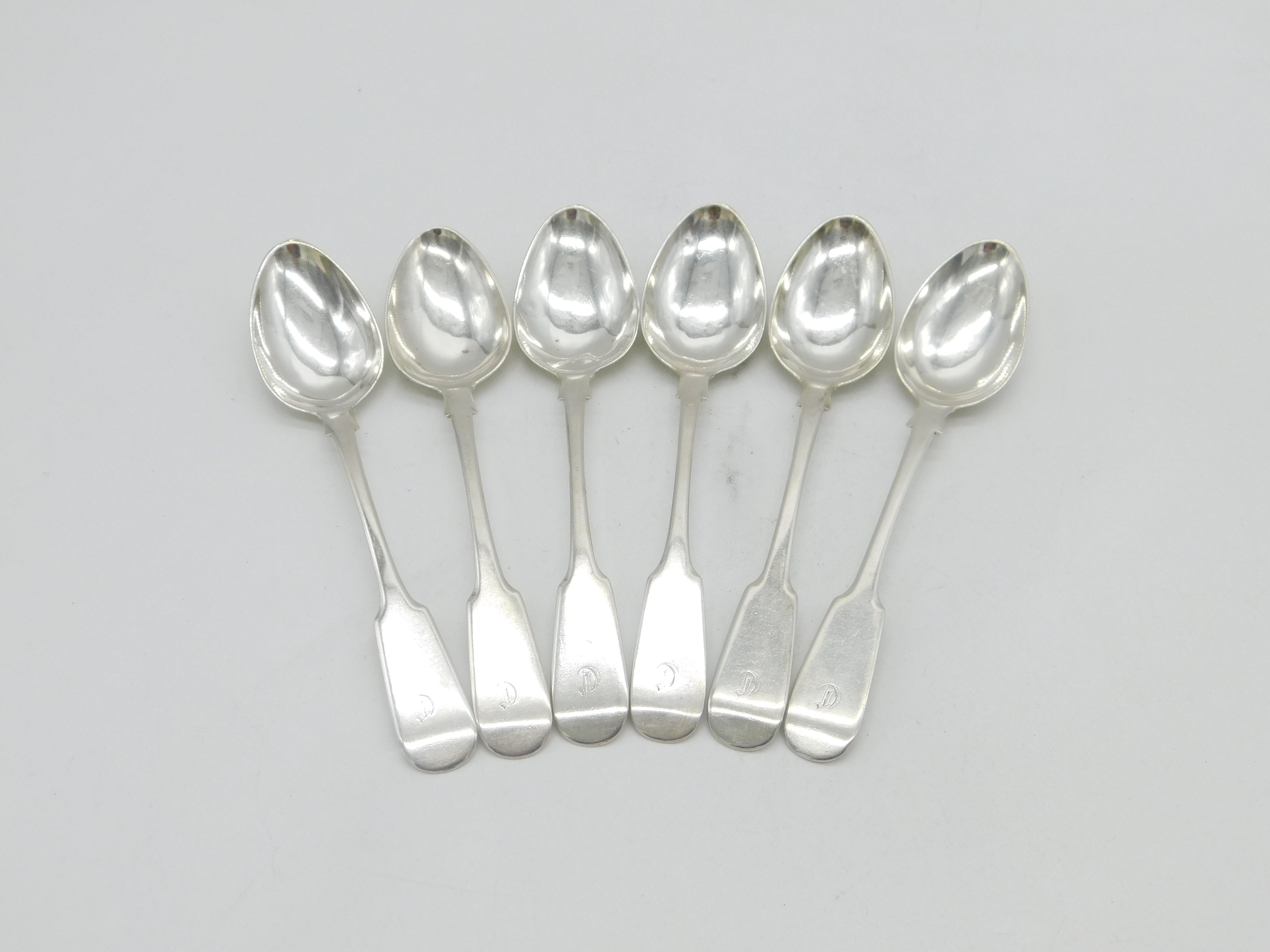 Details: A fantastic and wonderfully designed antique georgian Scottish provincial set of six sterling silver teaspoons with fiddle thread pattern detailing hallmarked to the reverse for Aberdeen c1830s by Donaldson & Jas. Riddel. This is a wonderful item that would make a perfect gift or addition to any collection. We are more than happy to provide XRF reports for items upon request.