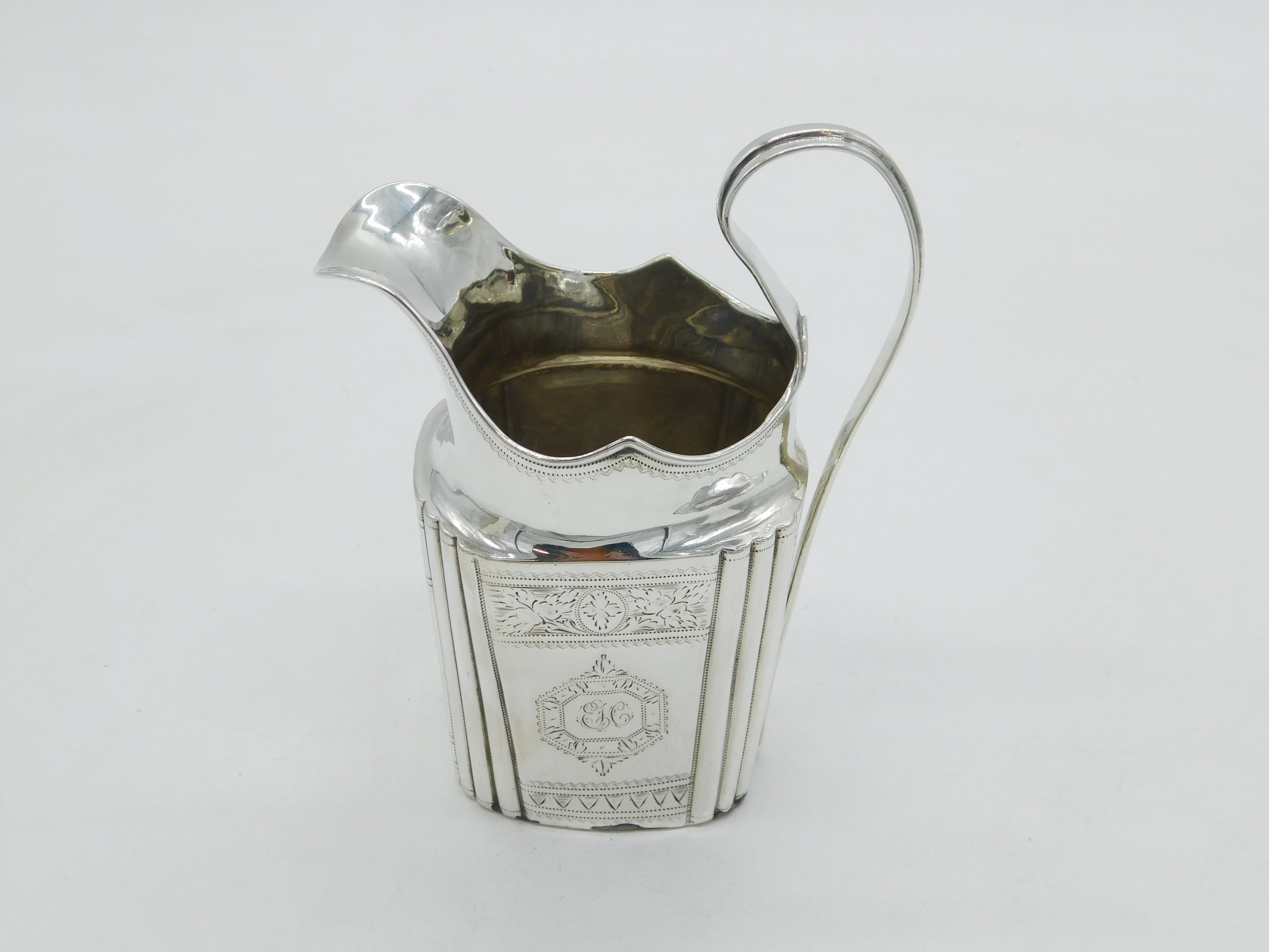 Details: A fantastic and wonderfully designed antique early-Irish georgian sterling silver cream jug with floral engraving and charming heraldic crests to the front hallmarked to the base Dublin c1736 with rubbed makers marks. Solder repair to the bottom edge please note and minor dings. This is a wonderful item that would make a perfect gift or addition to any collection. We are more than happy to provide XRF reports for items upon request.