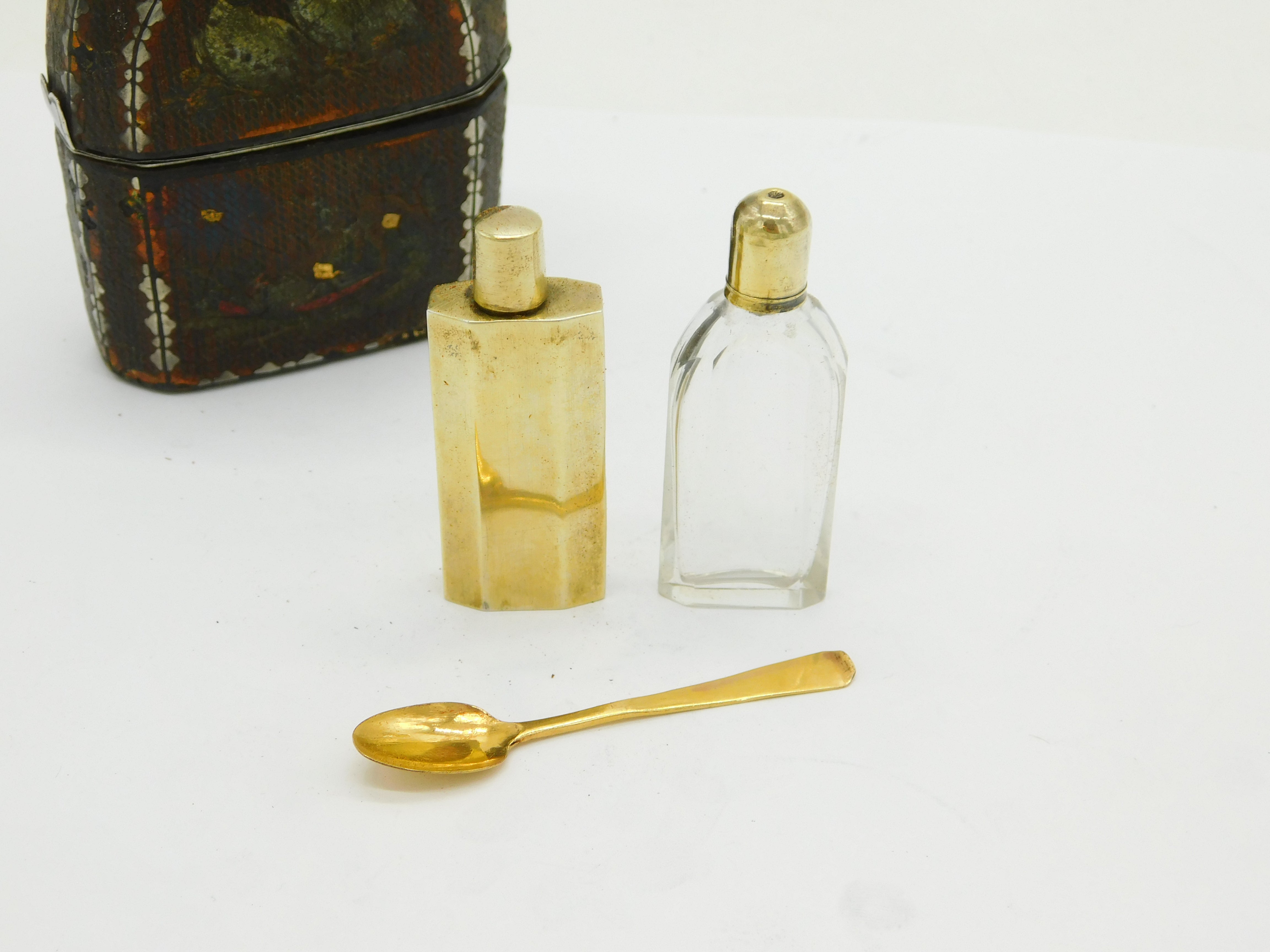 French 18th Century Silver Gilt & 9ct Gold Travelling Perfume Set Antique c1780
