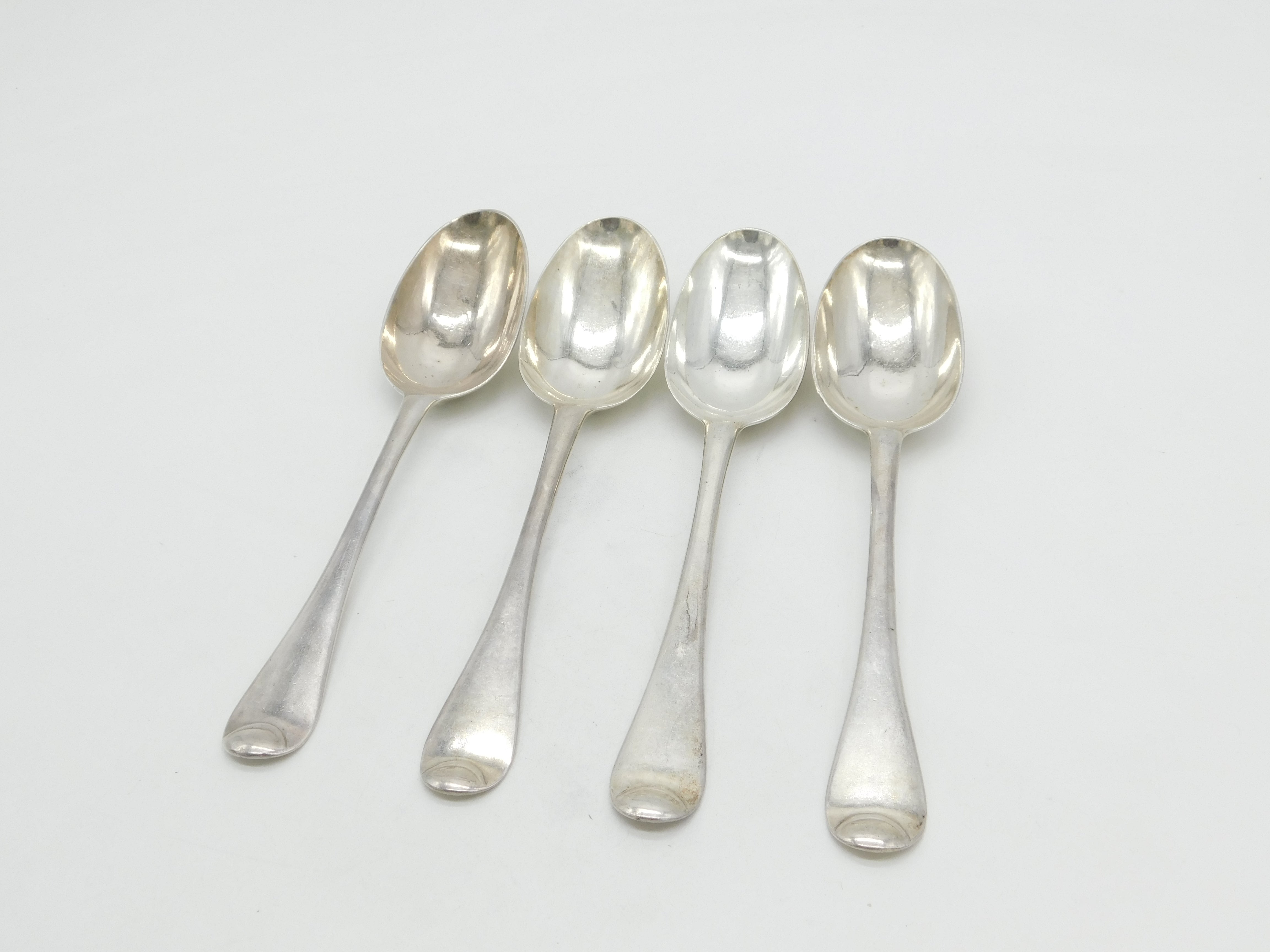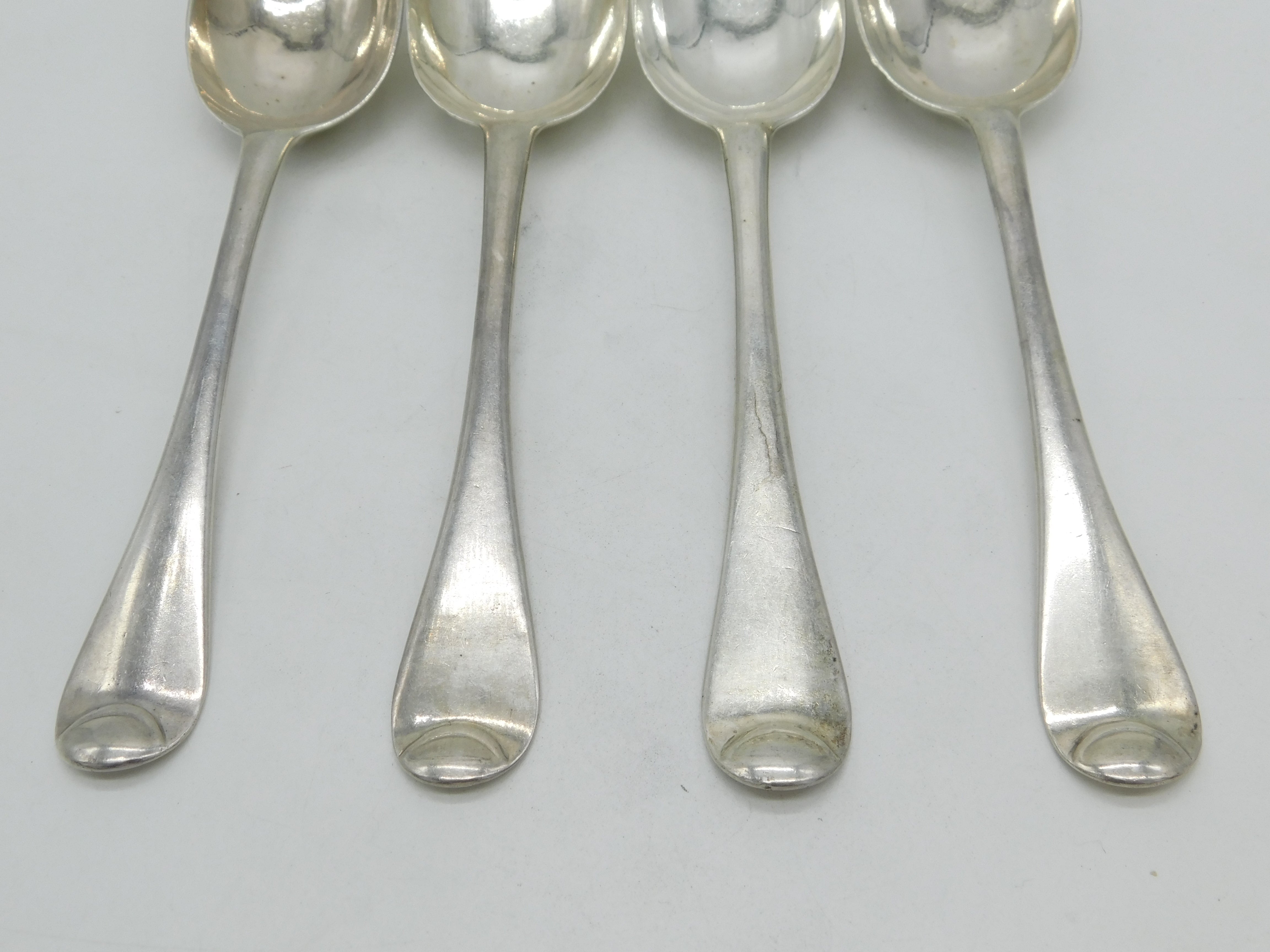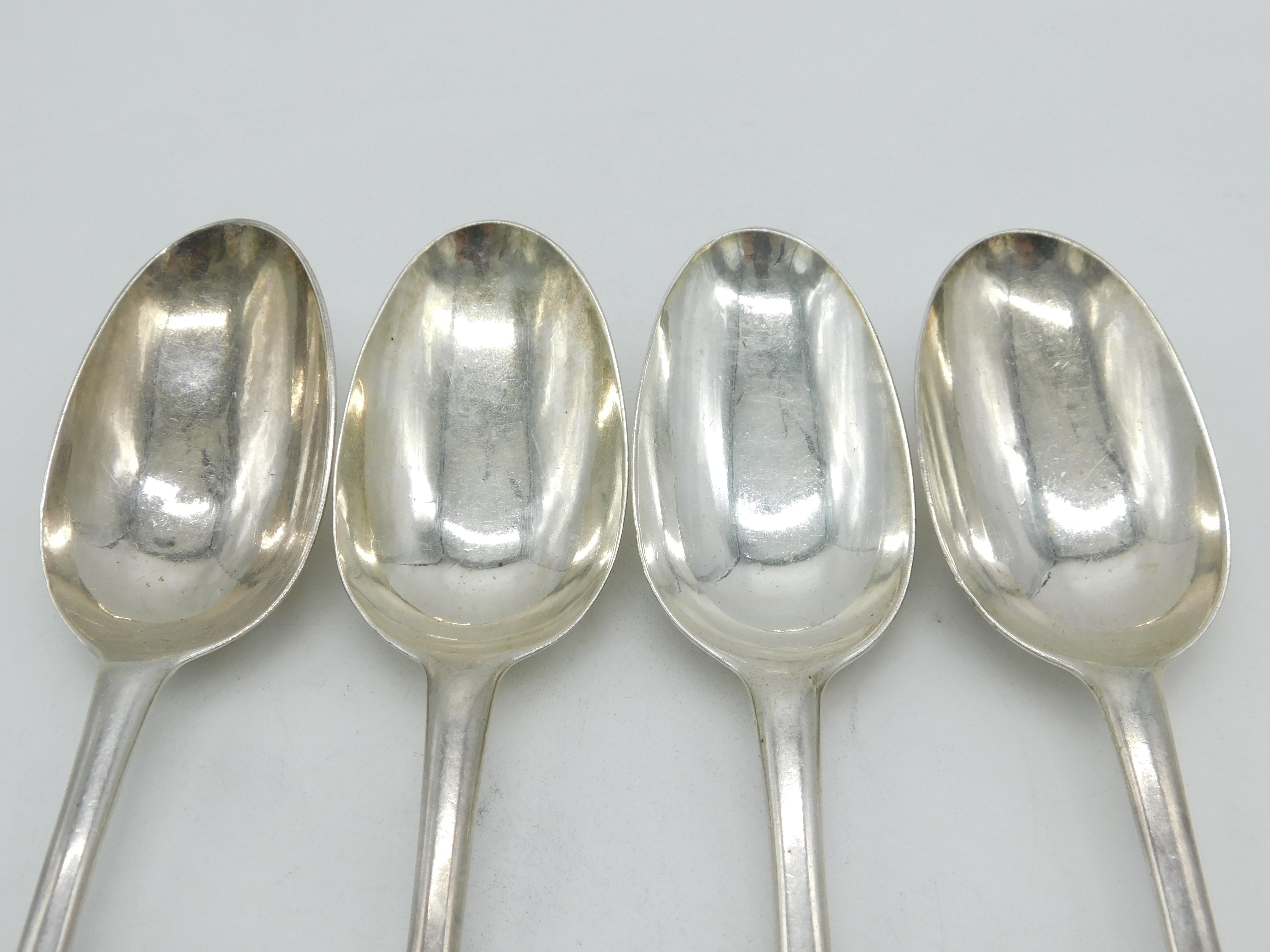 George I Britannia Silver Set of Four Armorial Serving Spoons Antique 1721 London