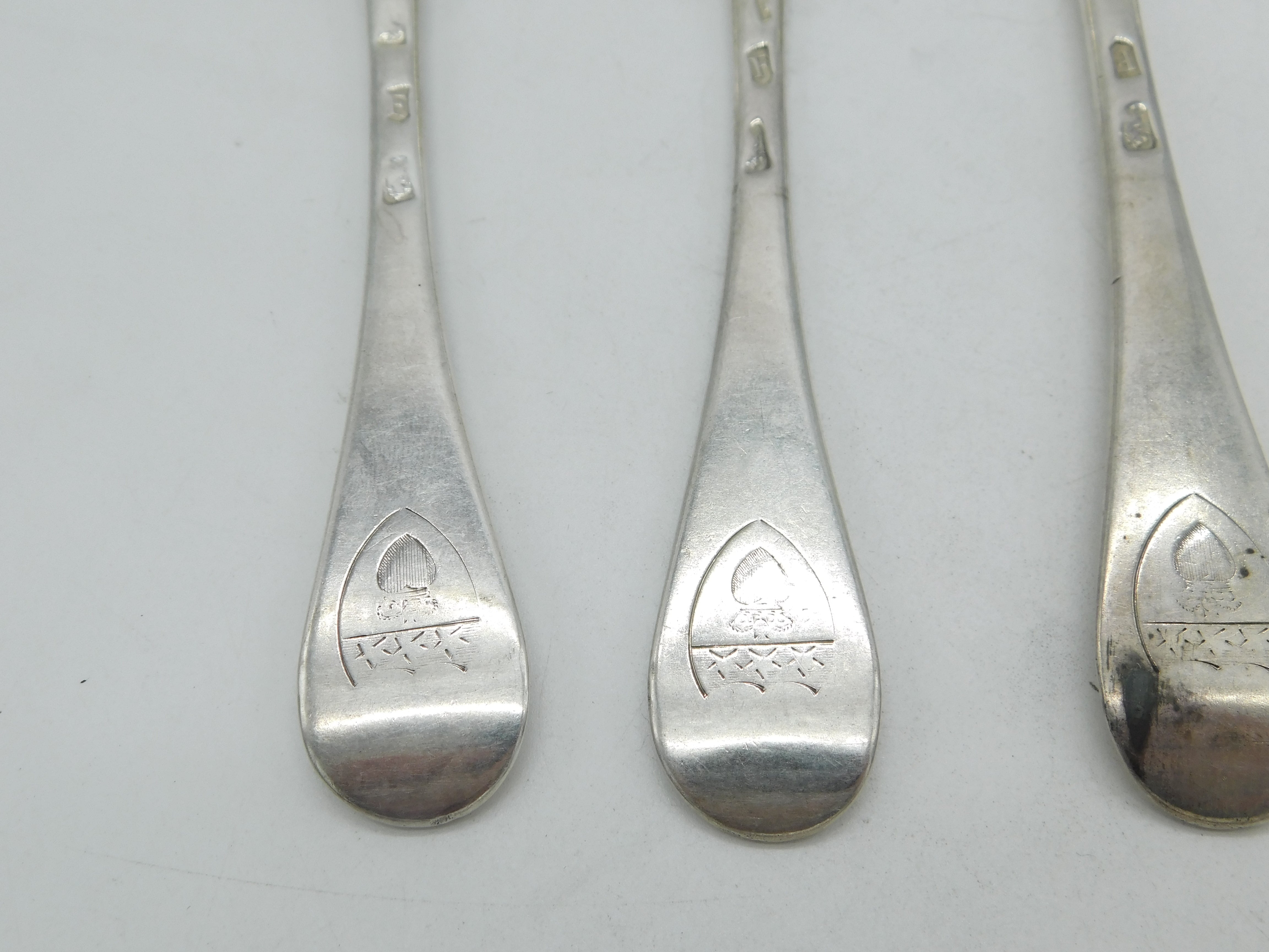 Details: A fantastic and wonderfully designed antique early georgian set of four britannia standard silver rat tail serving spoons with superb armorial crests engraved to the reverse of the terminals depicting an image of a heart surmounted by a crown, each spoon clearly hallmarked London 1721 by Andrew Archer. A wonderful early collection. This is a wonderful item that would make a perfect gift or addition to any collection. The BOX pictured is for PRESENTATION ONLY and is NOT included in the listings but used to frame the pictures unless specifically stated otherwise.