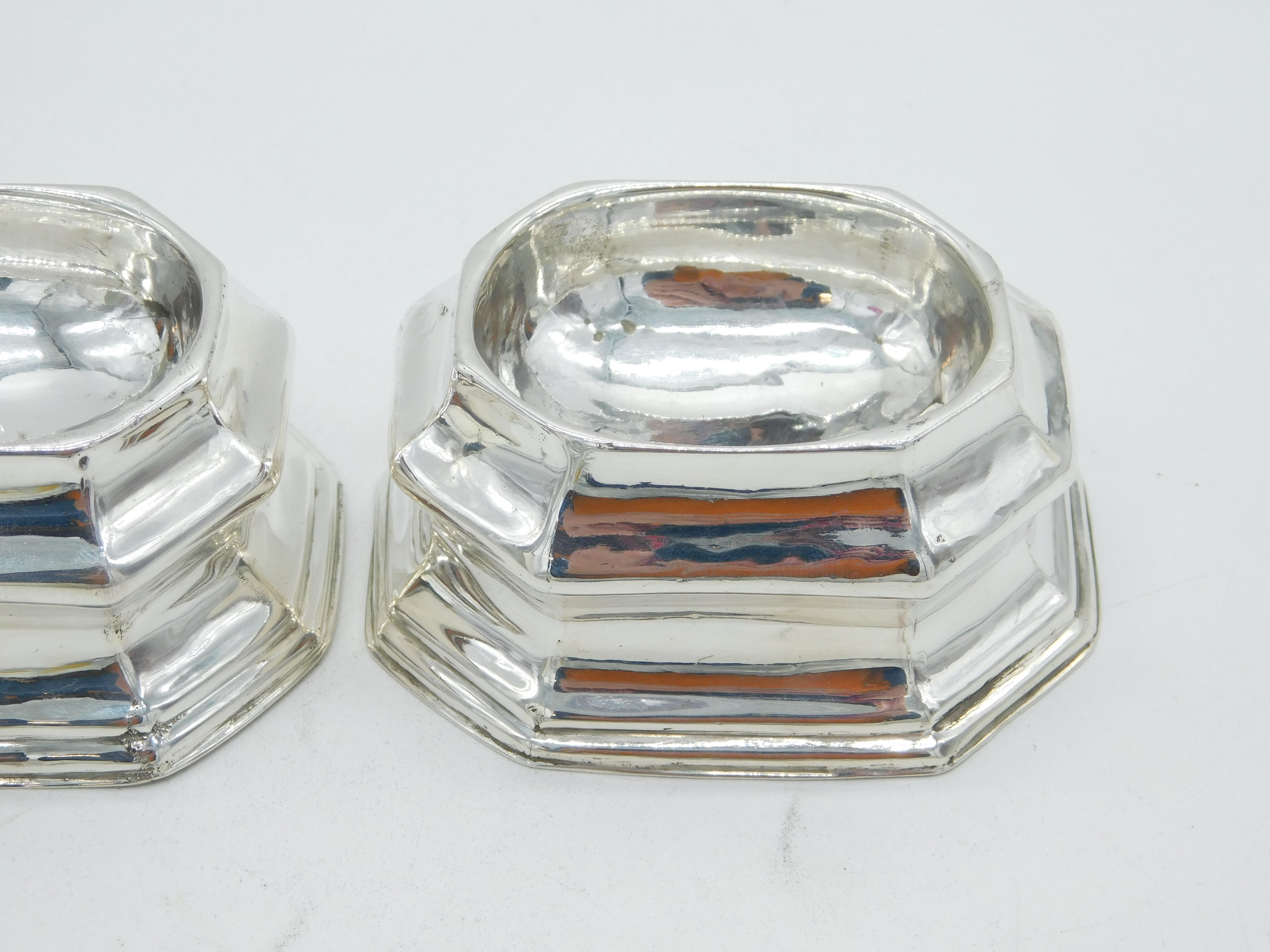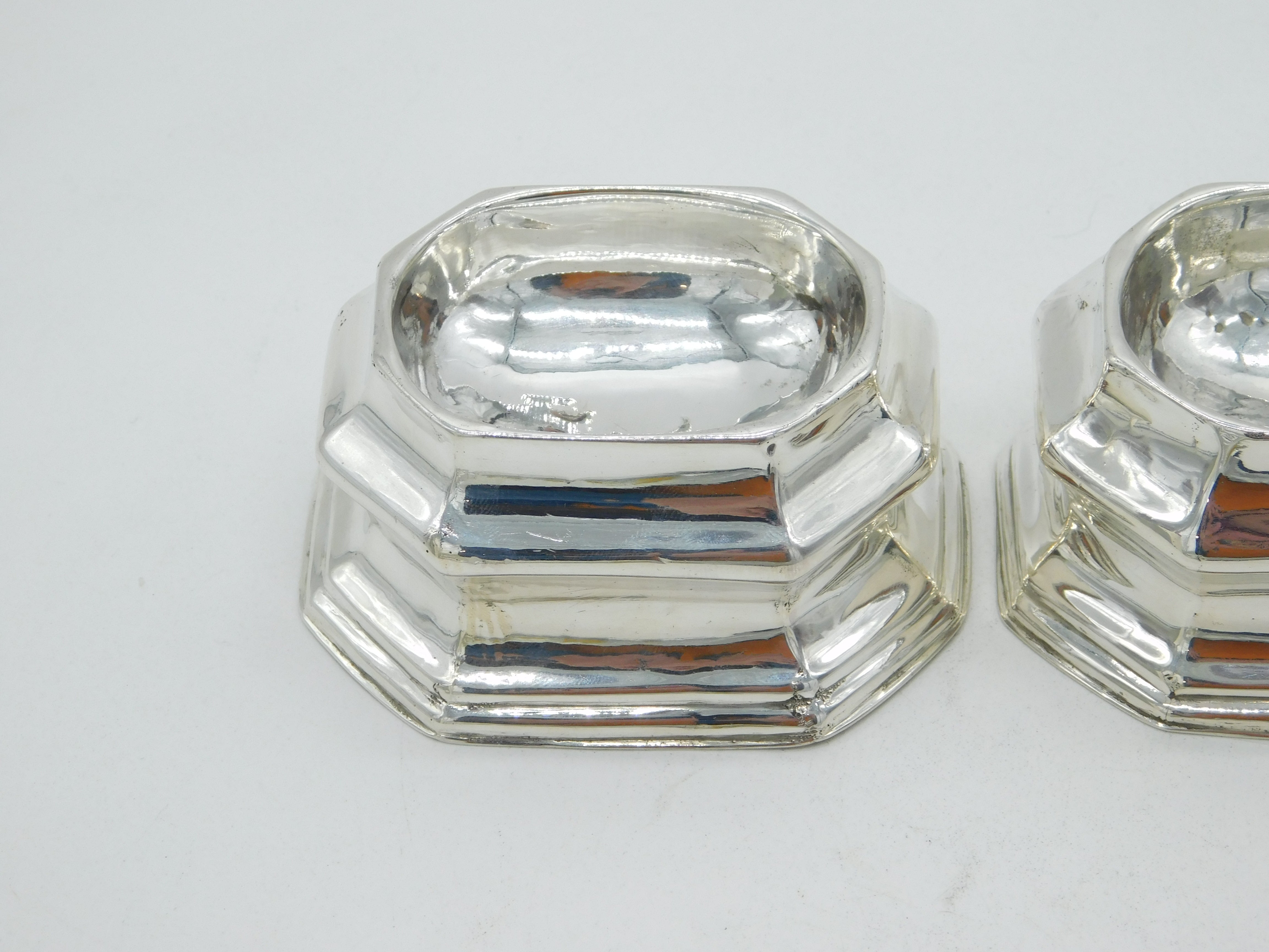 George I Britannia Standard Silver Pair of Trencher Salt Cellars Antique c1720