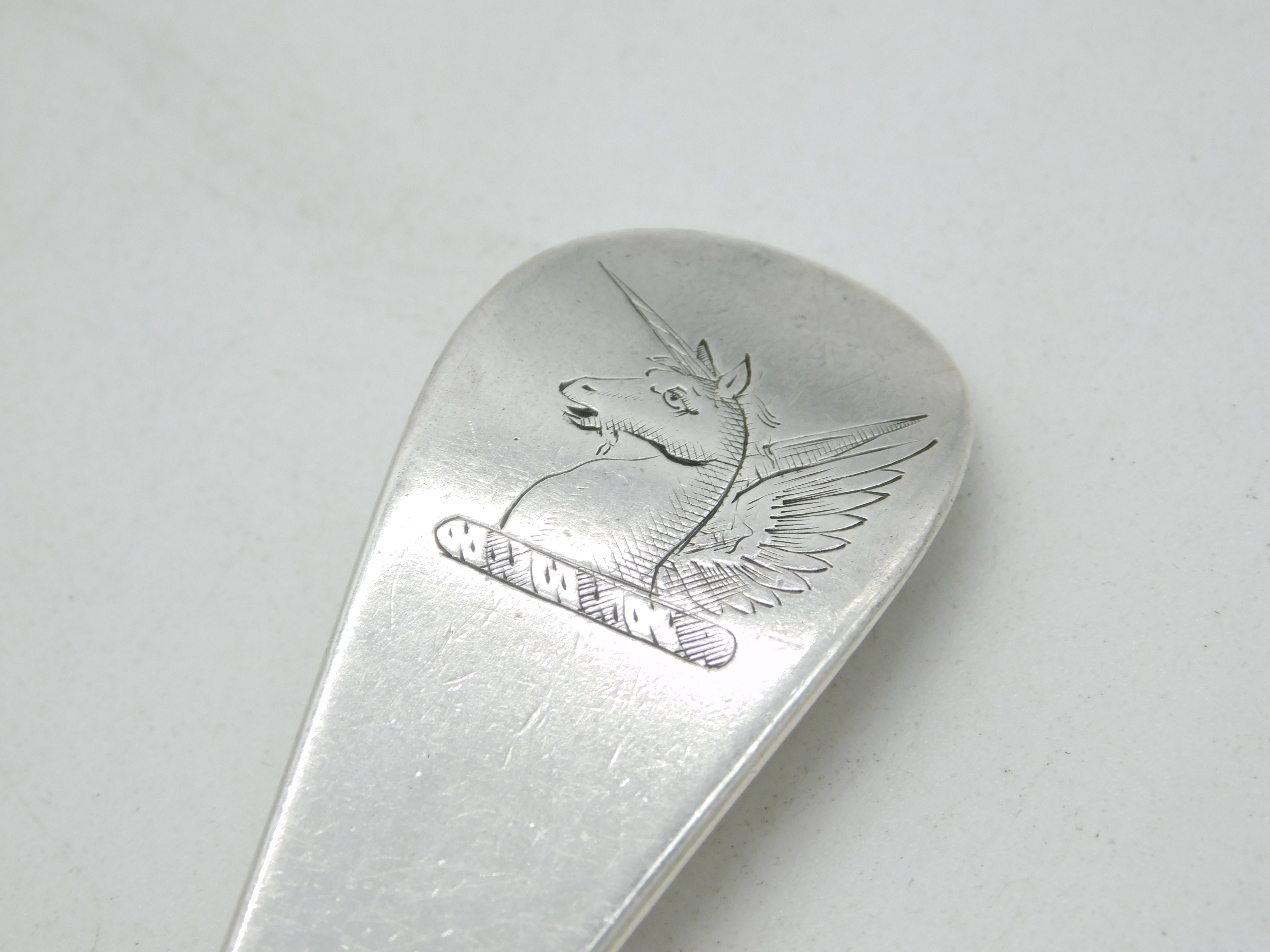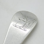 Details: A fantastic and wonderfully designed antique early-georgian sterling silver hanoverian pattern tablespoon with applied unicorn heraldic crest to the terminal, hallmarked for London 1724 by John Millington. This is a wonderful item that would make a perfect gift or addition to any collection. We are more than happy to provide XRF reports for items upon request.