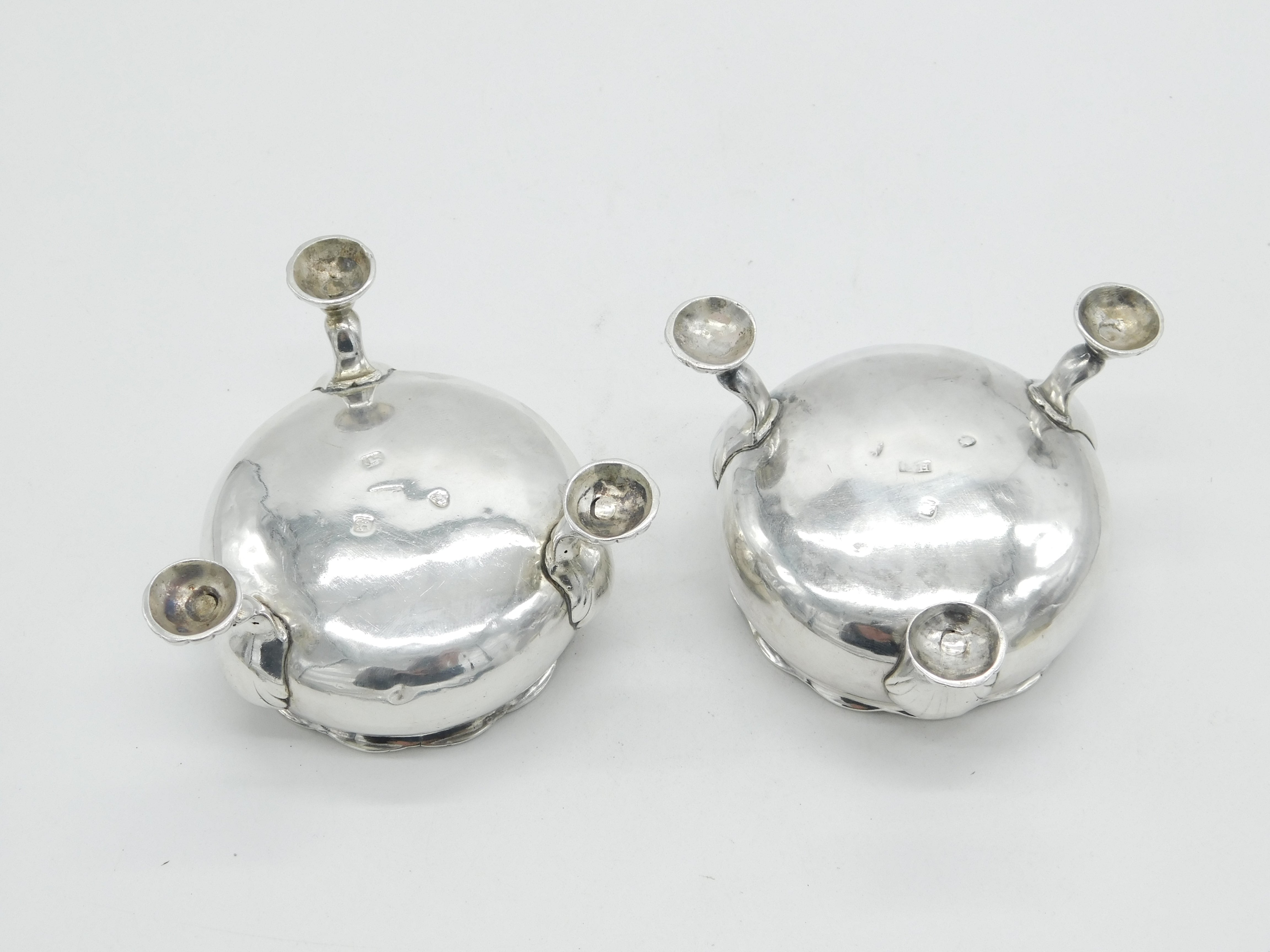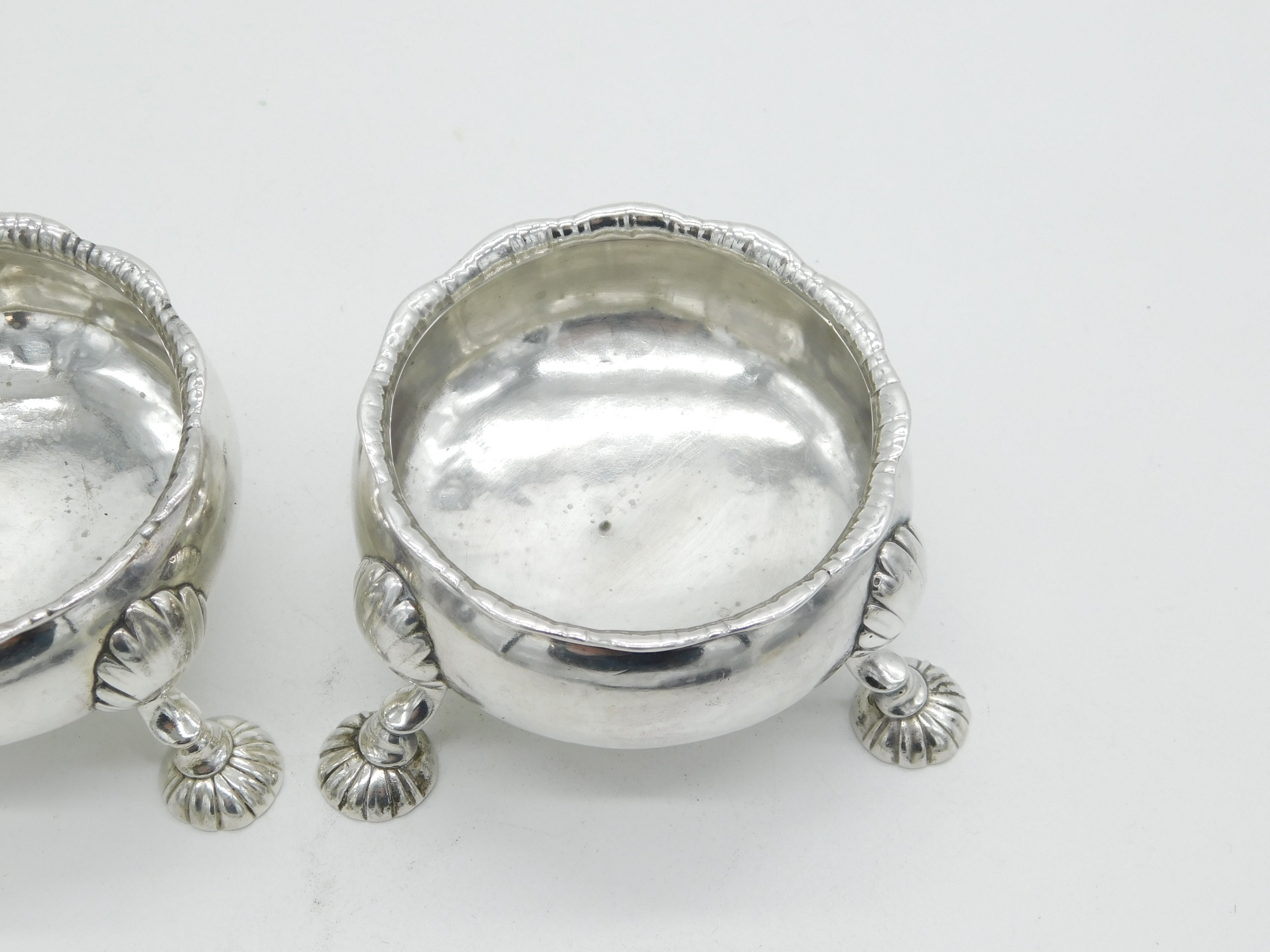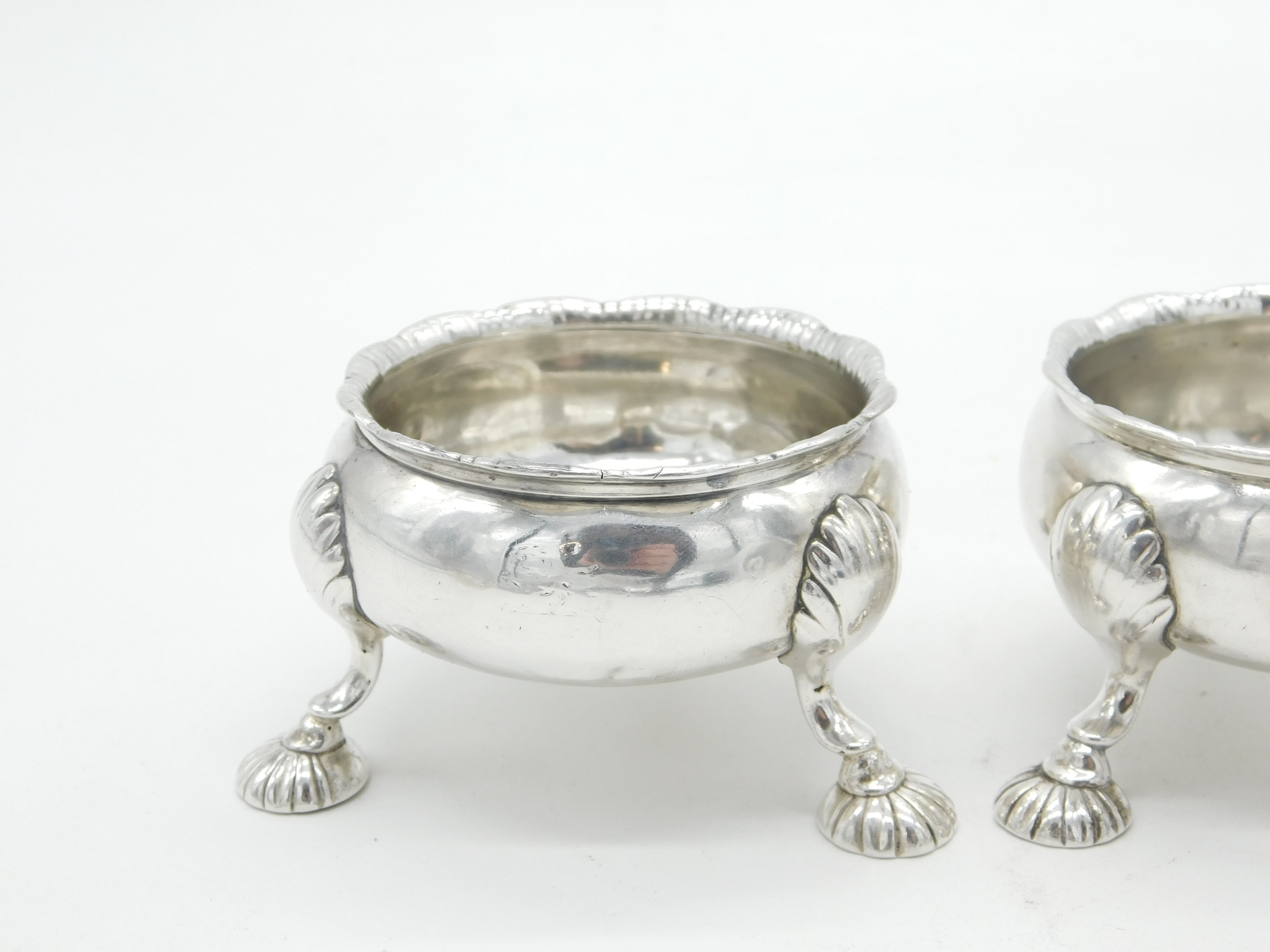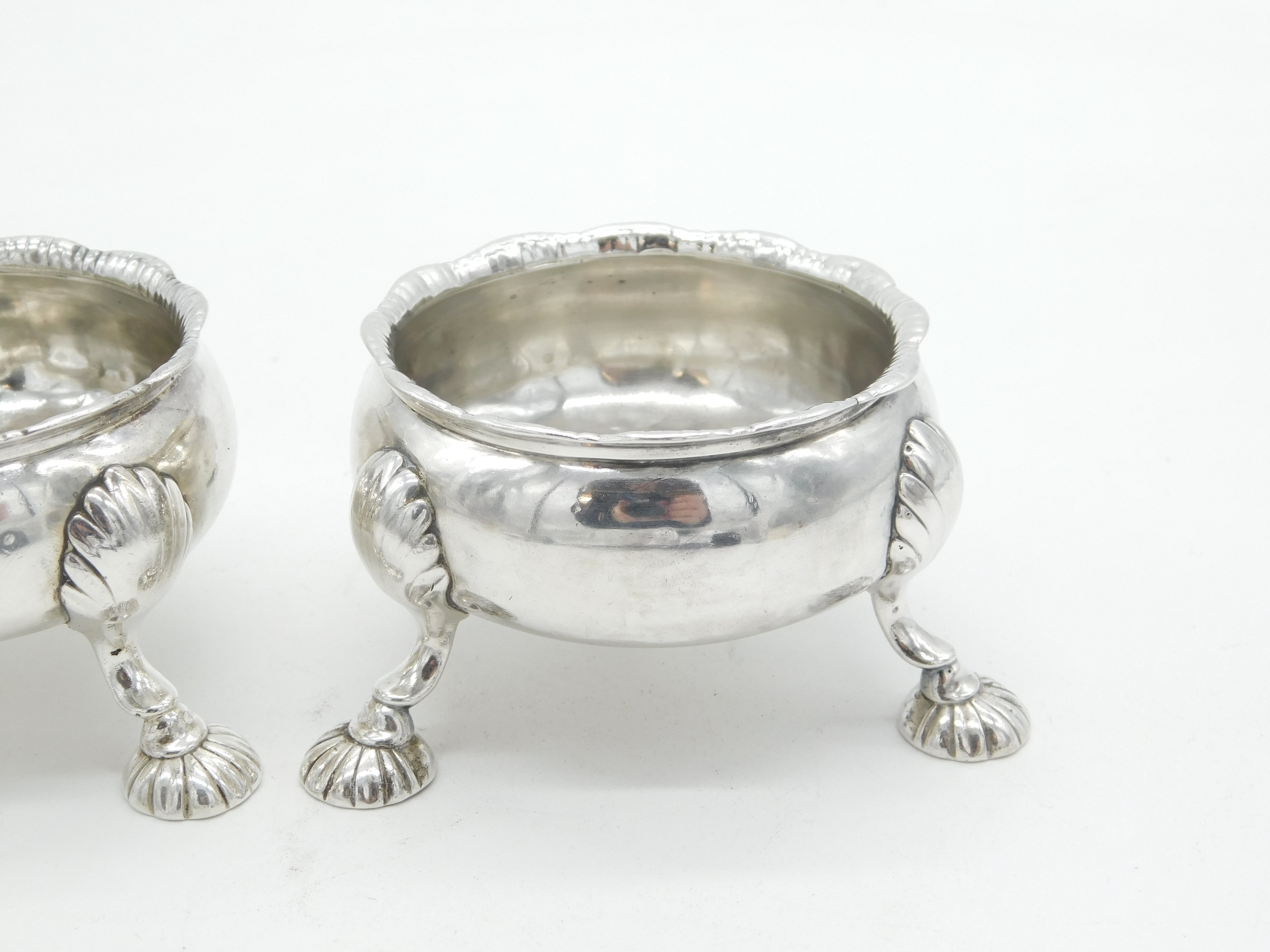 George II Pair of Sterling Silver Shell Foot Salt Cellars Antique 1757 London