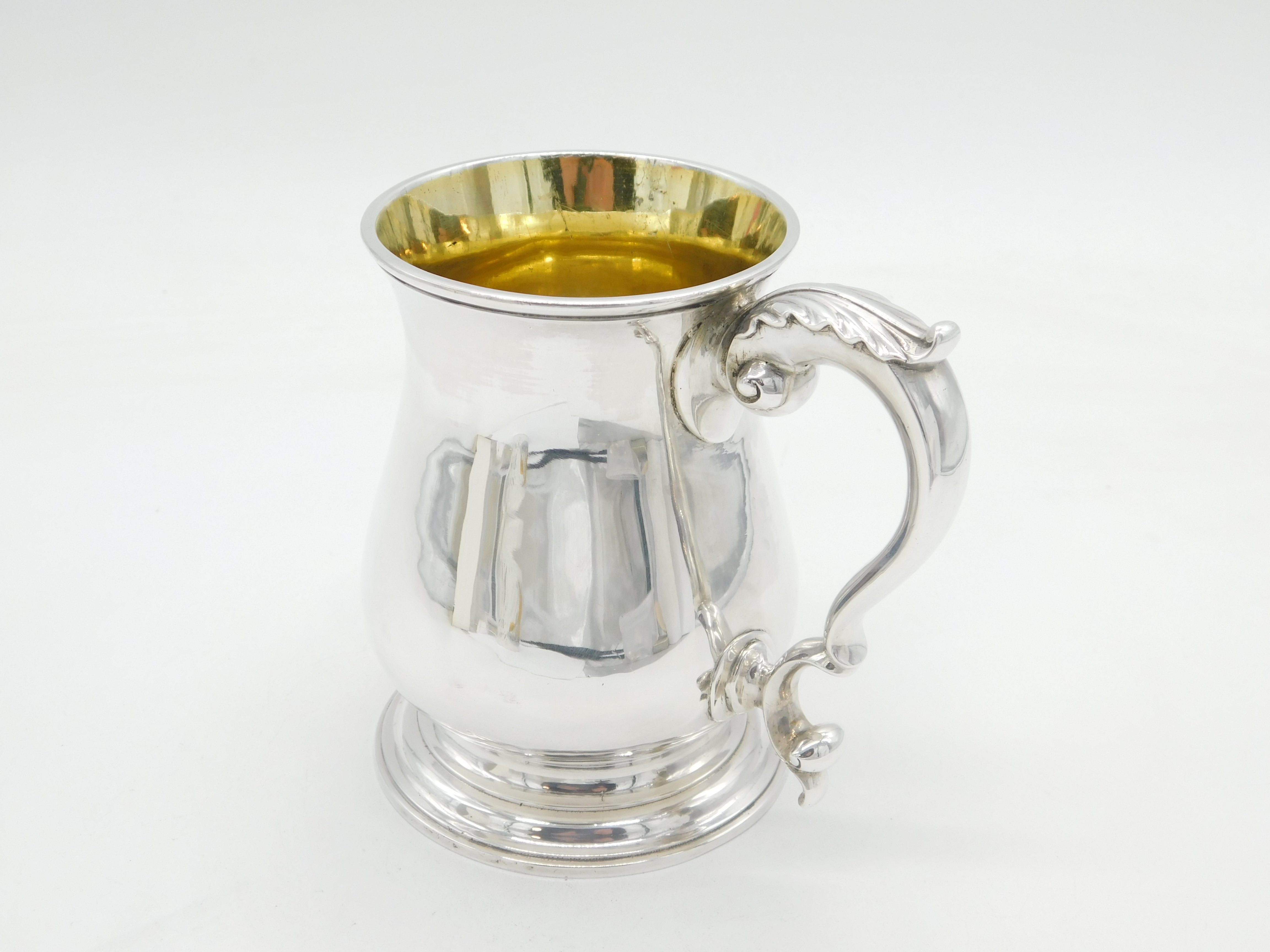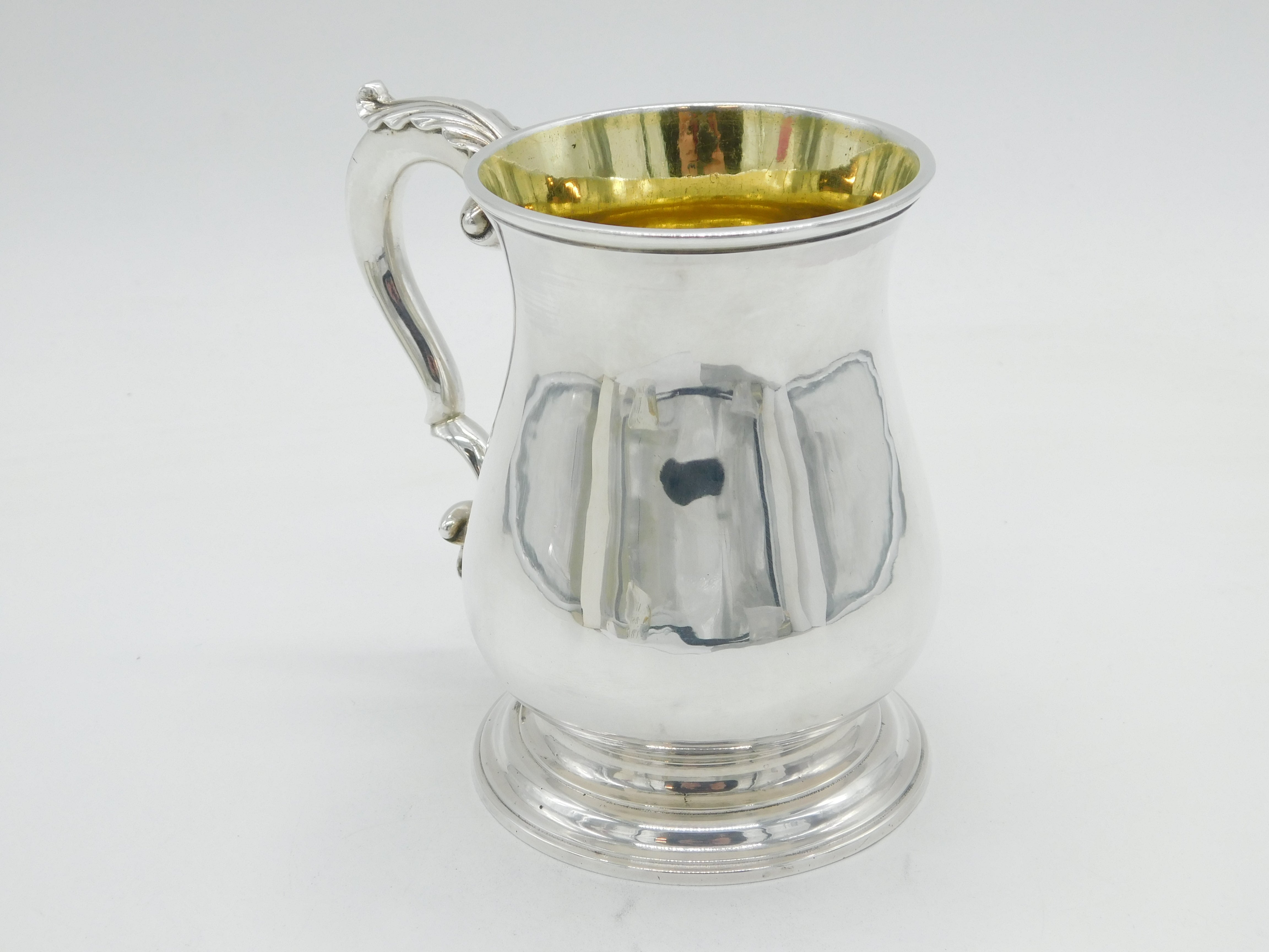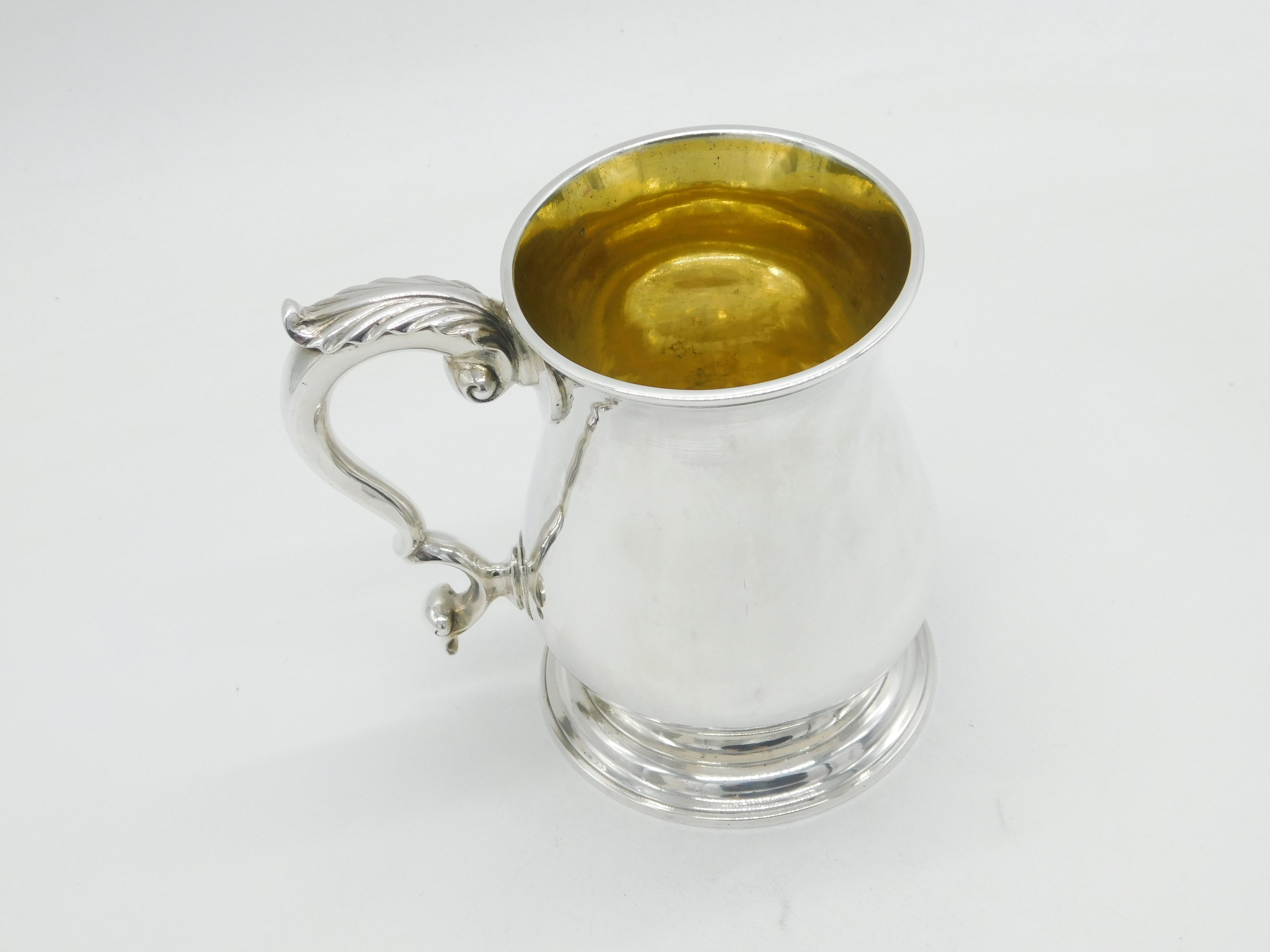 Details: A fantastic and wonderfully designed antique early-georgian sterling silver baluster pint tankard with cast folate handle and parcel gilt interior, hallmarked to the base for London 1759 by William Shaw & William Priest. Highly polished and presented in nice condition. This is a wonderful item that would make a perfect gift or addition to any collection. We are more than happy to provide XRF reports for items upon request.