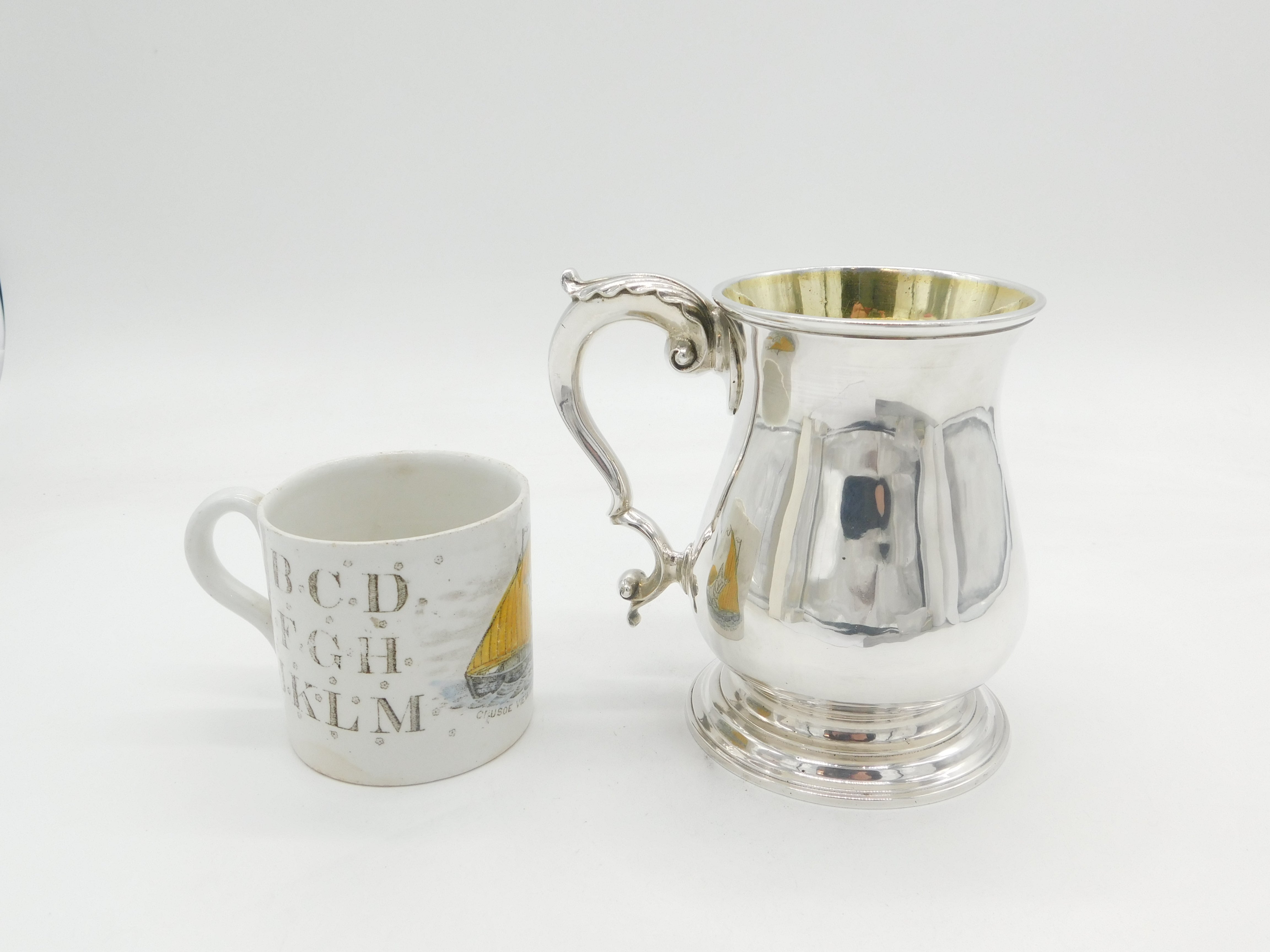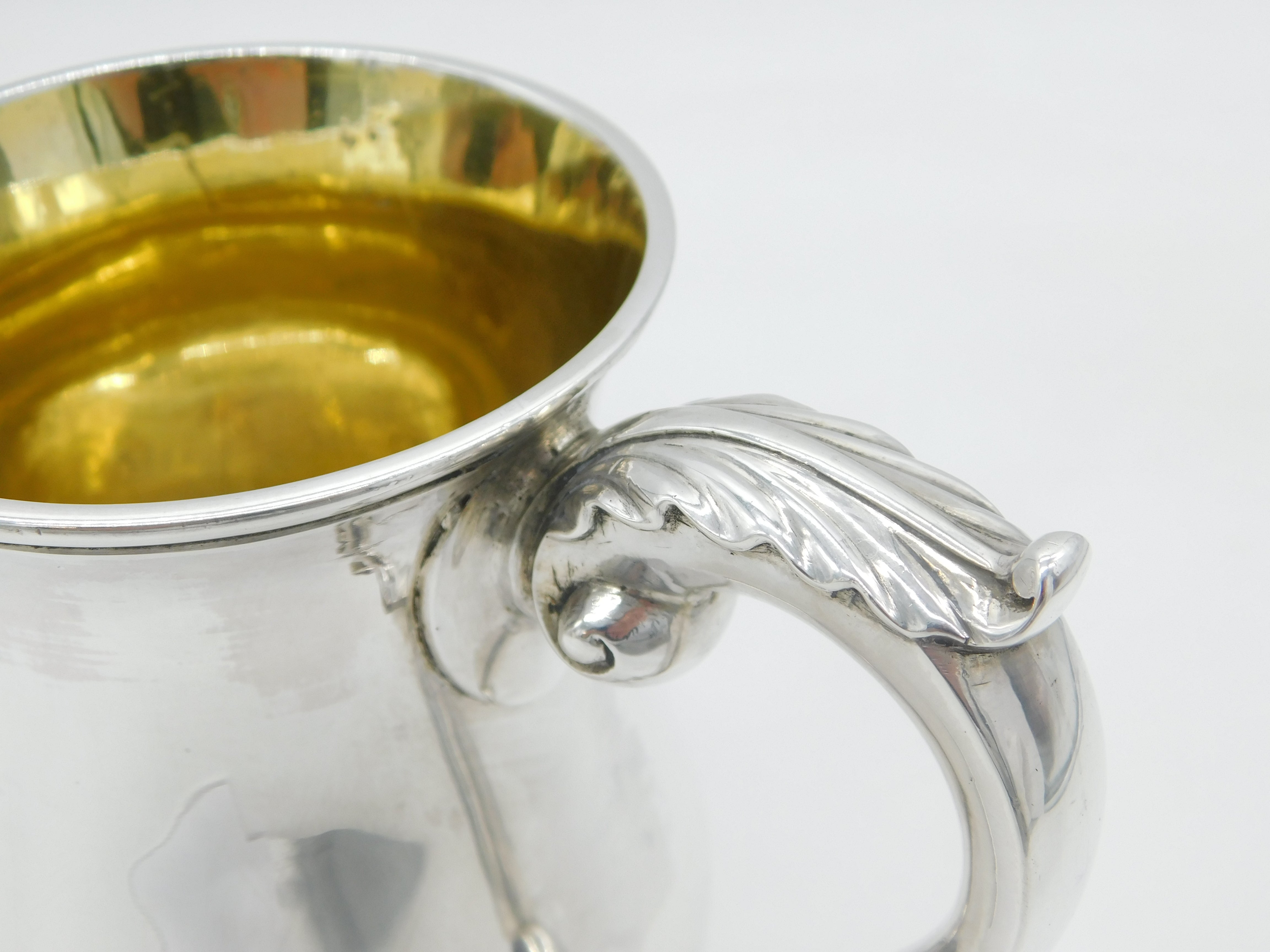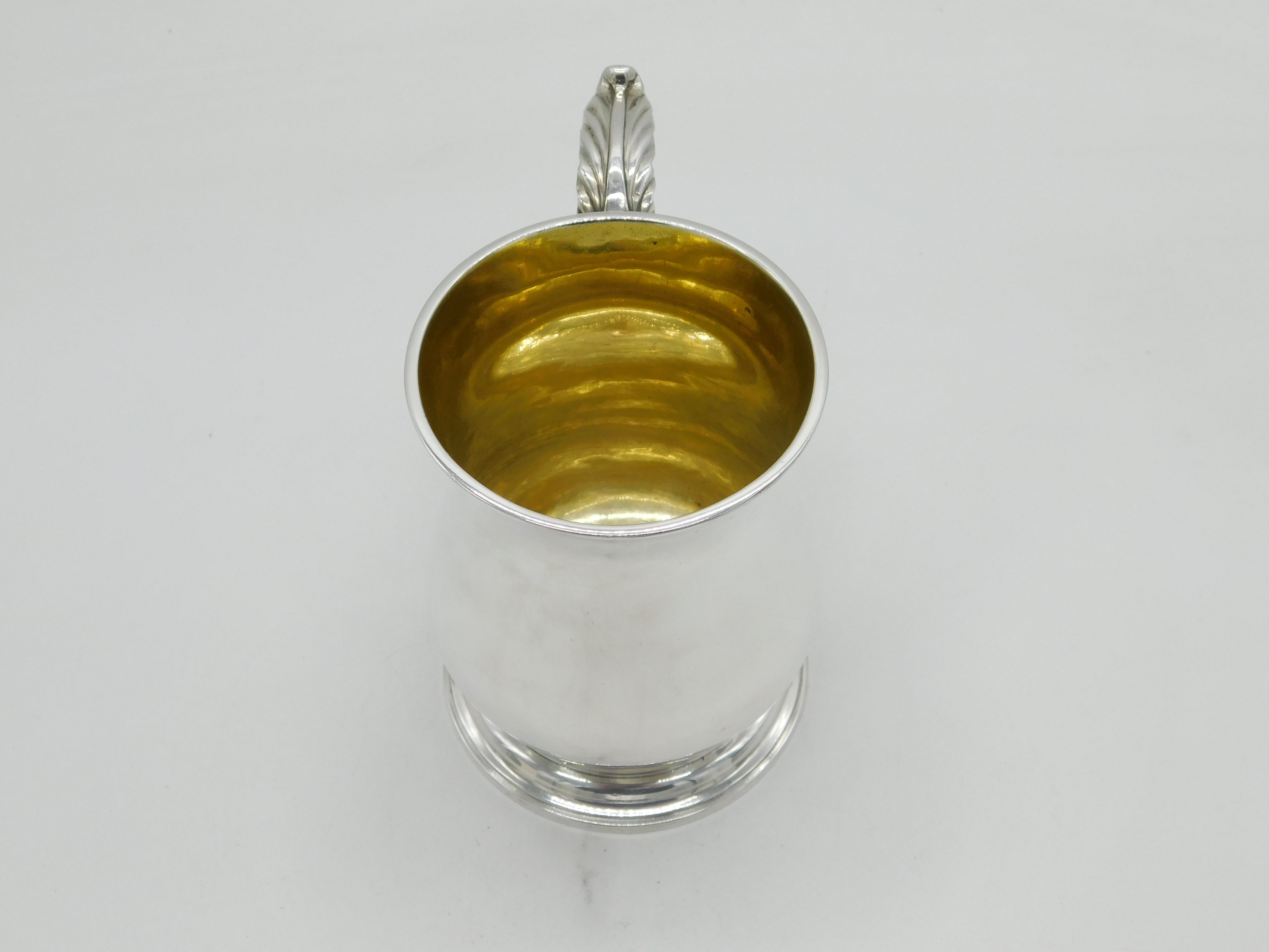 Details: A fantastic and wonderfully designed antique early-georgian sterling silver baluster pint tankard with cast folate handle and parcel gilt interior, hallmarked to the base for London 1759 by William Shaw & William Priest. Highly polished and presented in nice condition. This is a wonderful item that would make a perfect gift or addition to any collection. We are more than happy to provide XRF reports for items upon request.
