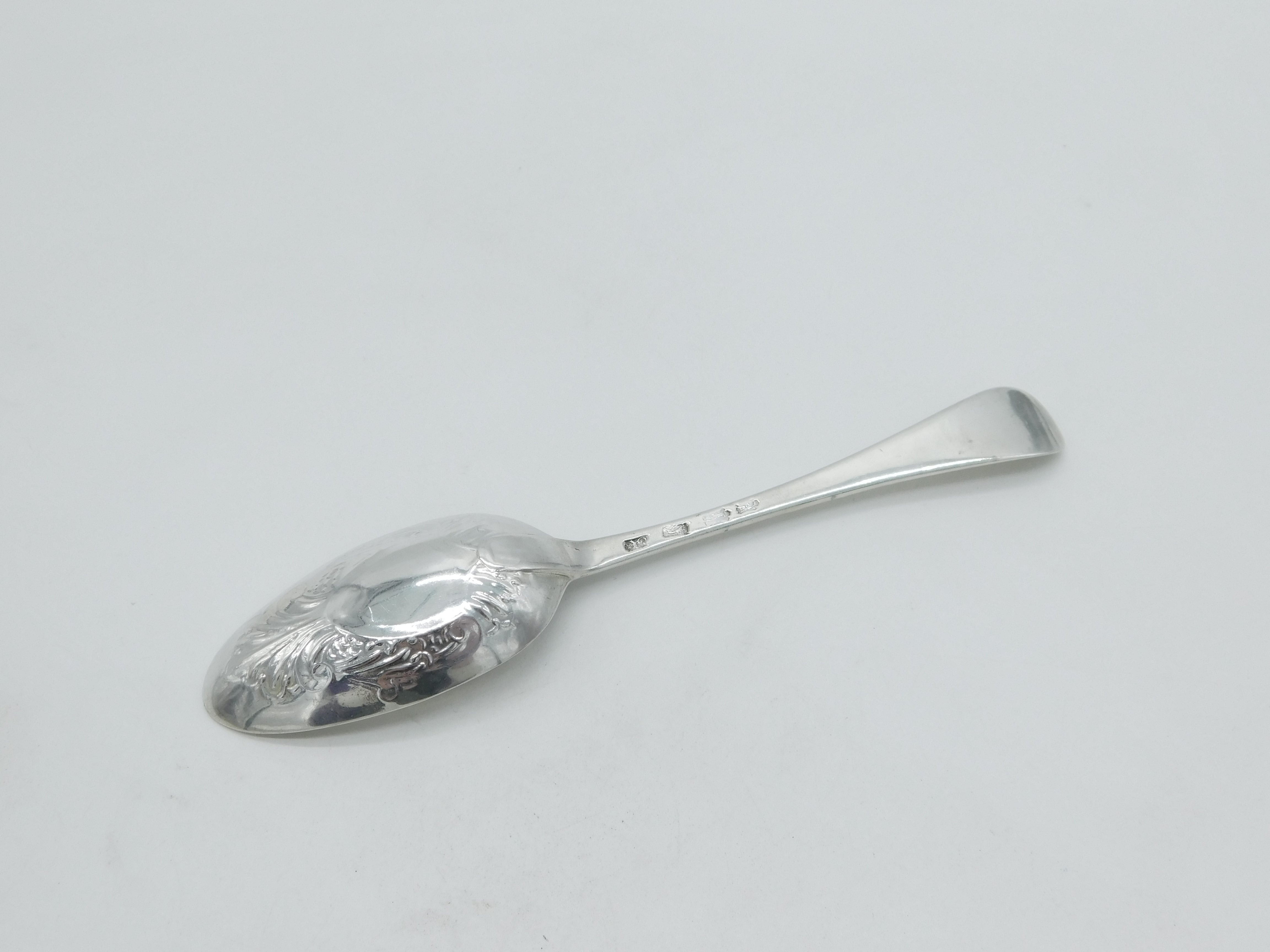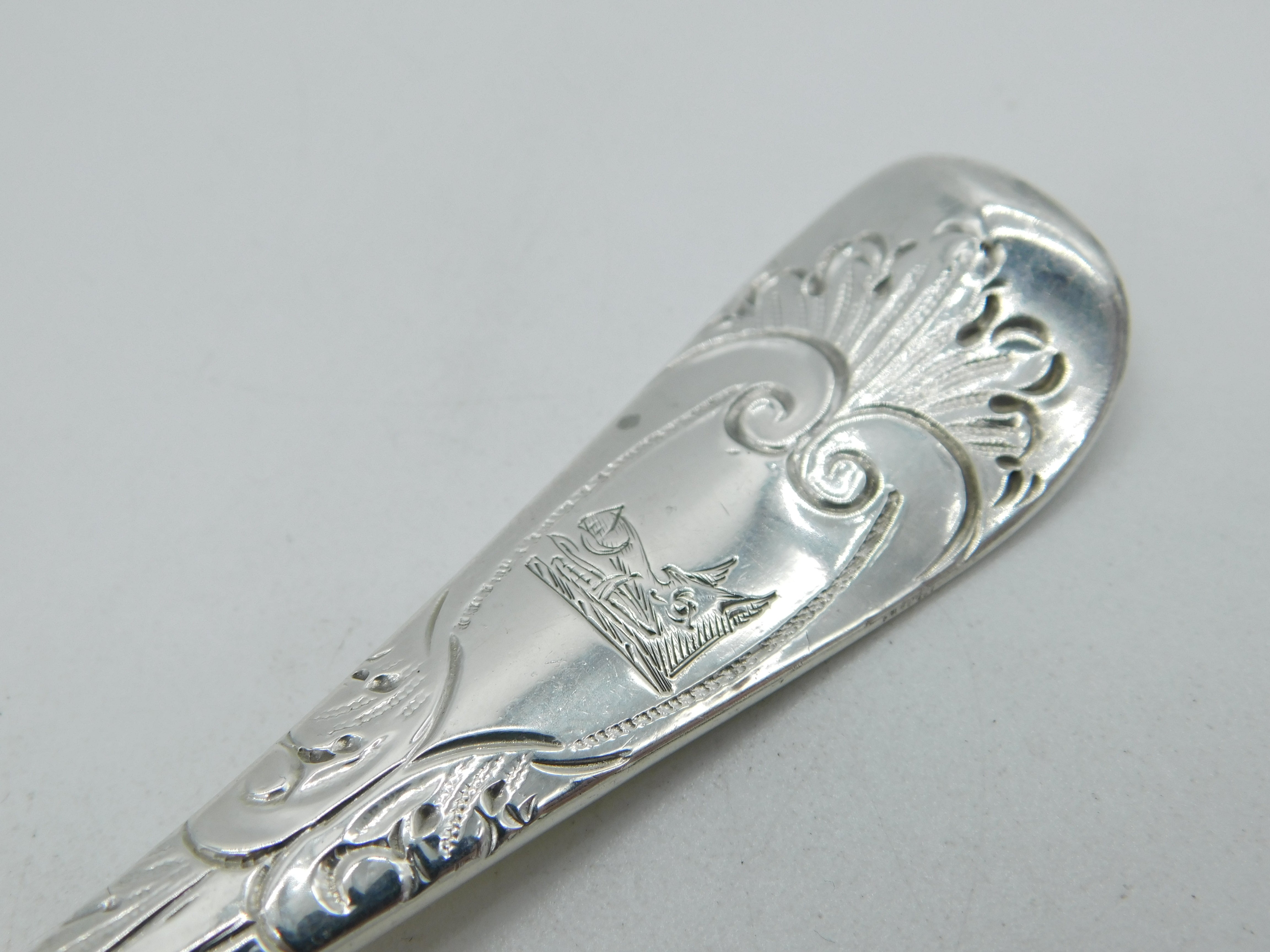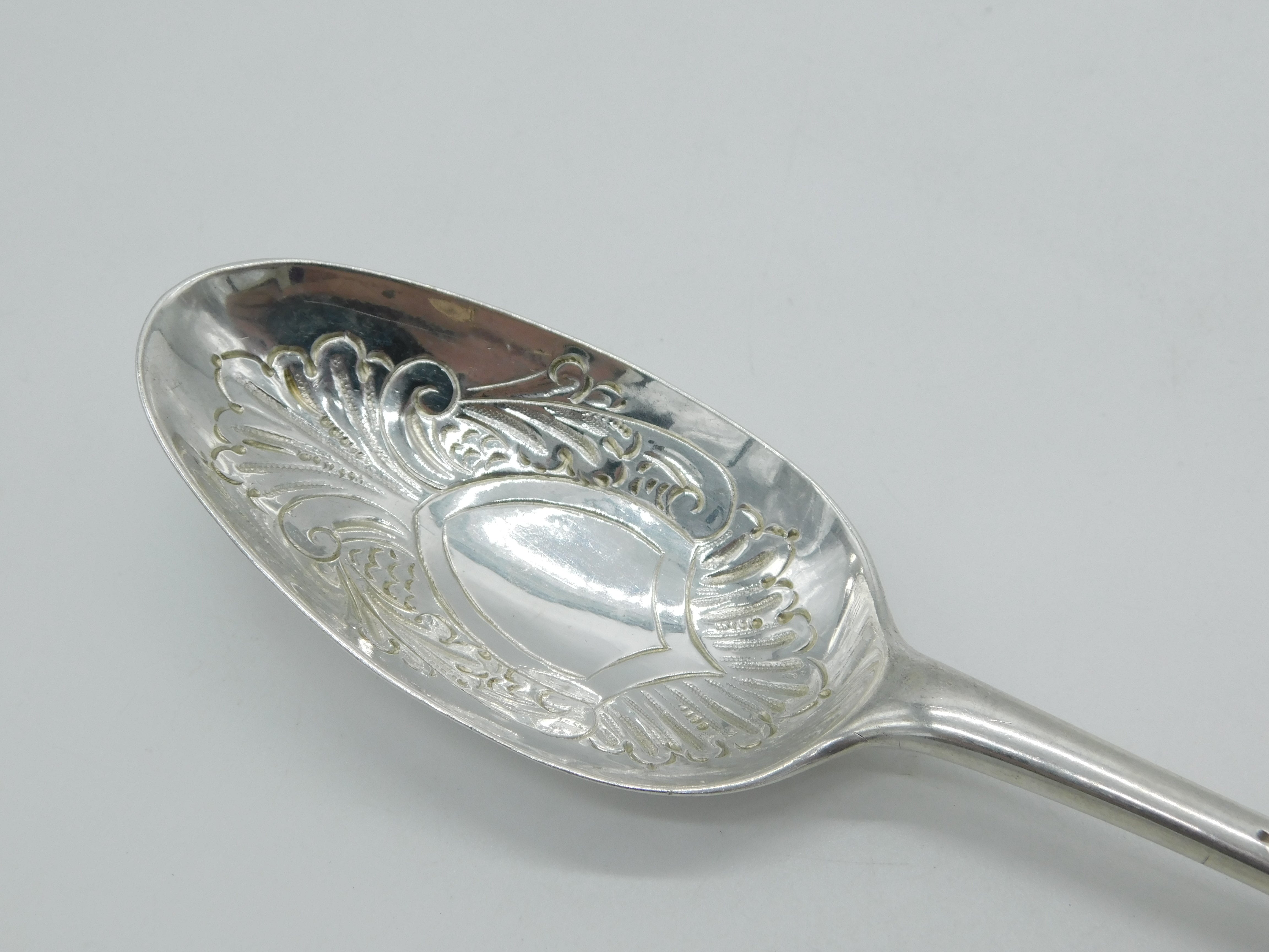 George II Sterling Silver Boar Crest Floral Serving Spoon Antique 1745 London