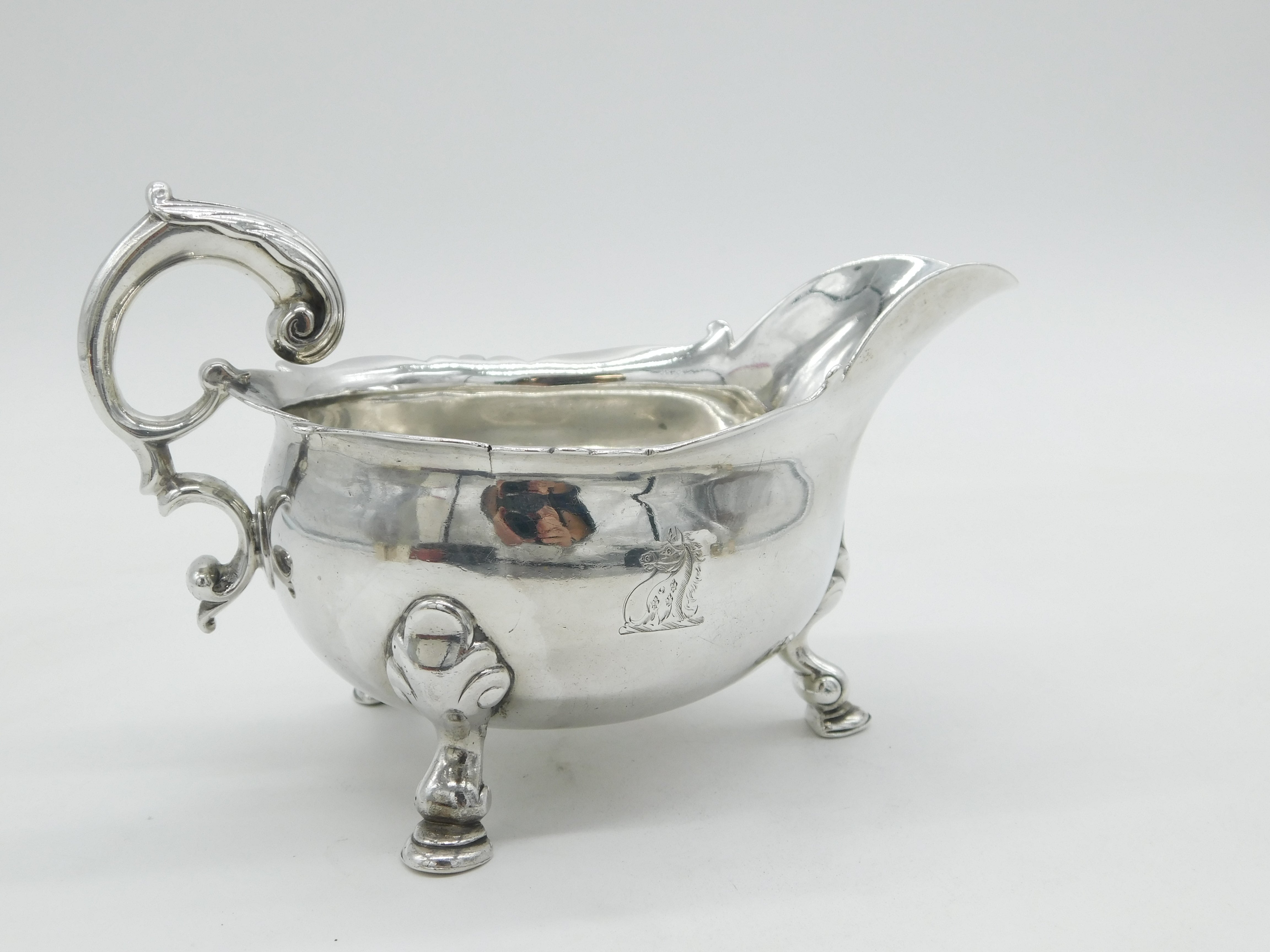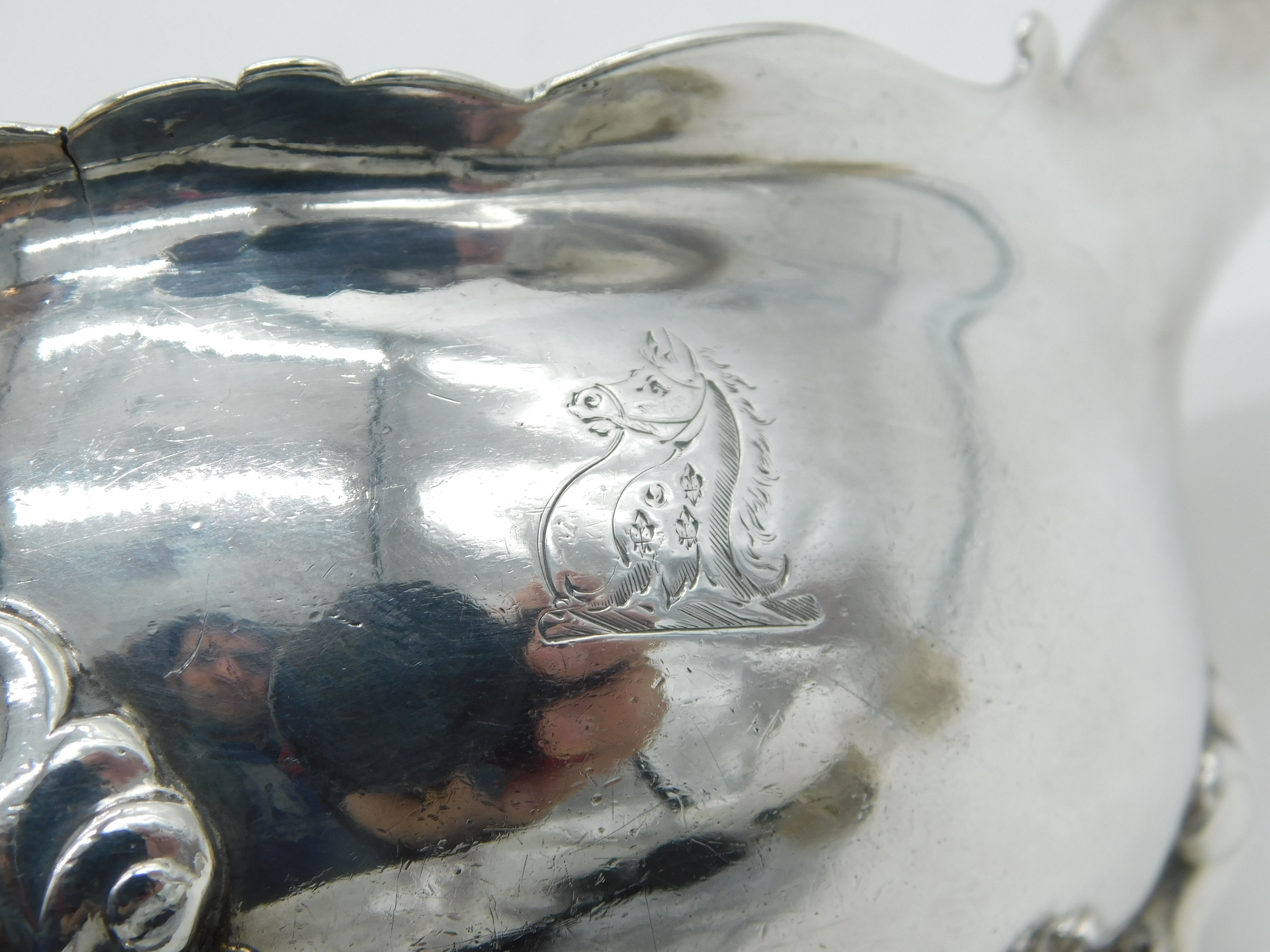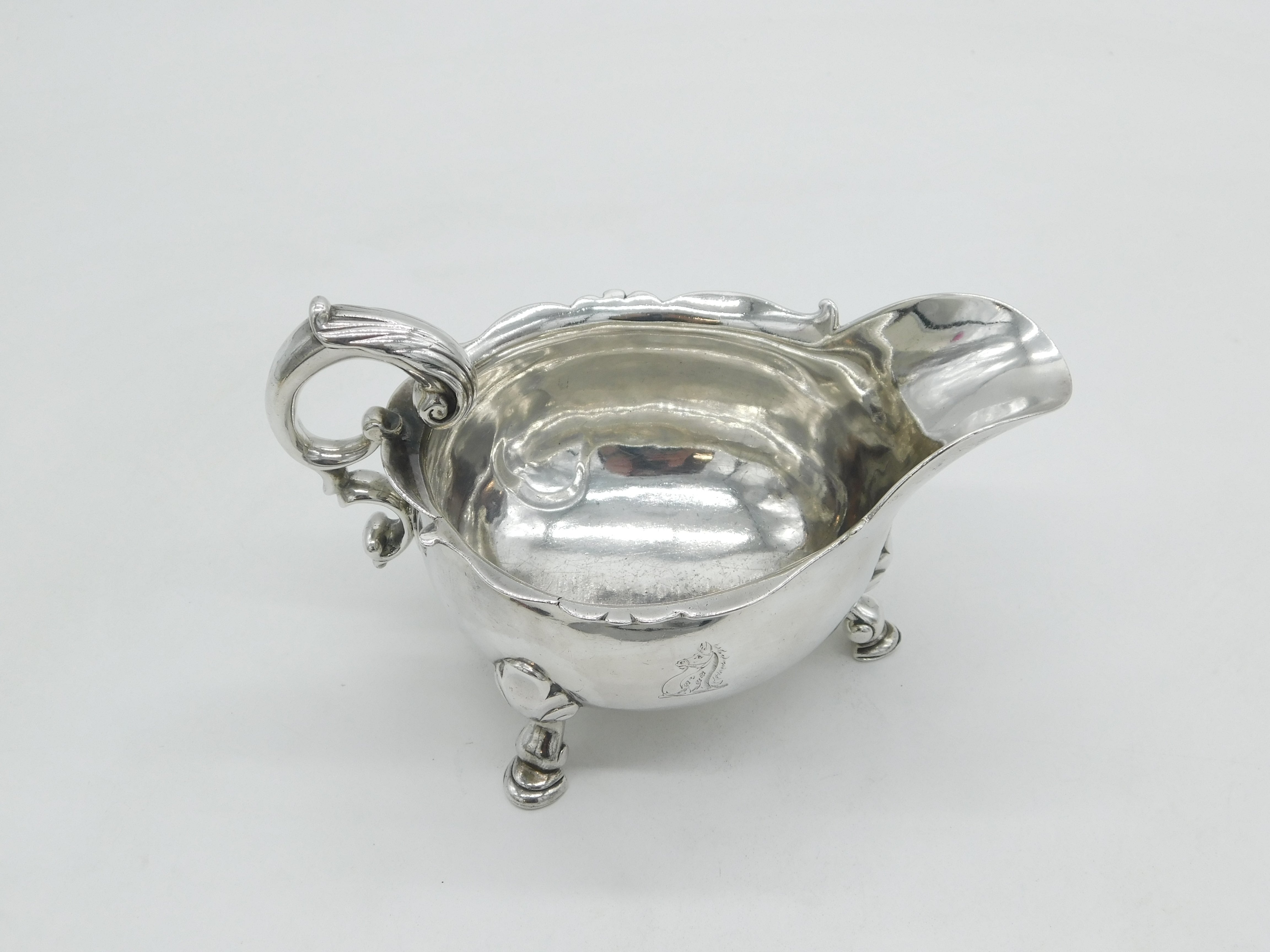George II Sterling Silver Crested Paw Foot Sauce Boat Antique 1742 London