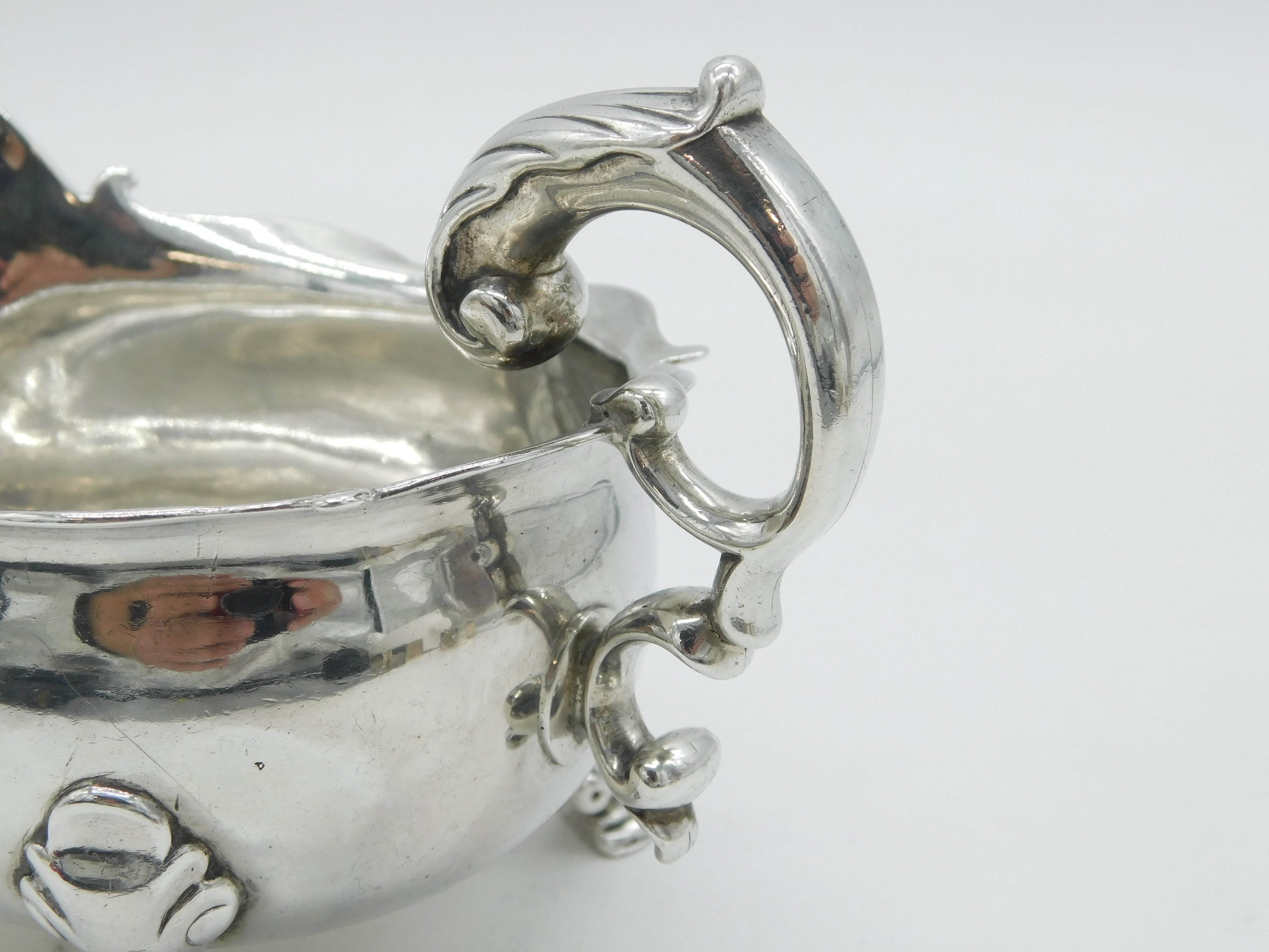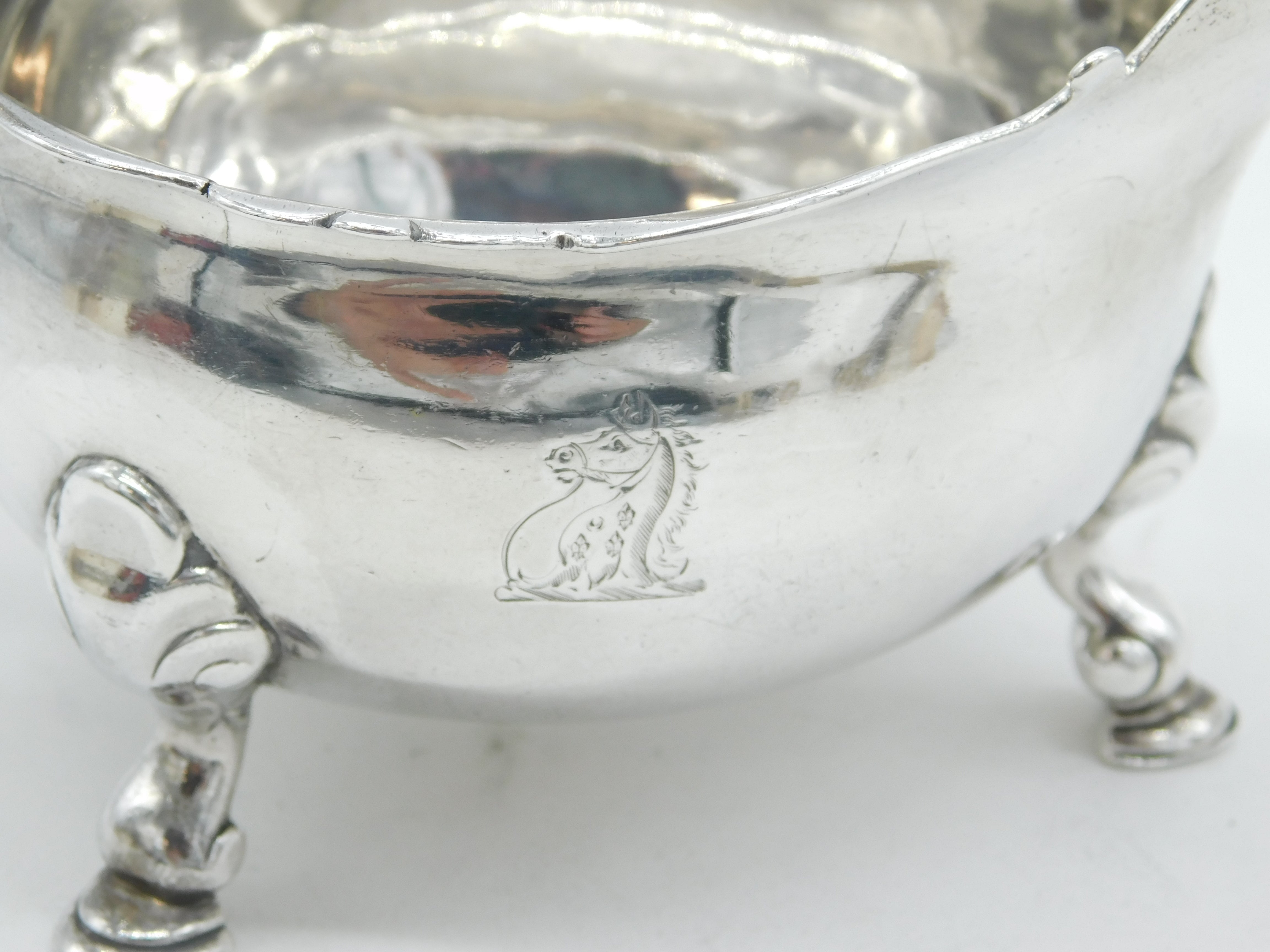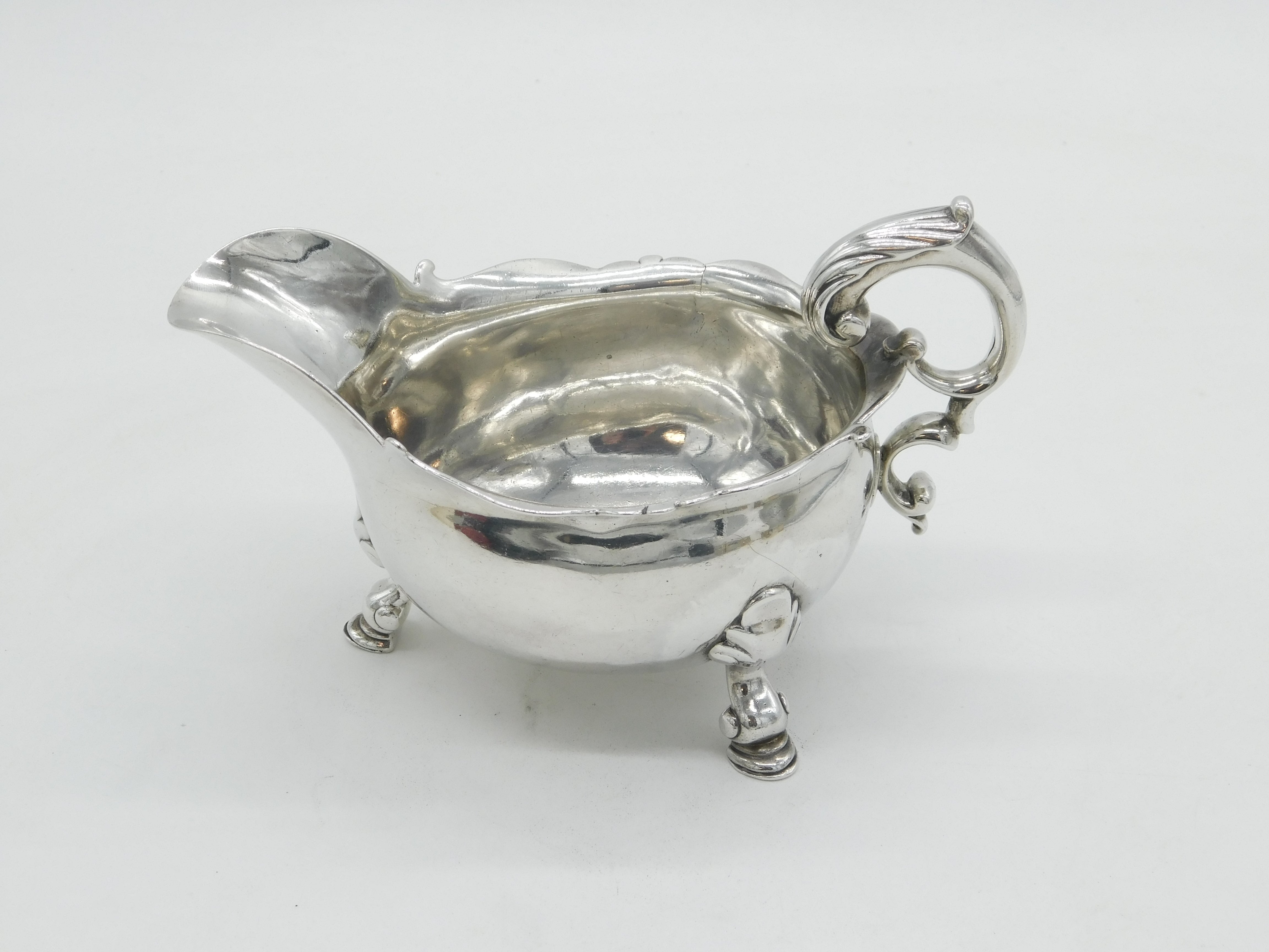 George II Sterling Silver Crested Paw Foot Sauce Boat Antique 1742 London