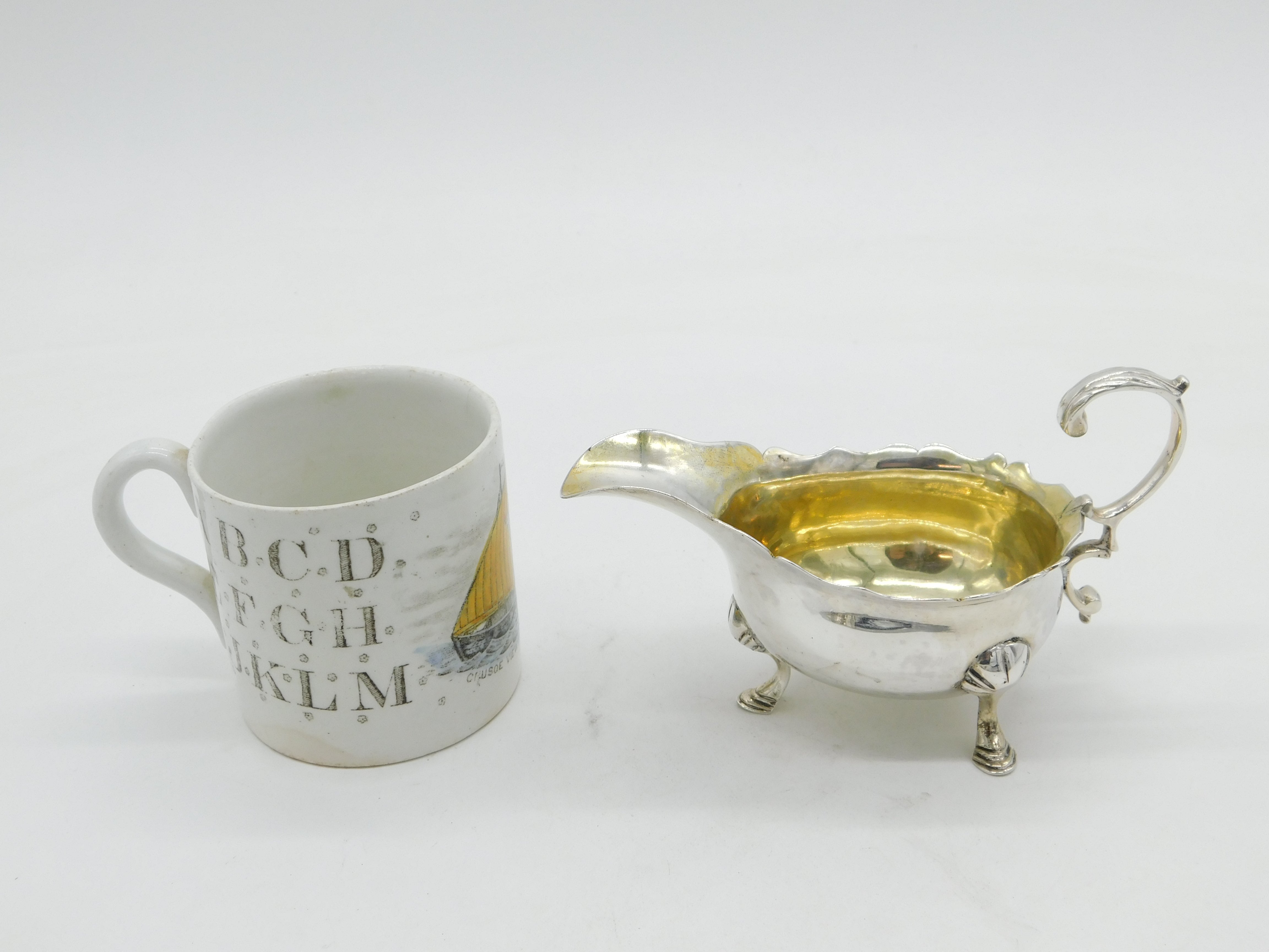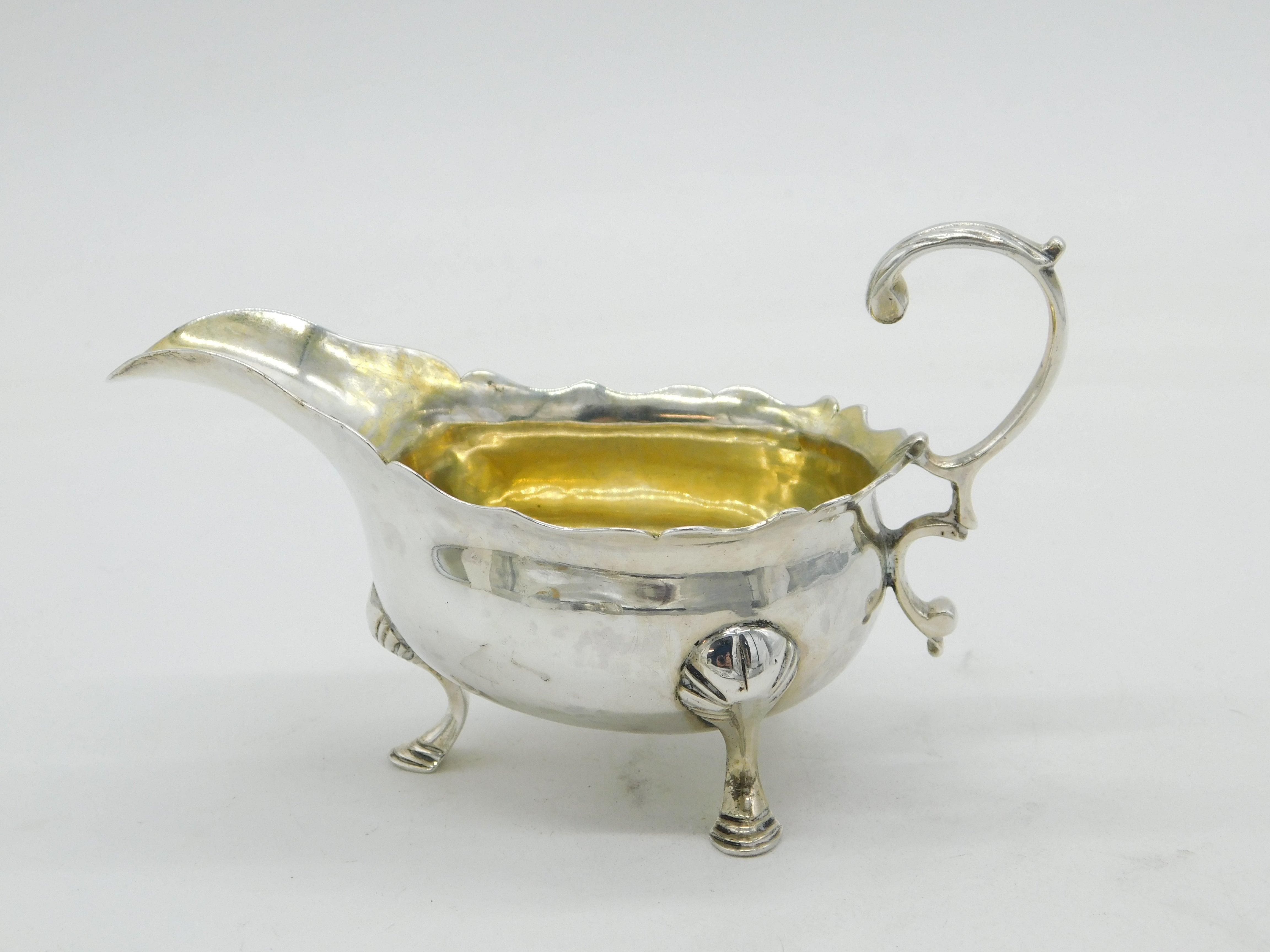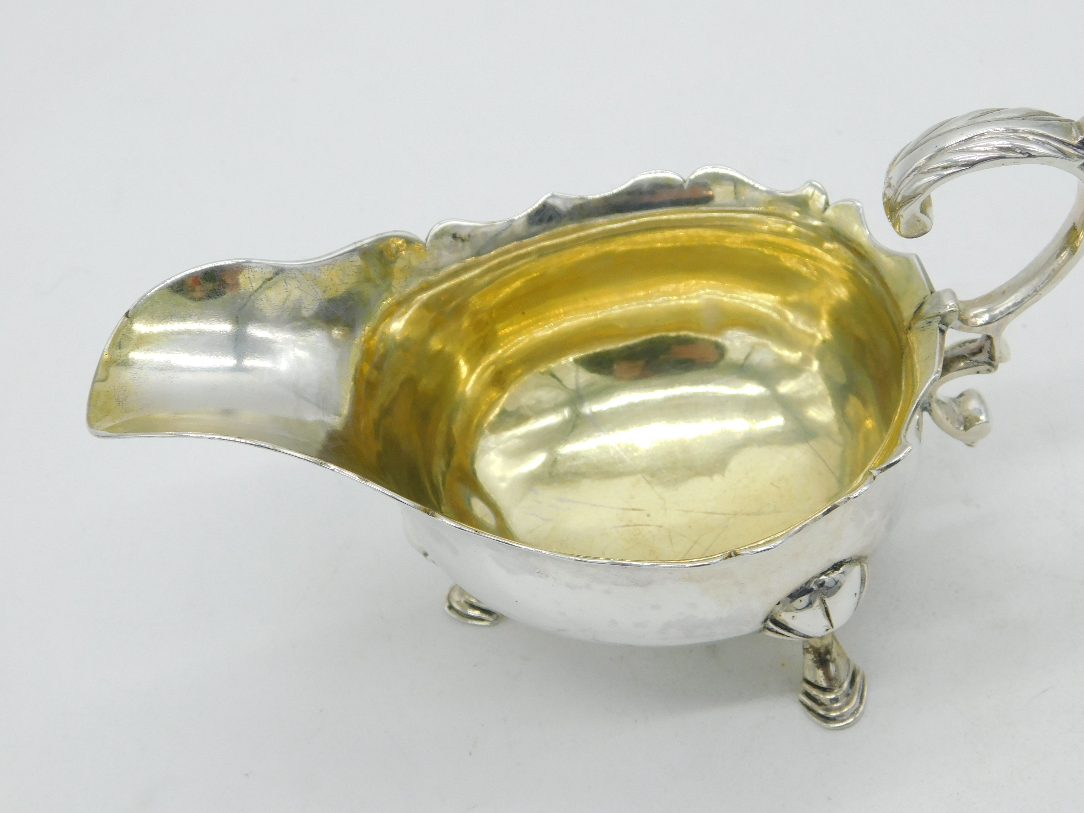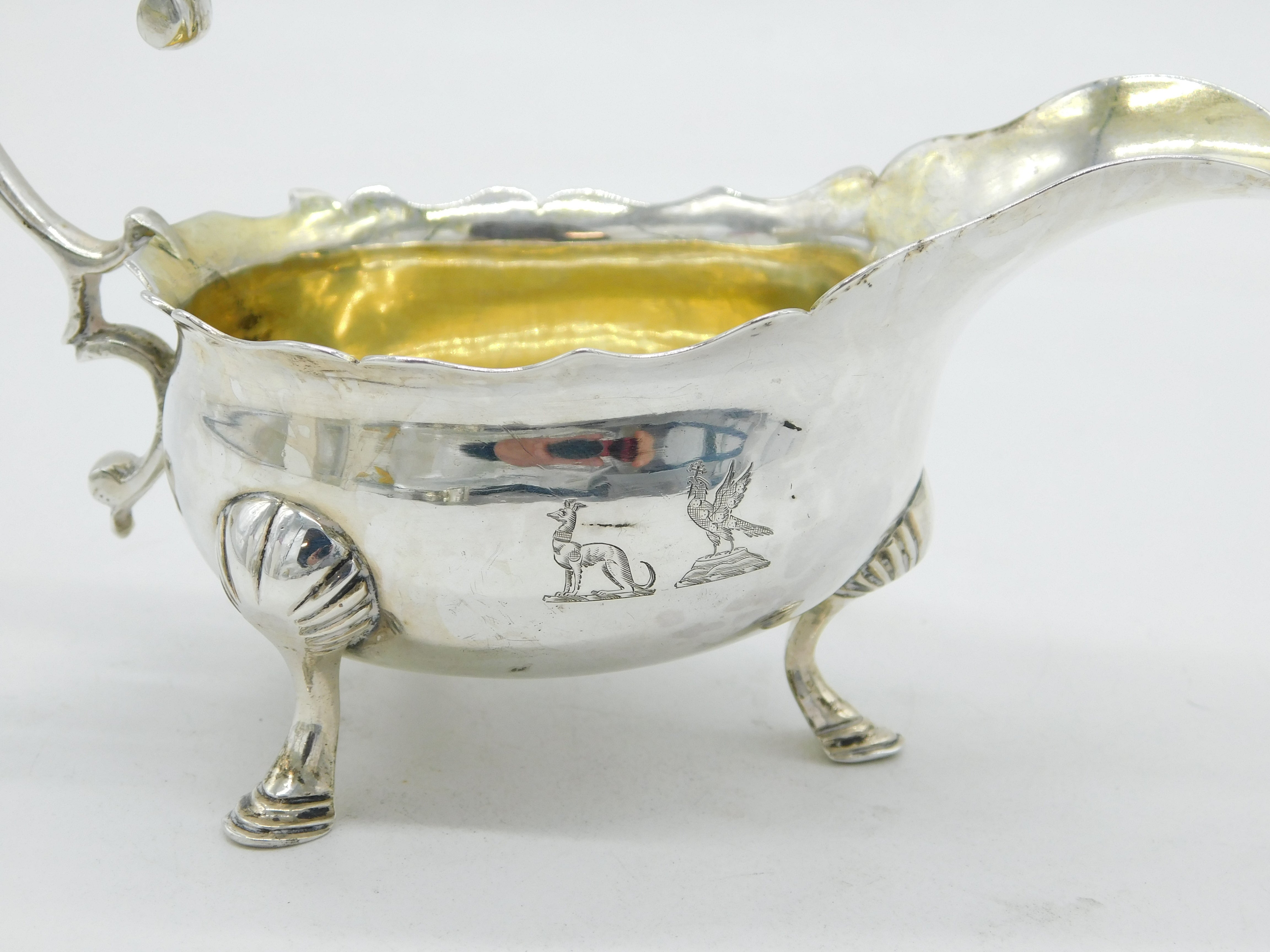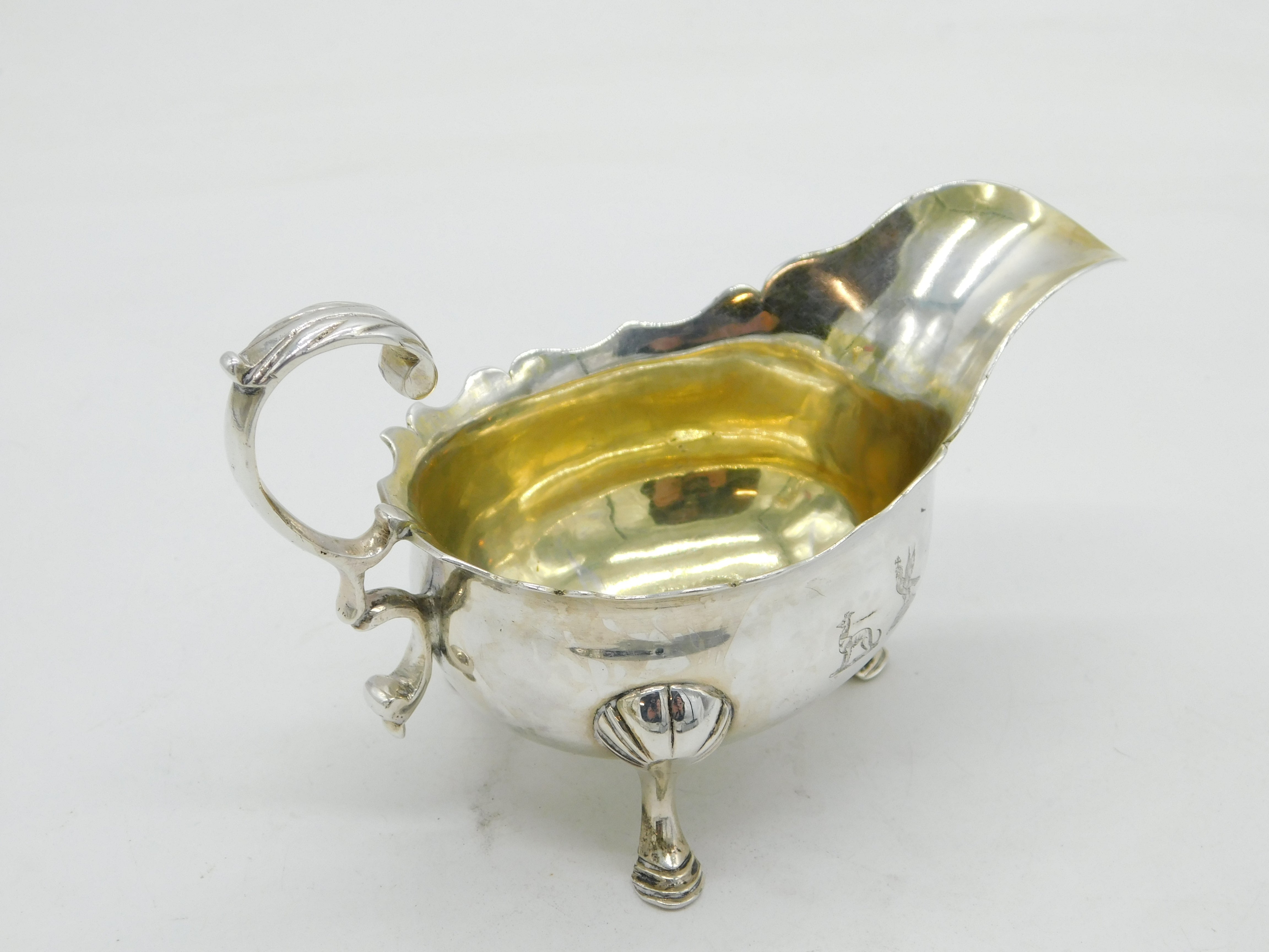 George II Sterling Silver Crested Sauce Boat Antique 1748 London
