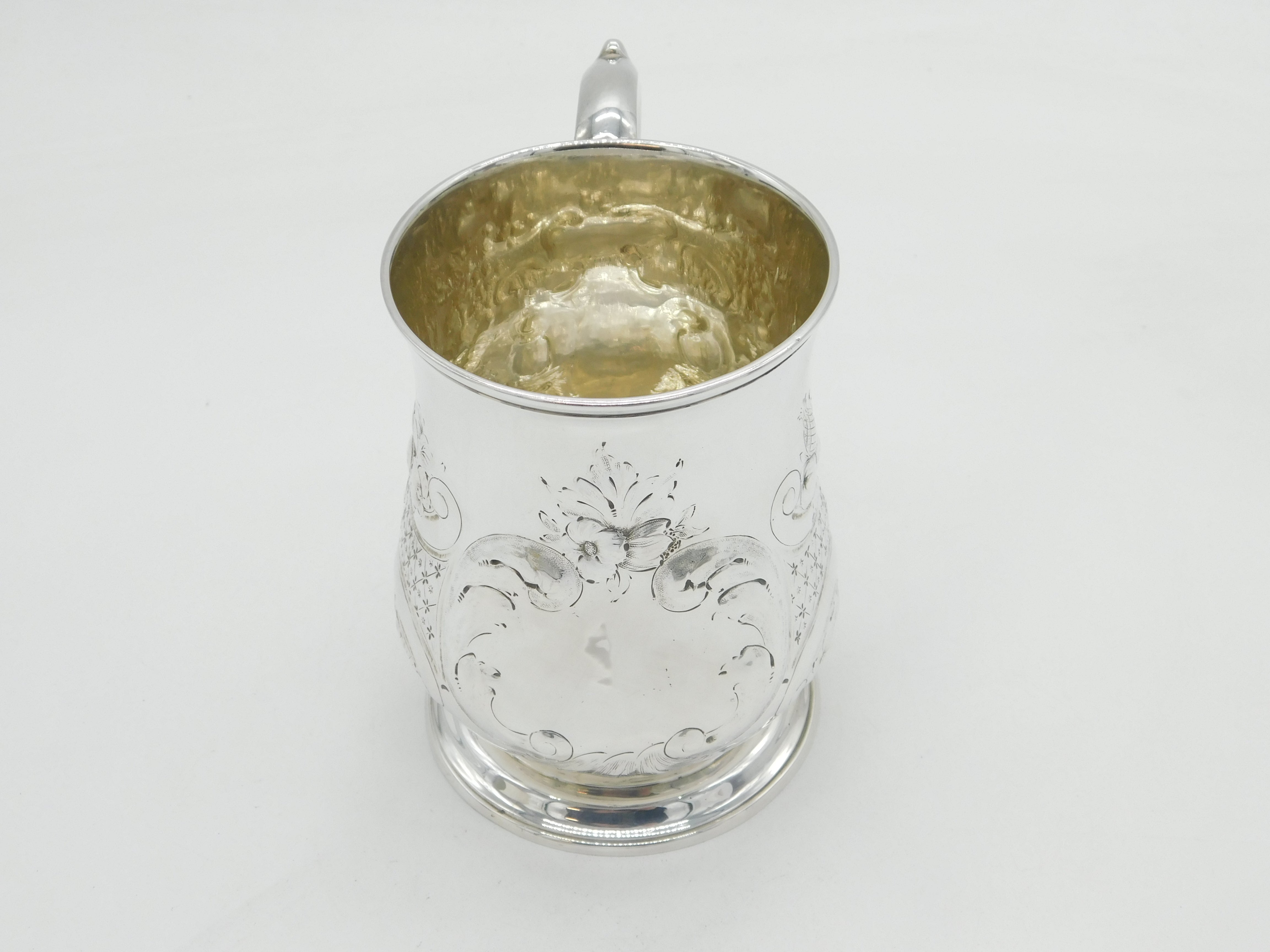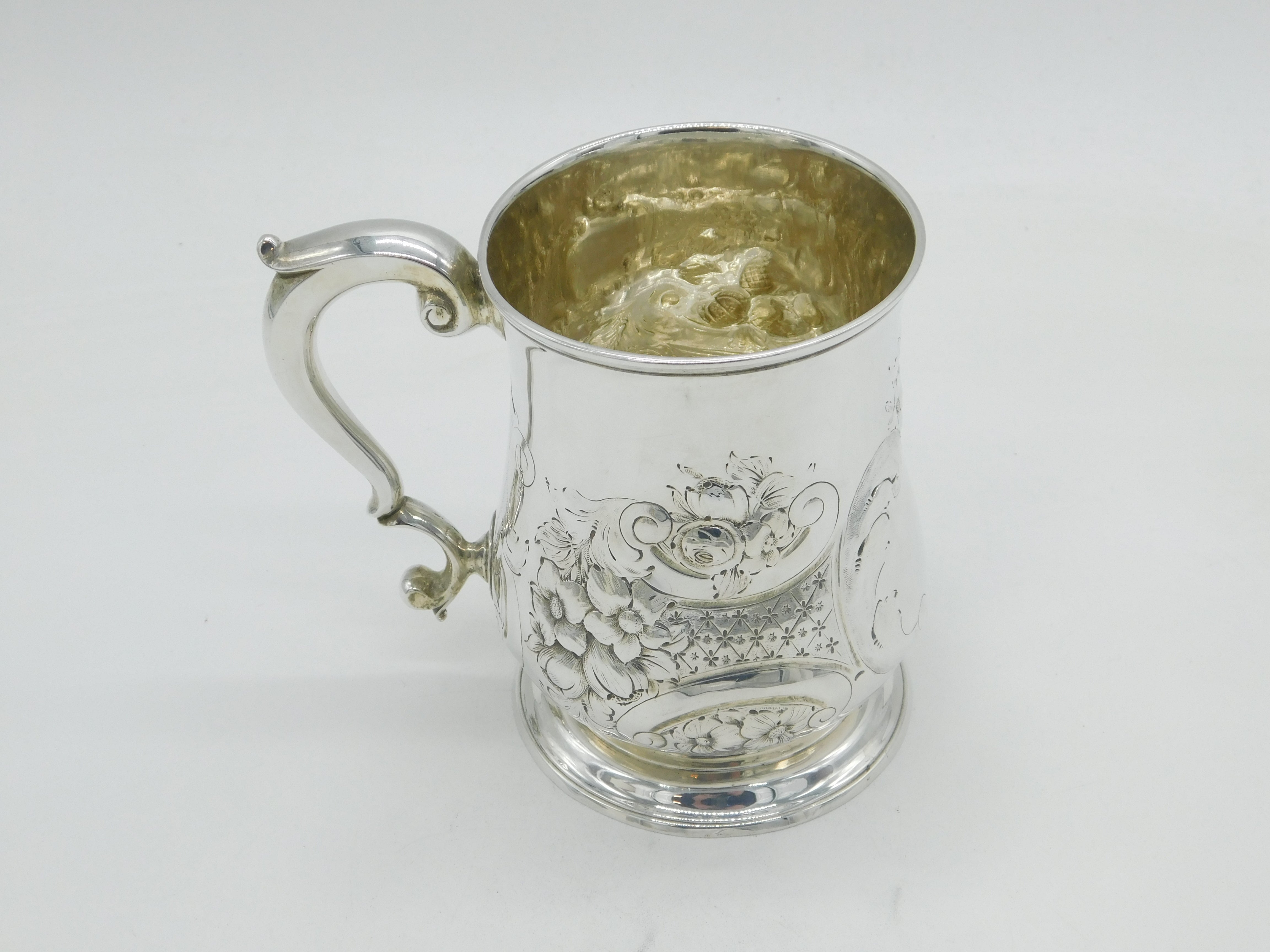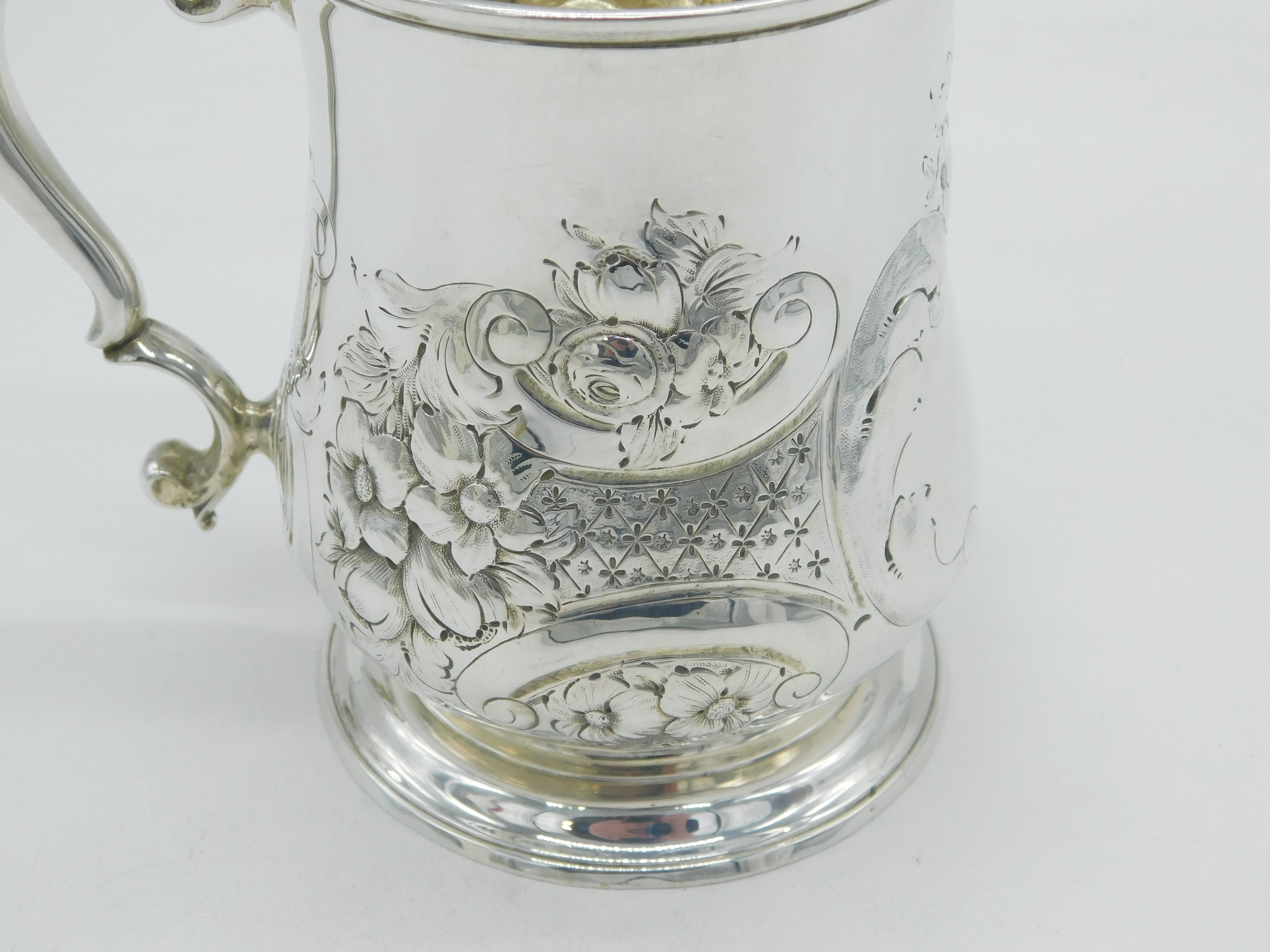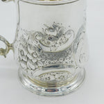 George II Sterling Silver Floral Embossed Pint Tankard Antique 1741 London