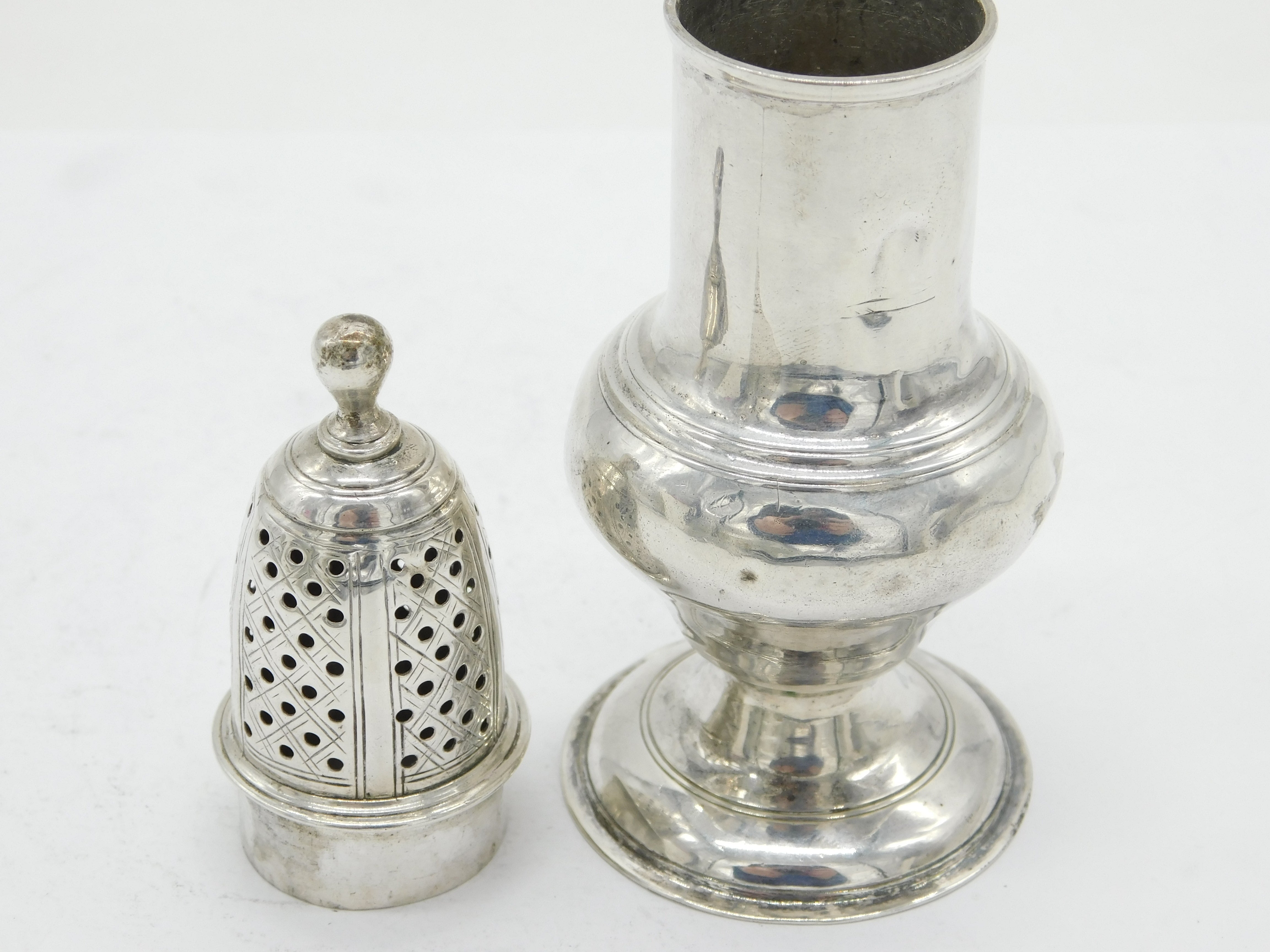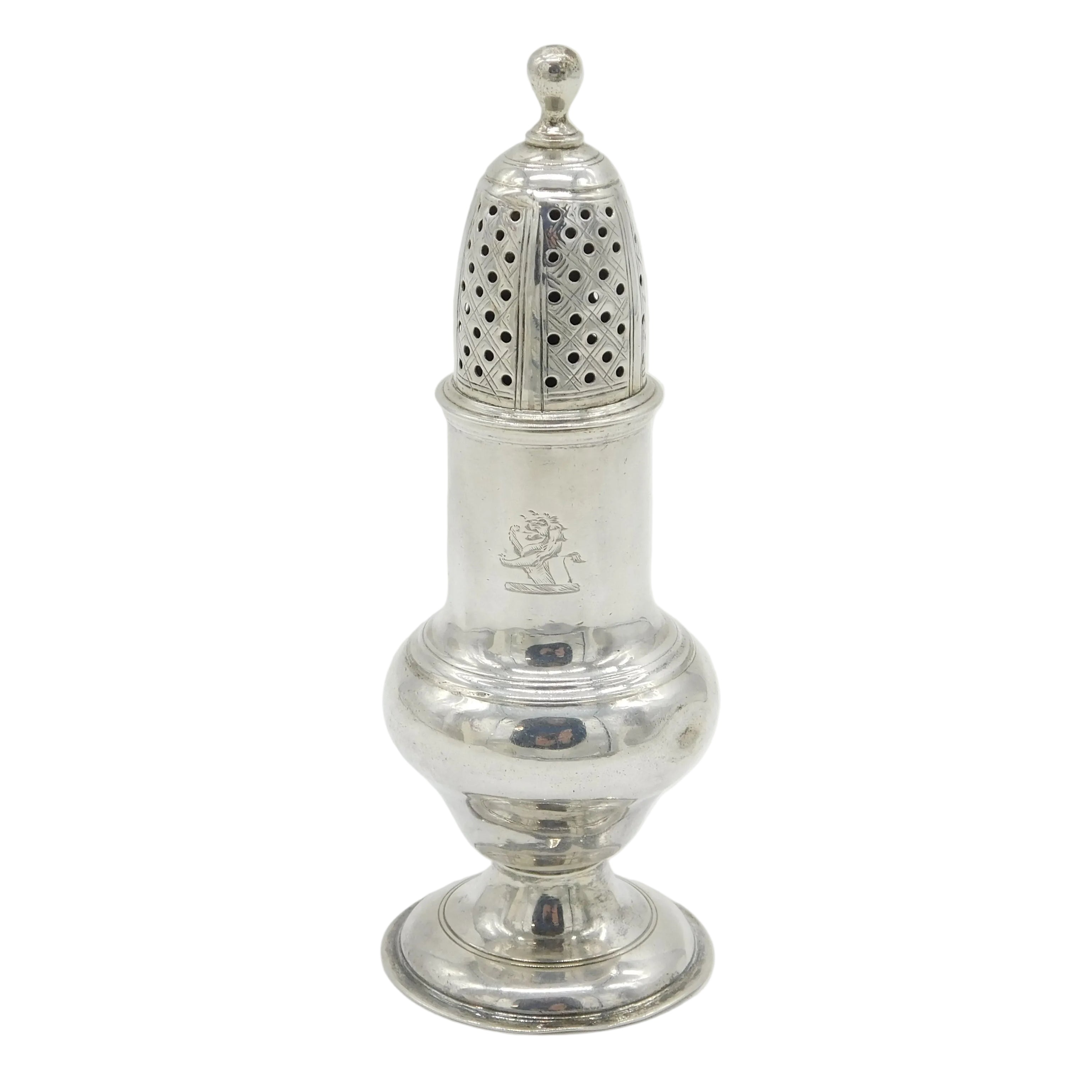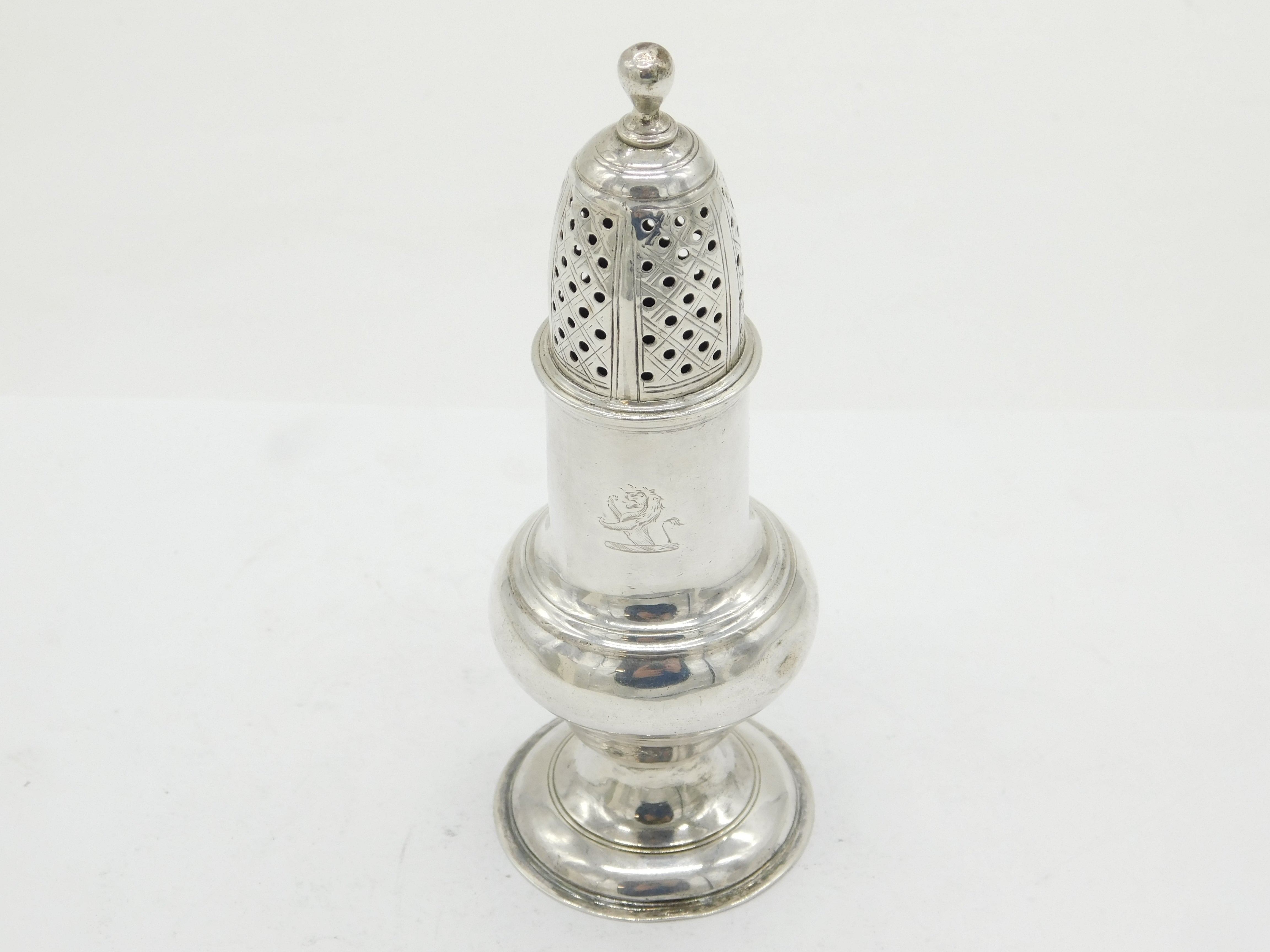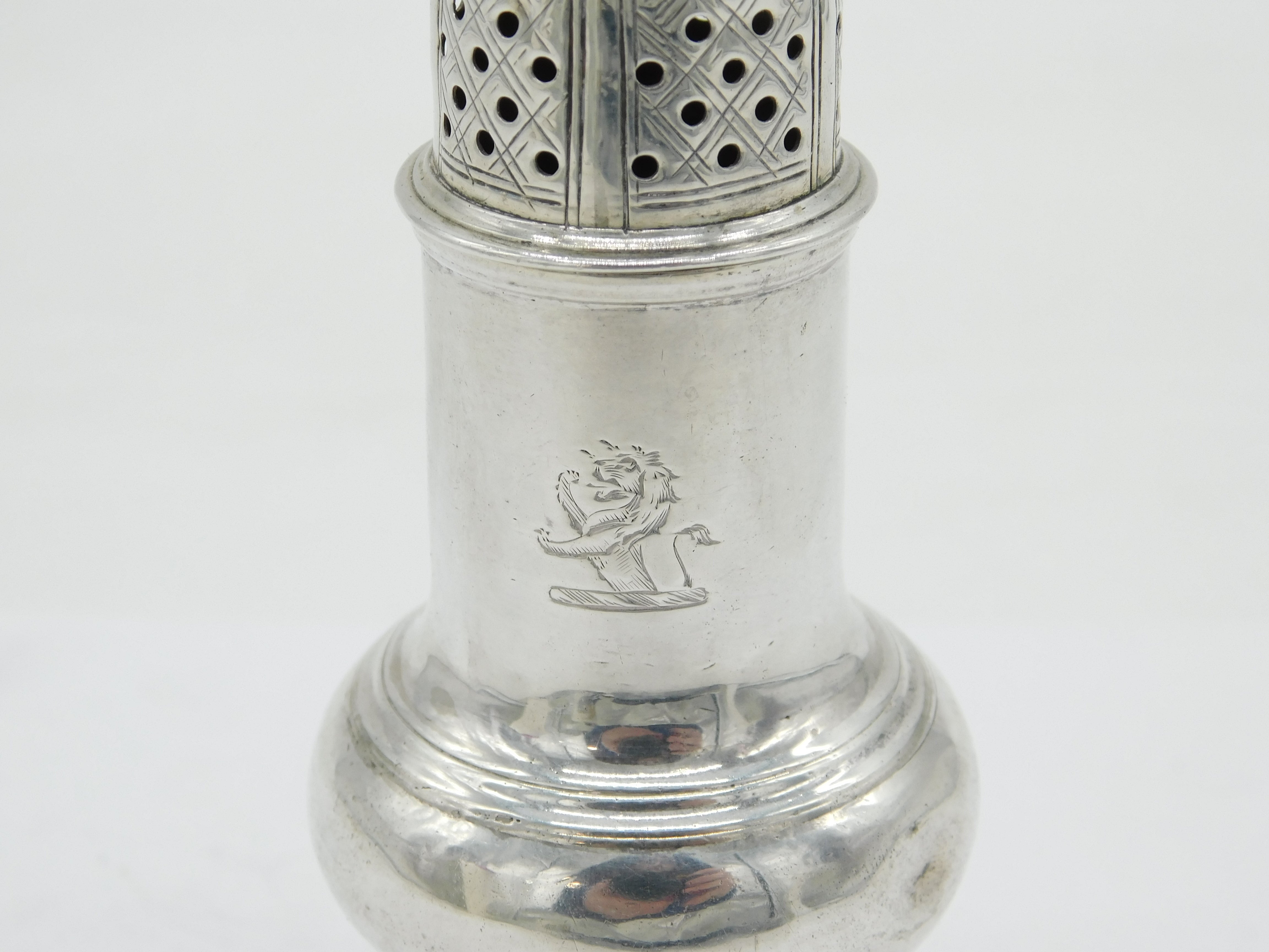 George II Sterling Silver Lion Crest Muffineer Sugar Caster Antique 1750 London