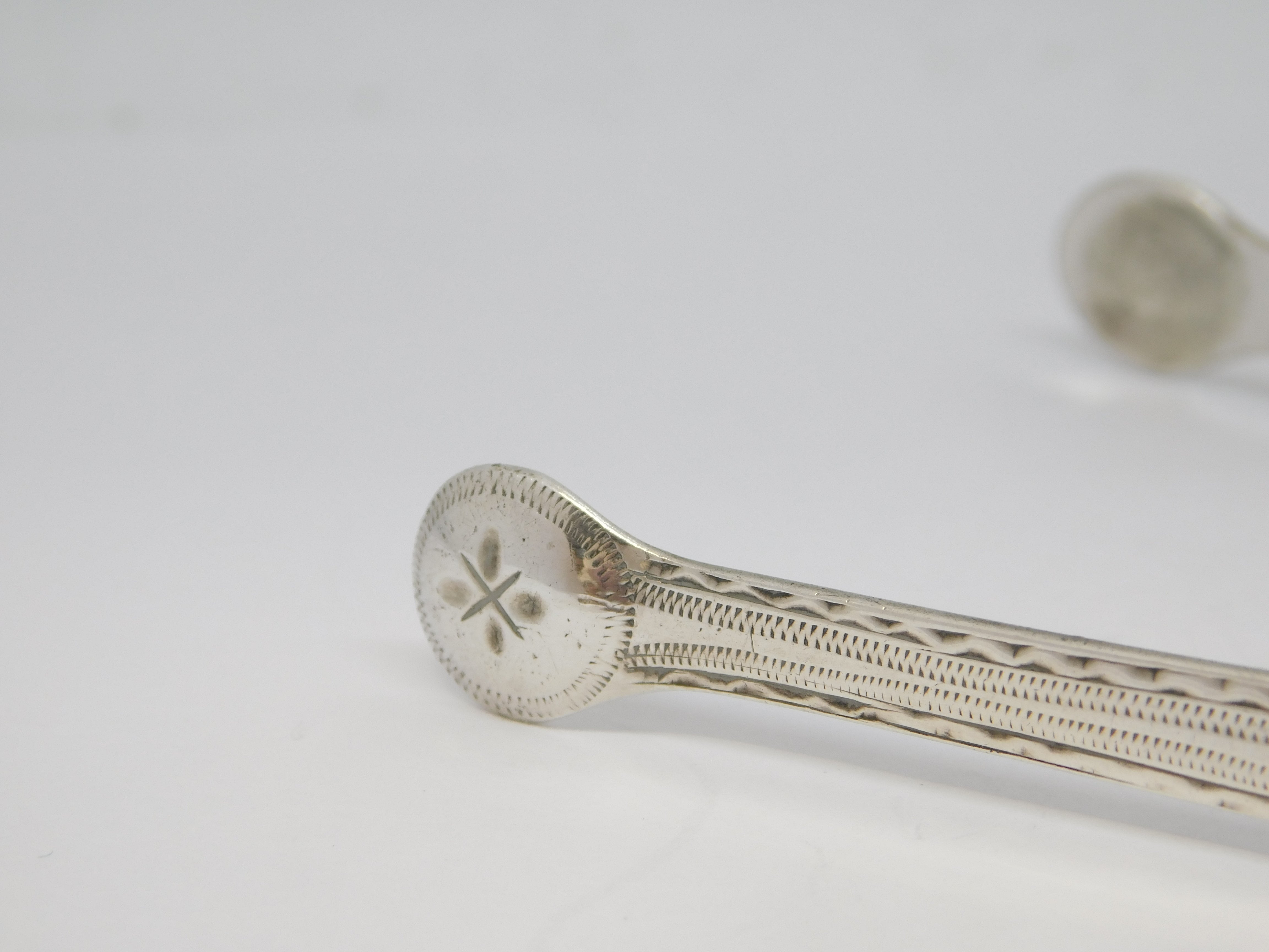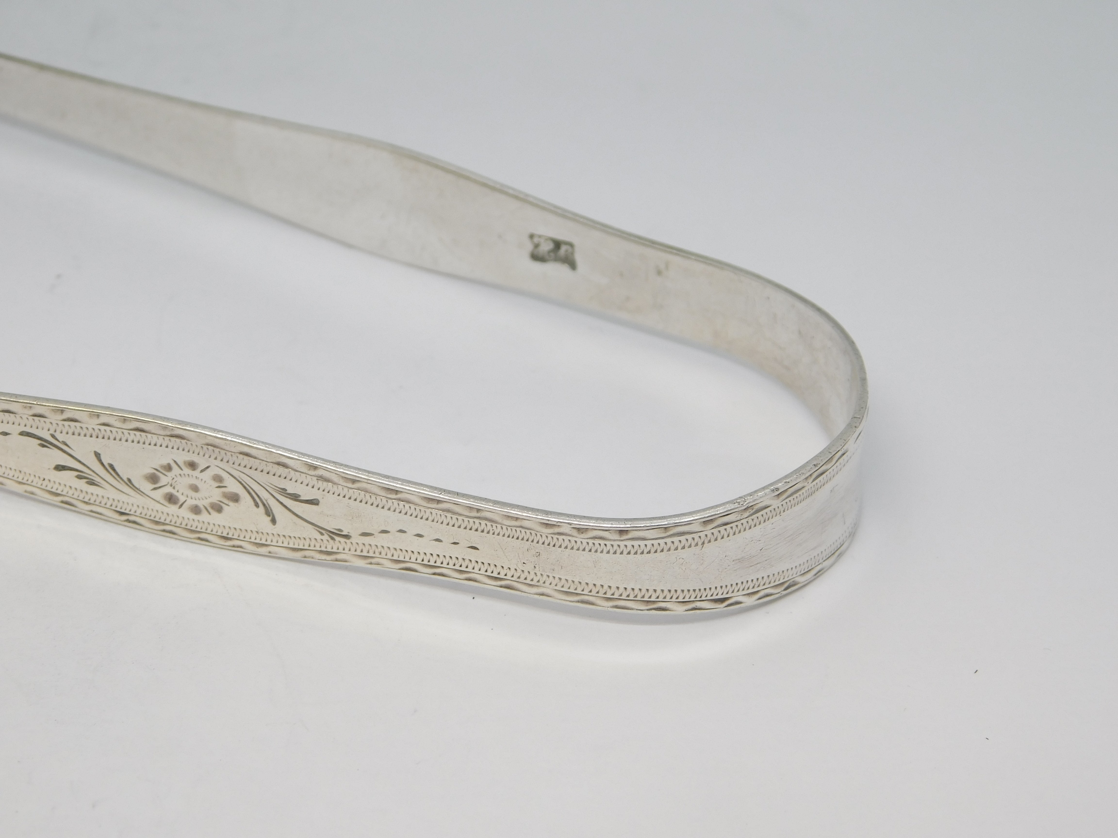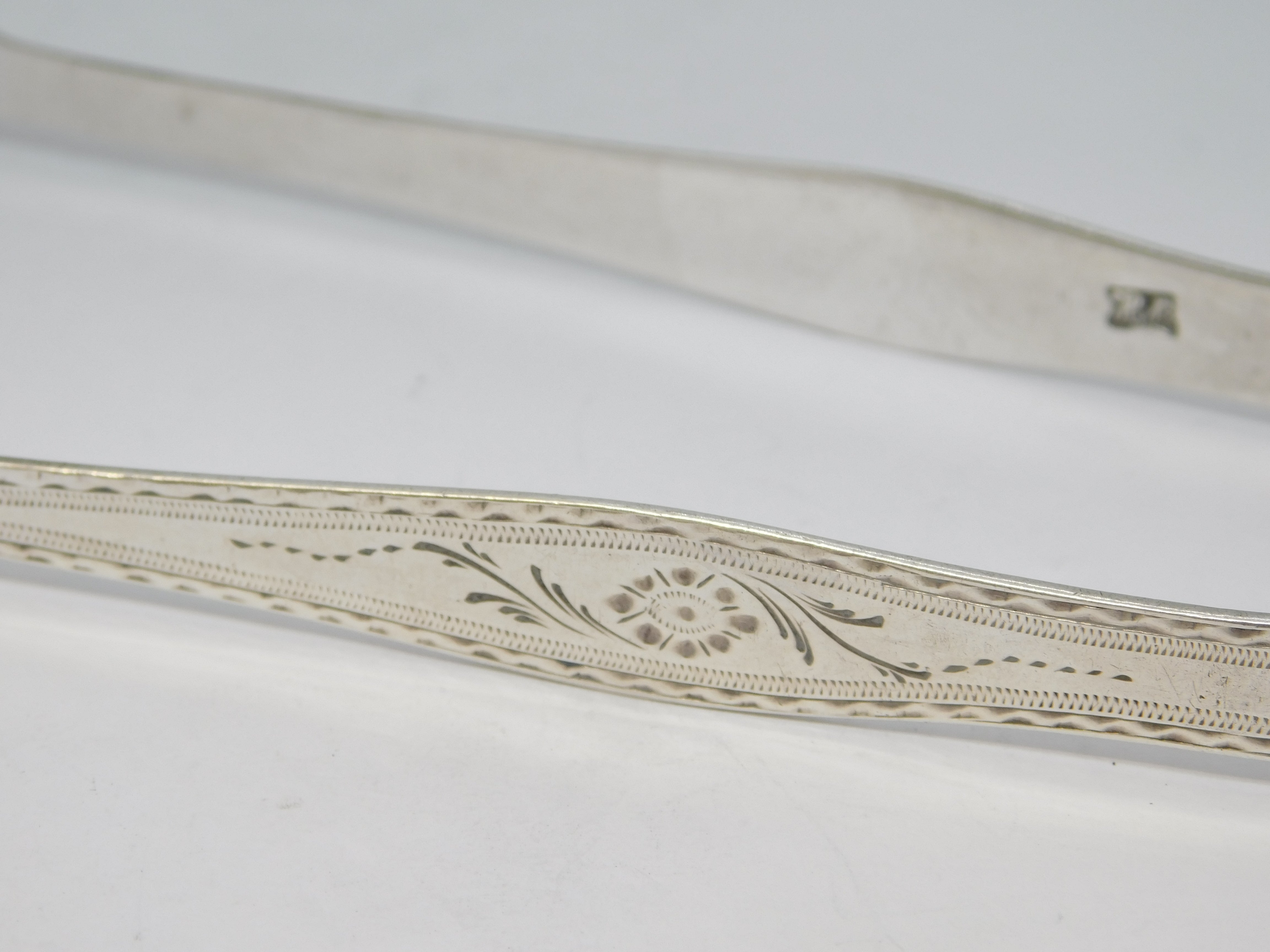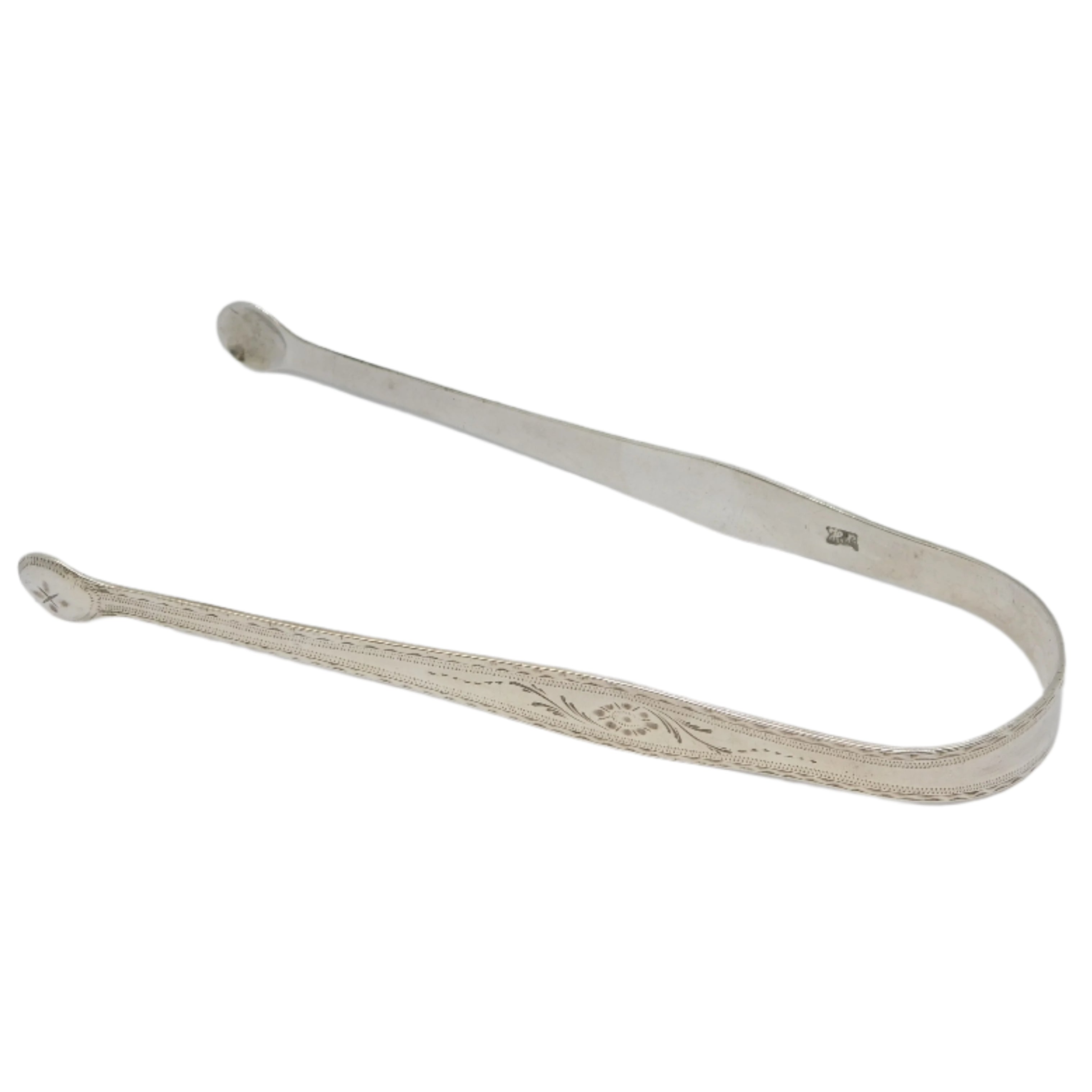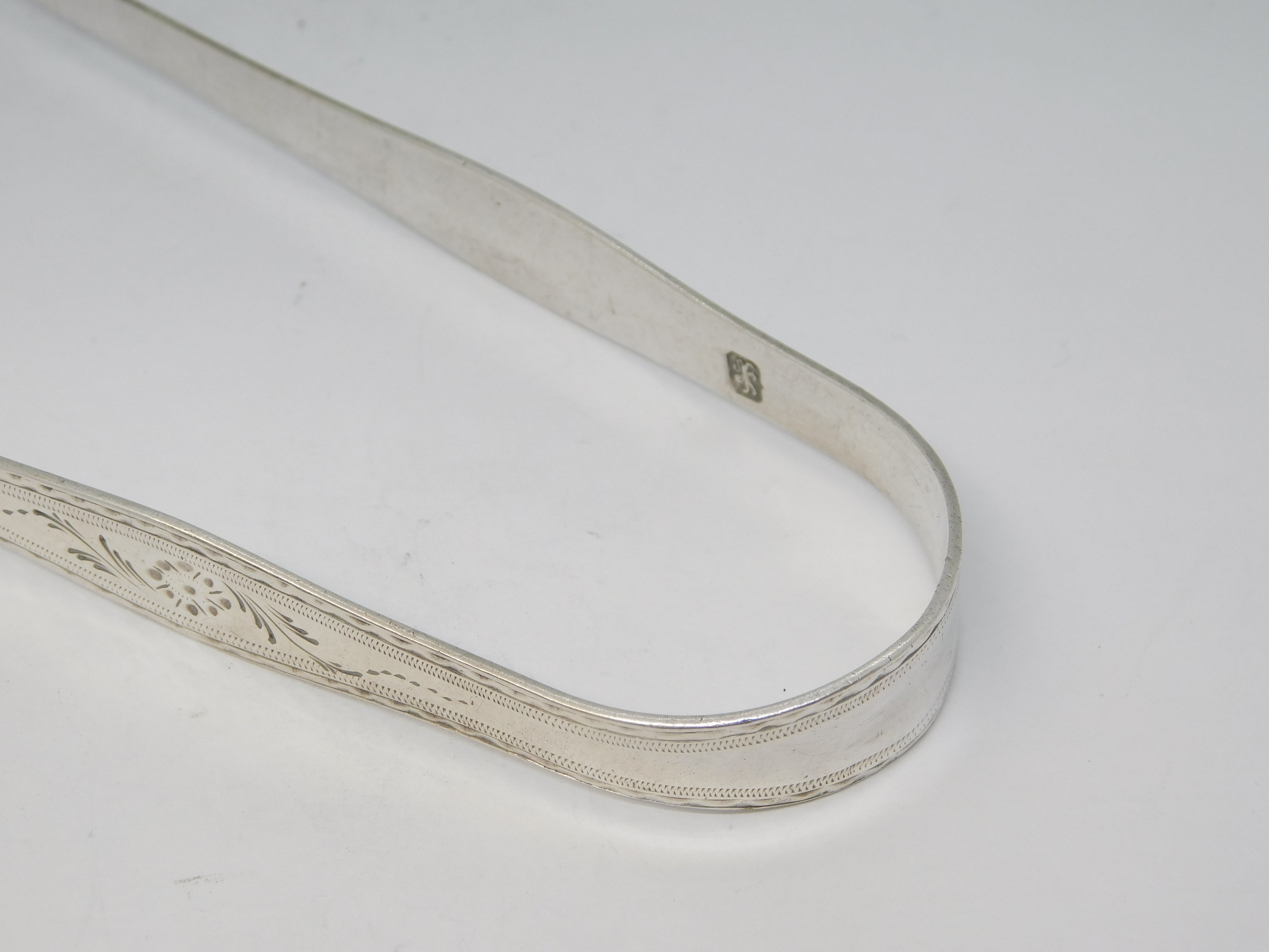 George III Hester Bateman Sterling Silver Bright Cut Sugar Tongs Antique c1770