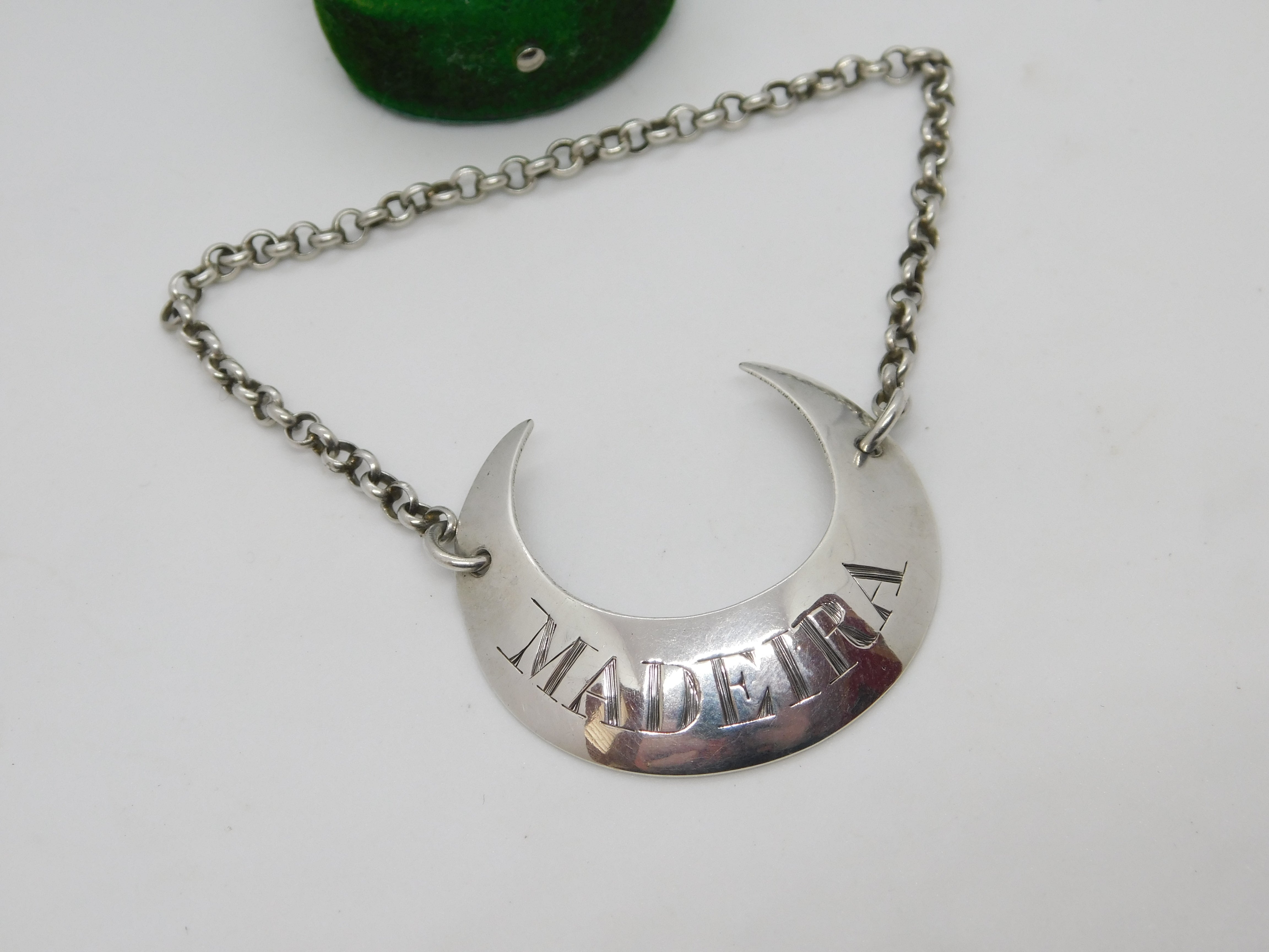 Details: A fantastic and wonderfully designed antique georgian sterling silver crescent shaped bright cut madeira decanter label with lovely detailing hallmarked to the reverse London c1770 by Hester Bateman. This is a wonderful item that would make a perfect gift or addition to any collection. The BOX pictured is for PRESENTATION ONLY and is NOT included in the listings but used to frame the pictures unless specifically stated otherwise.
