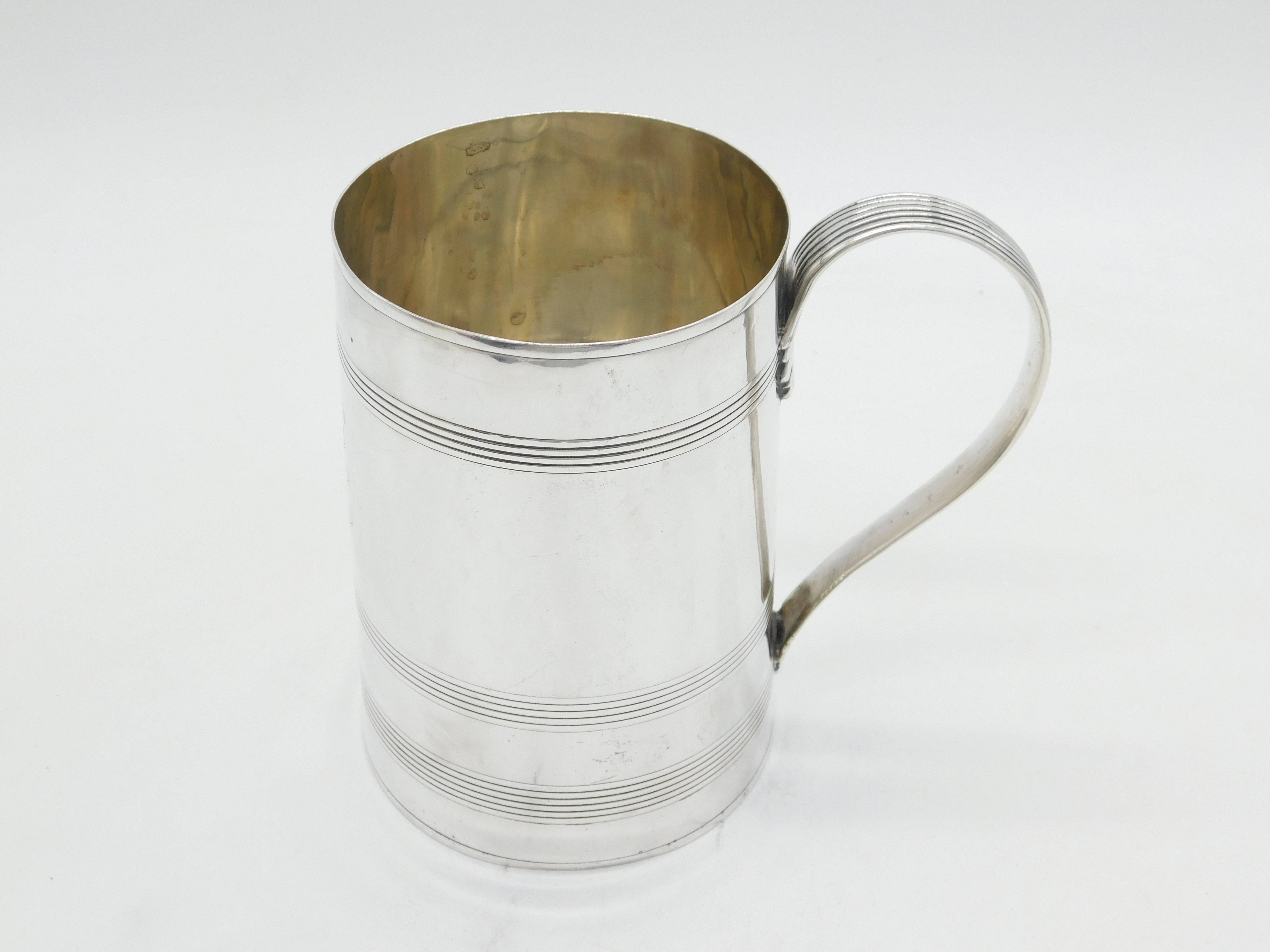 George III Large Sterling Silver Lined Pattern Quart Tankard Antique 1795 London