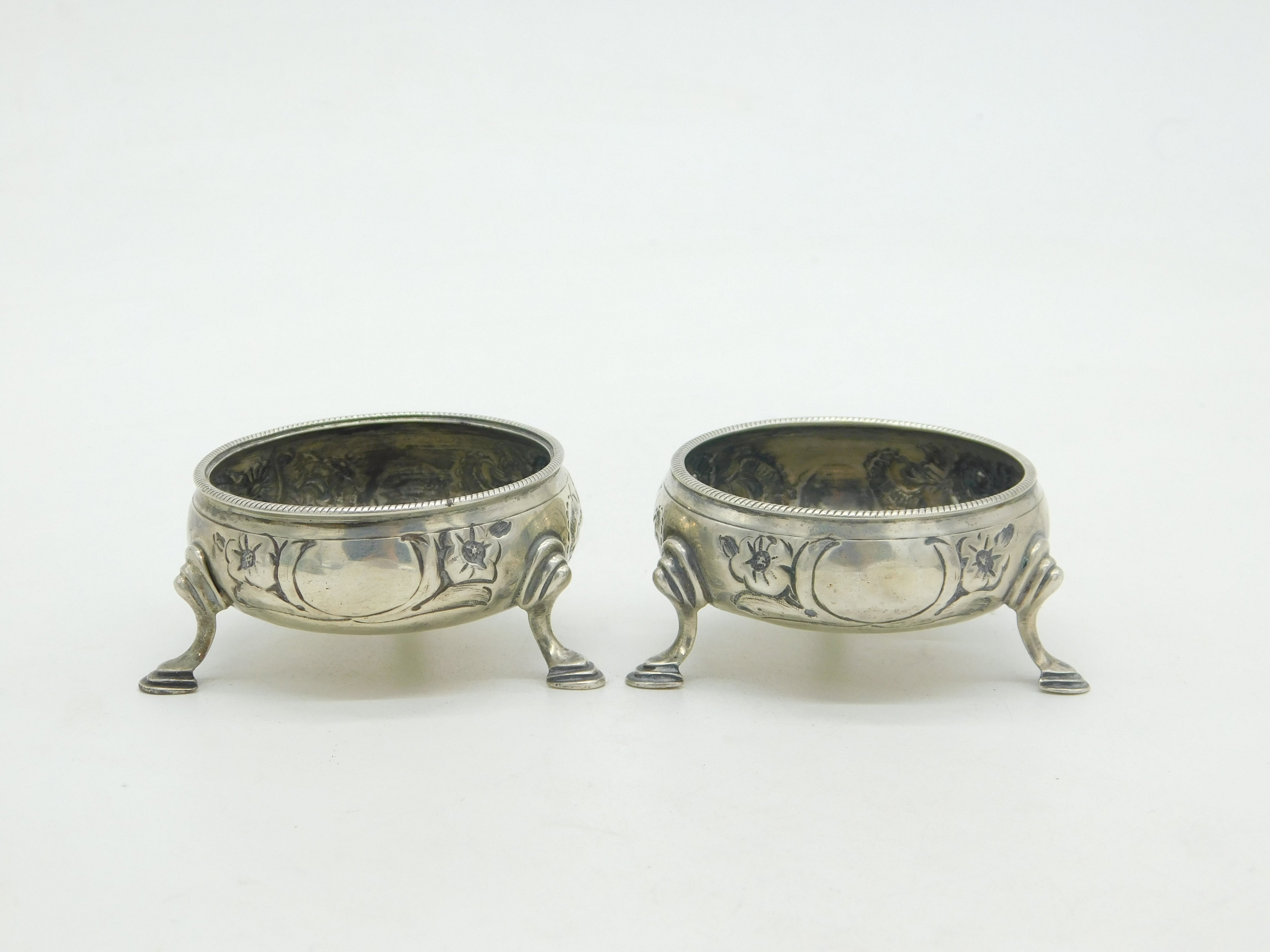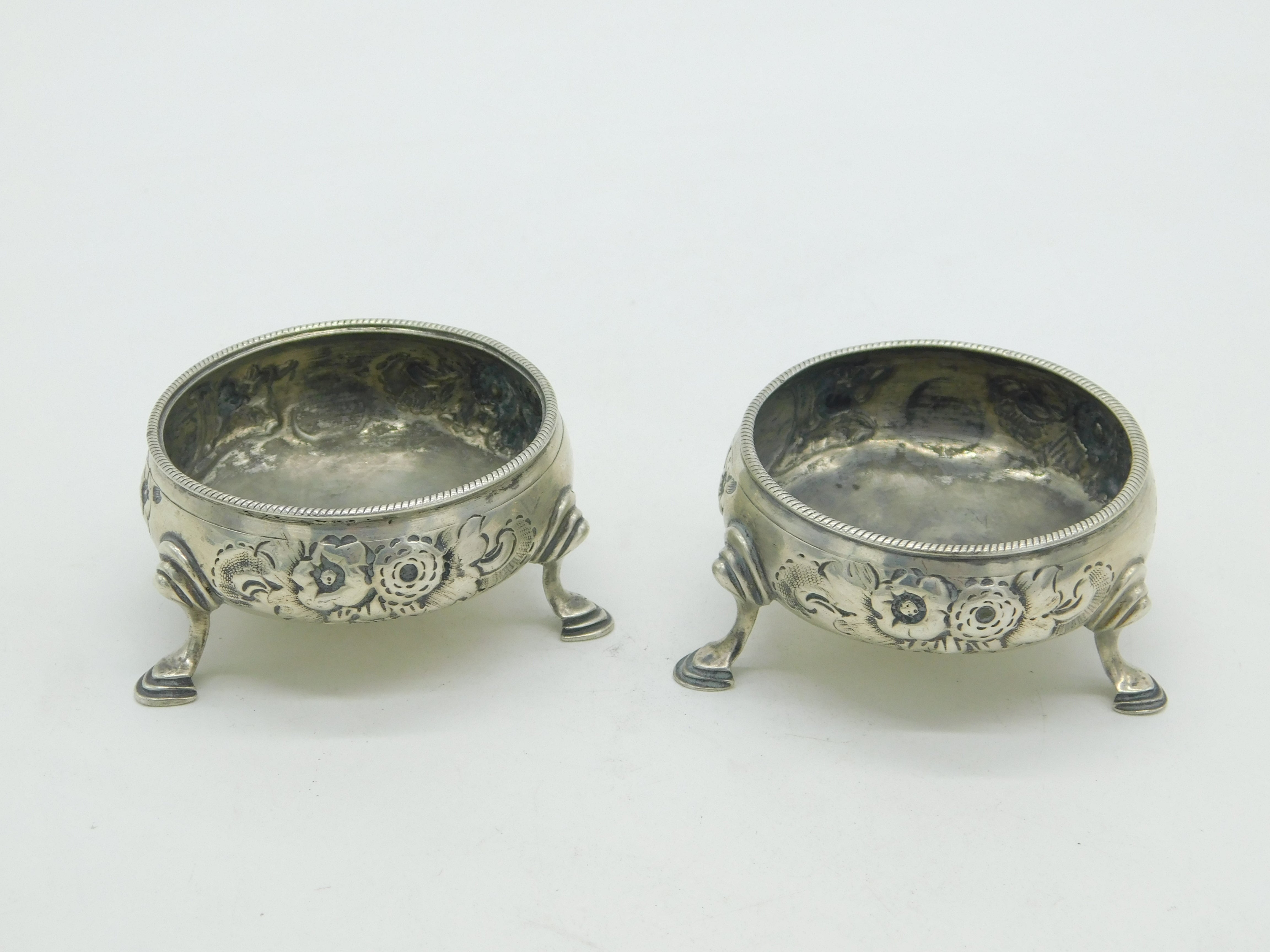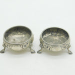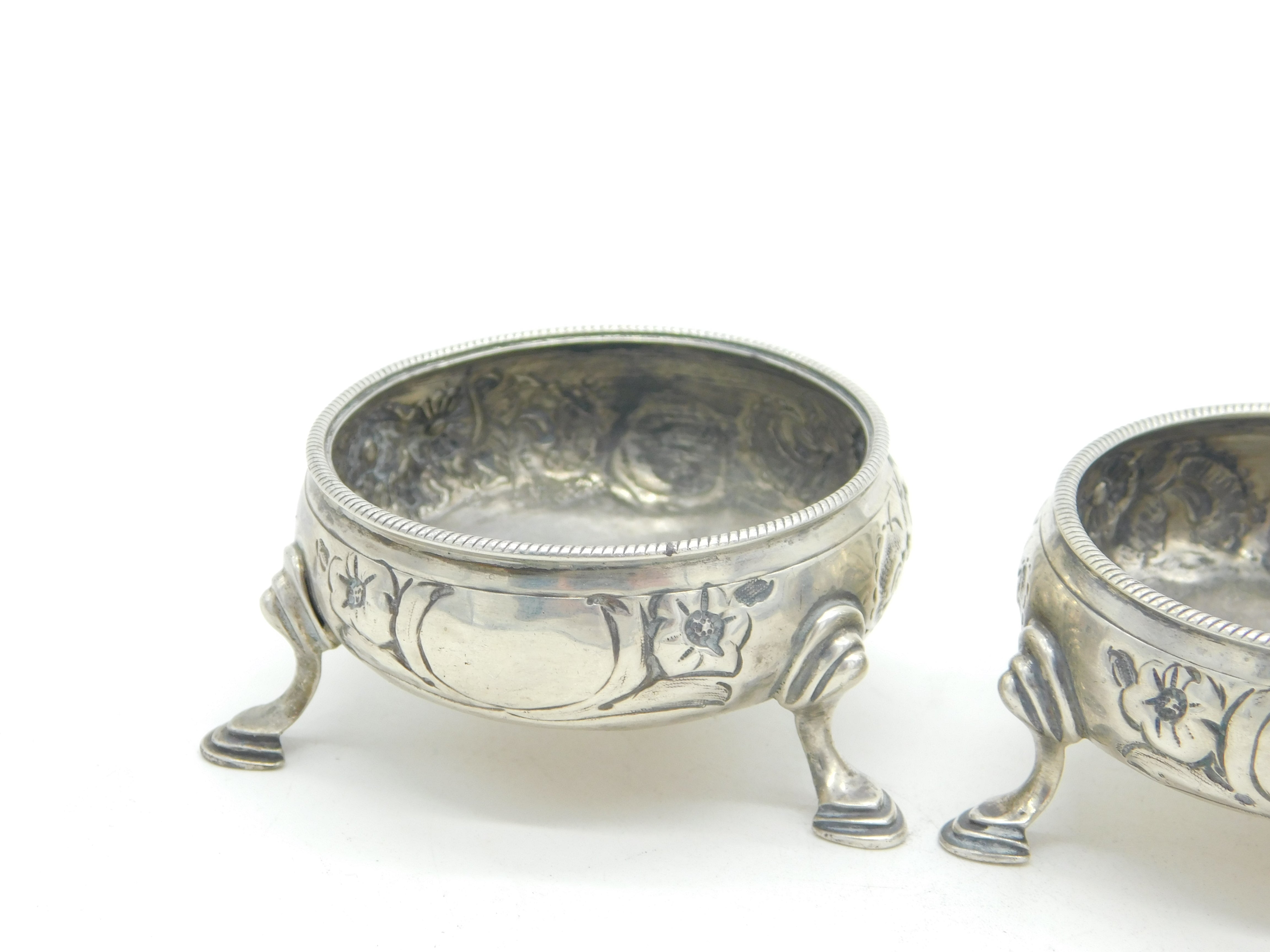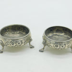 George III Pair of Sterling Silver Floral Pattern Salt Cellars Antique 1775 London