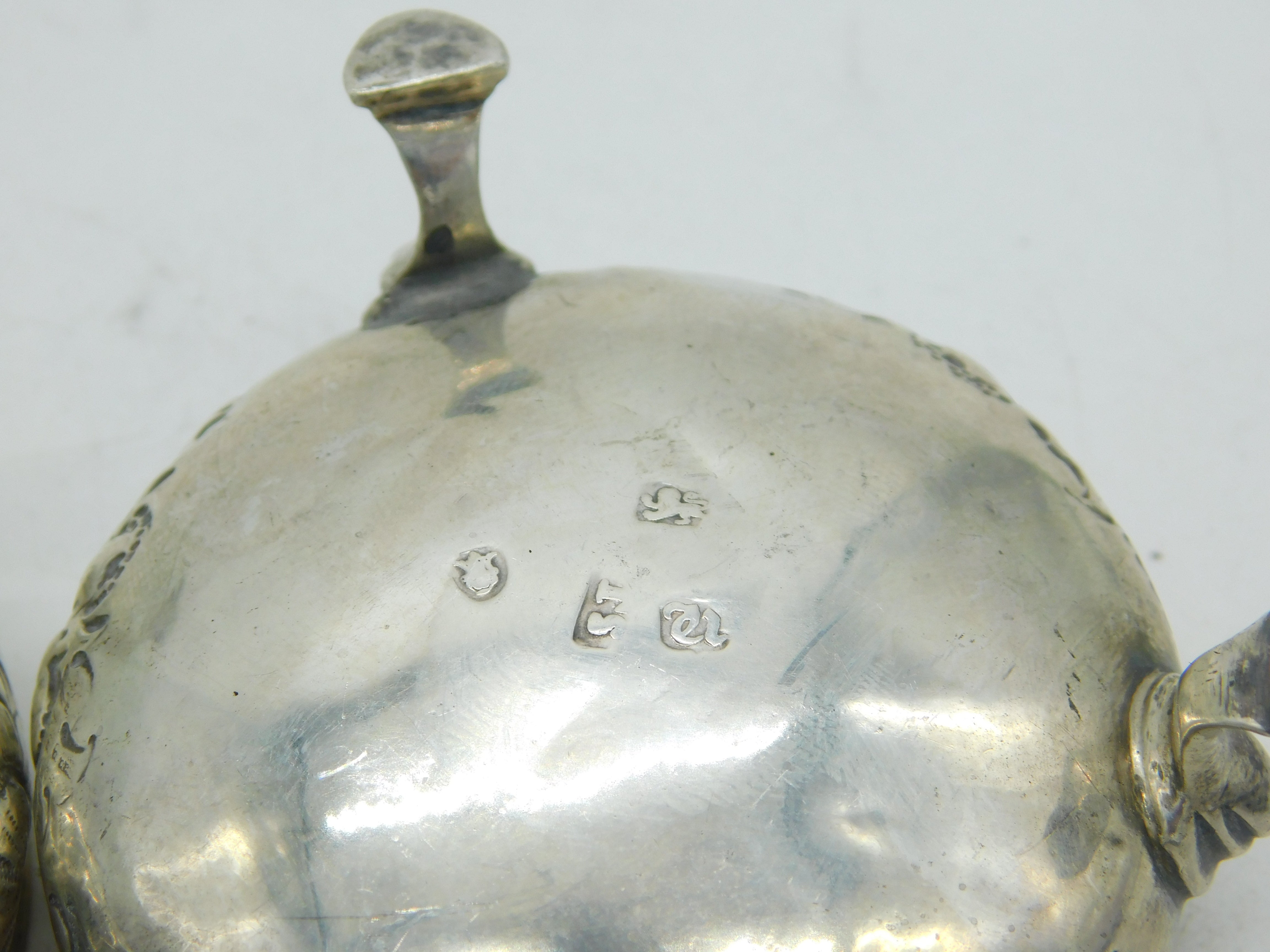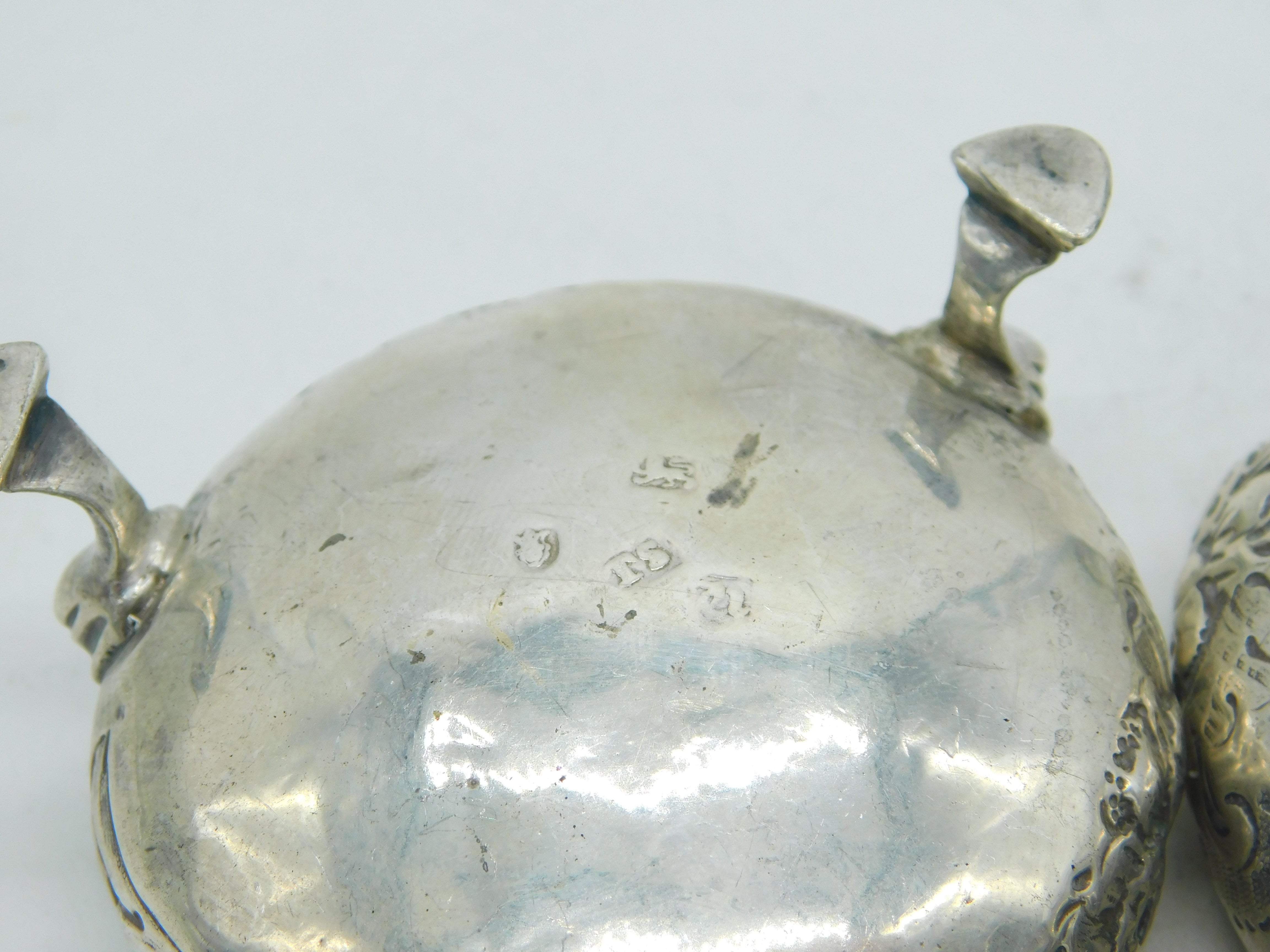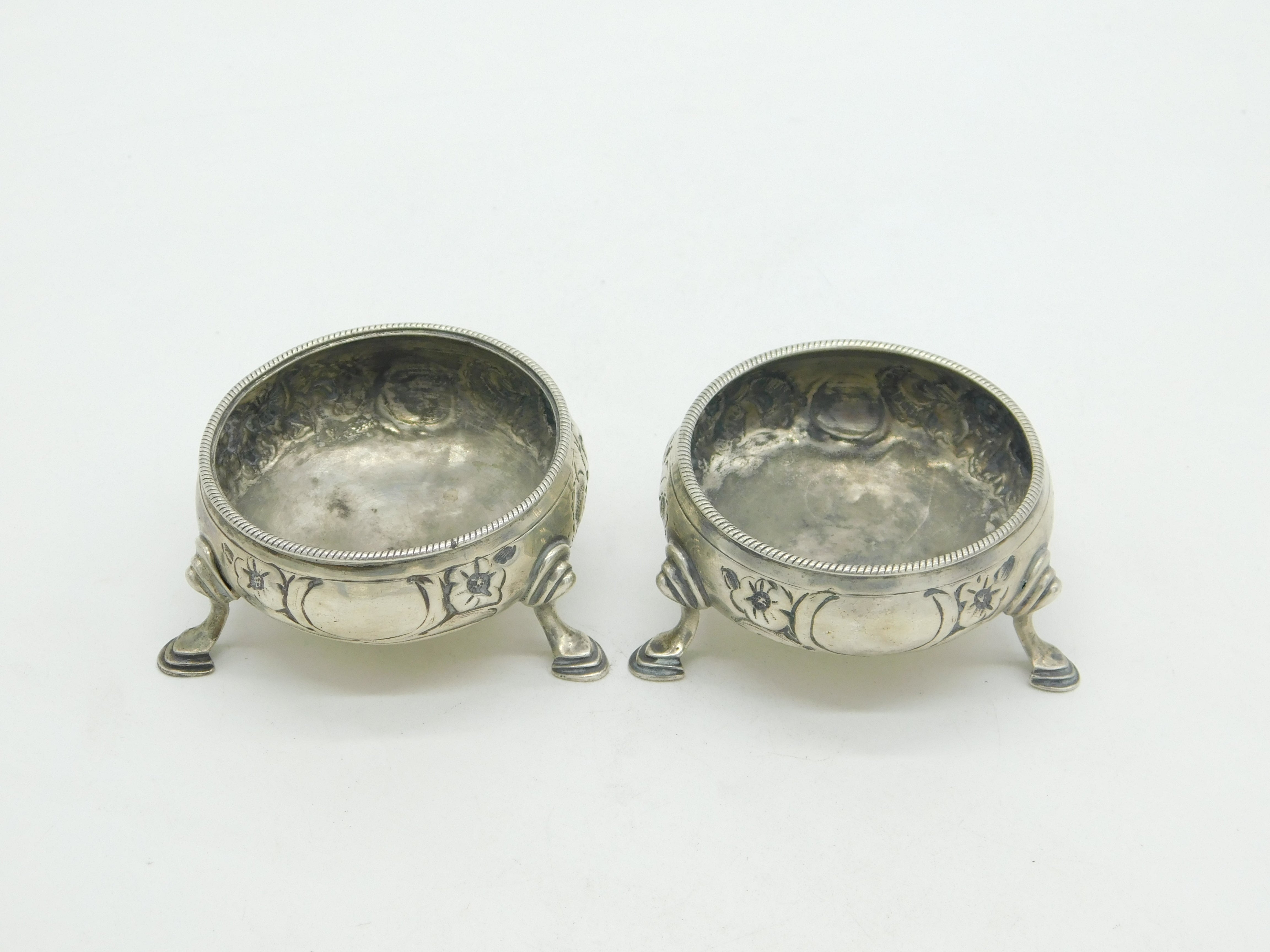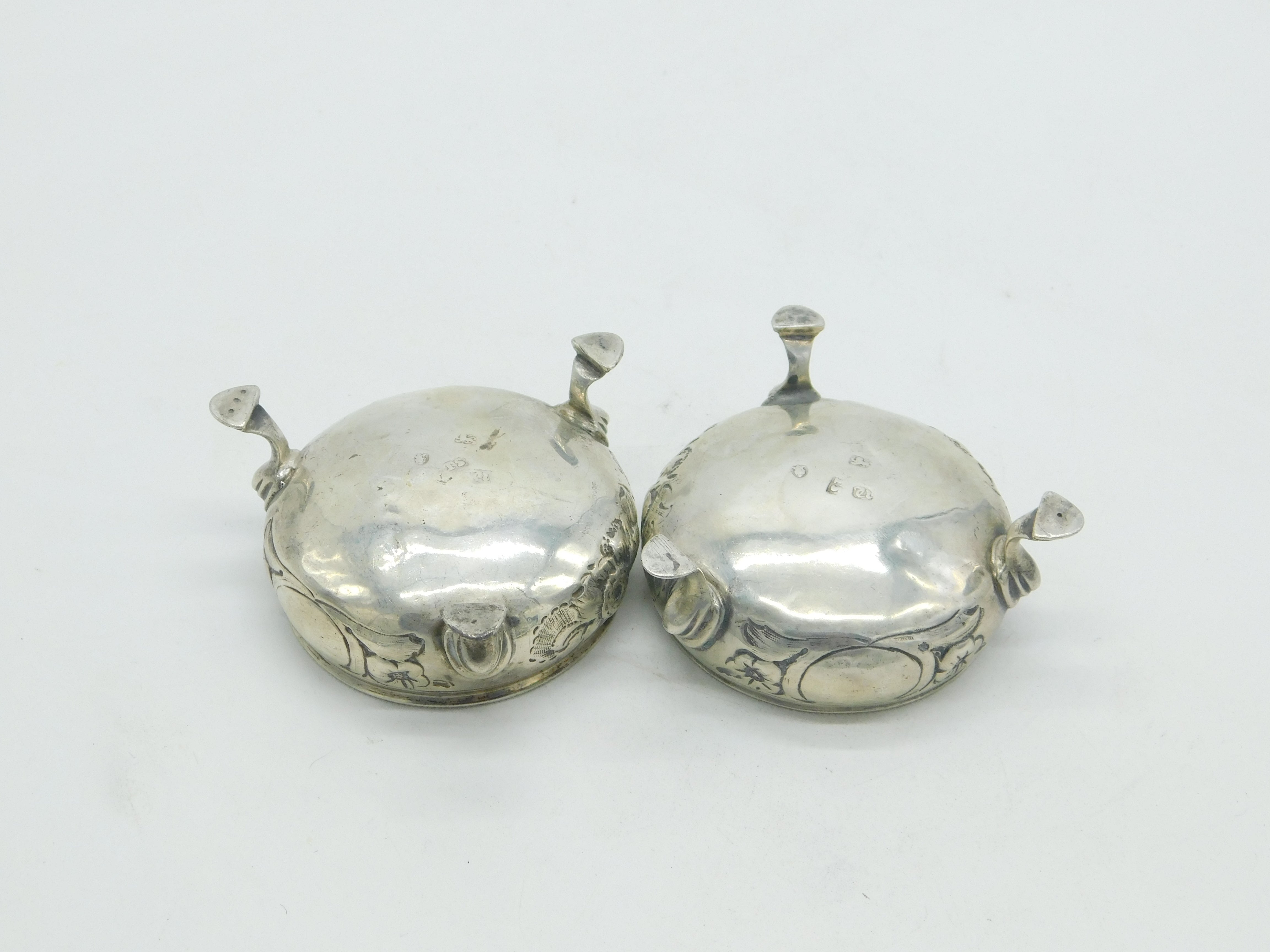 George III Pair of Sterling Silver Floral Pattern Salt Cellars Antique 1775 London