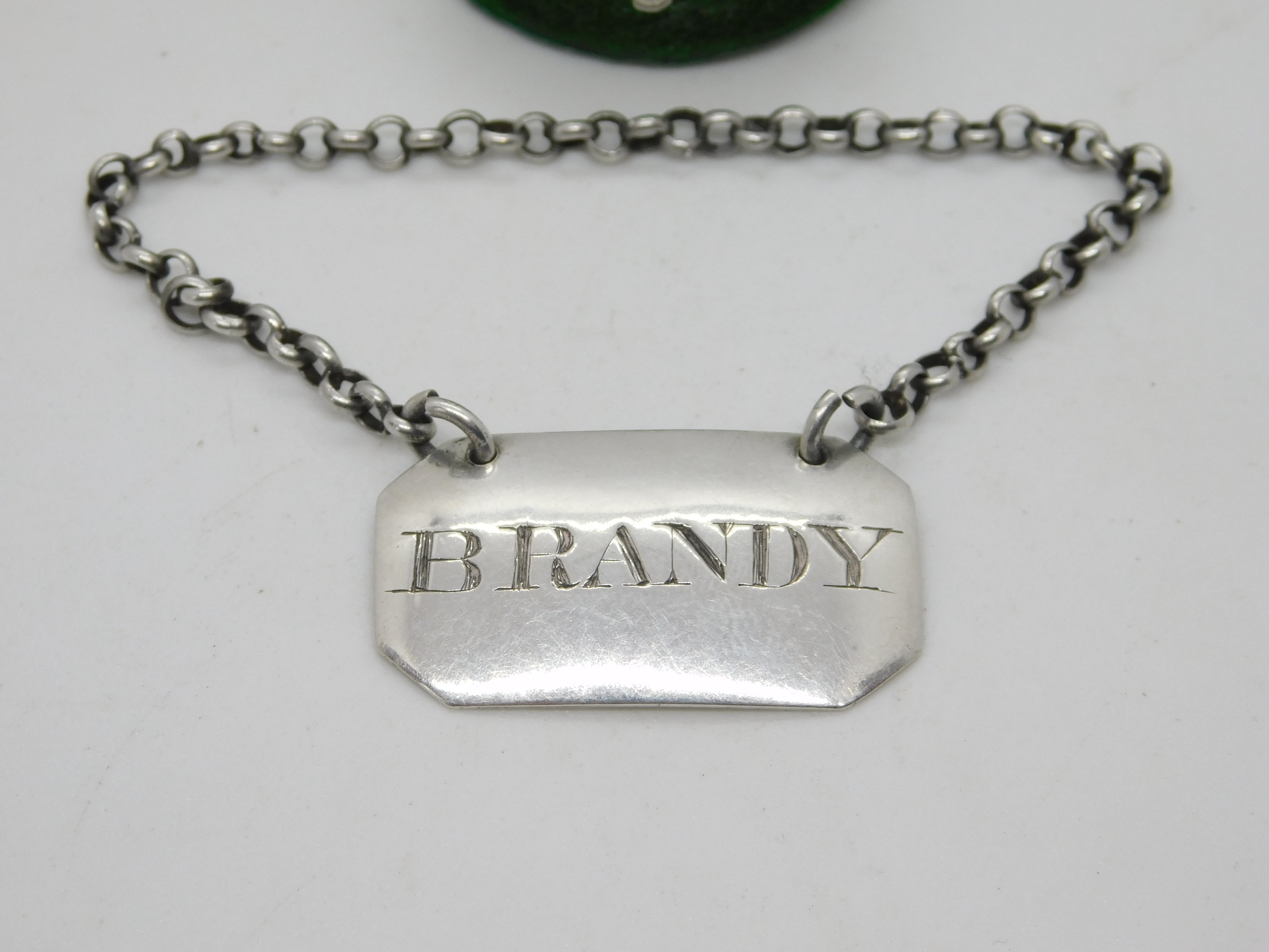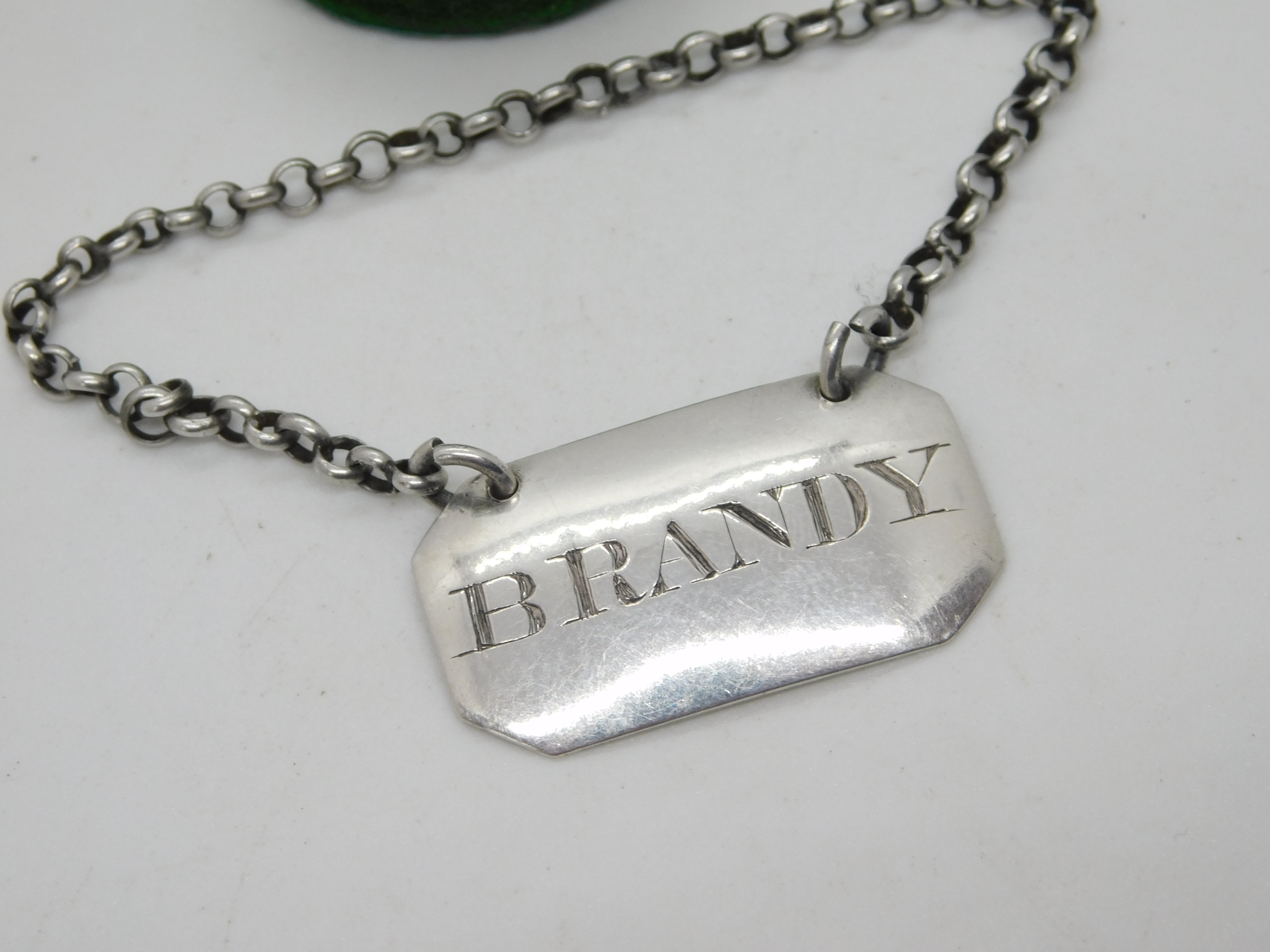 George III Scottish Sterling Silver Brandy Decanter Label Antique 1815 Edinburgh