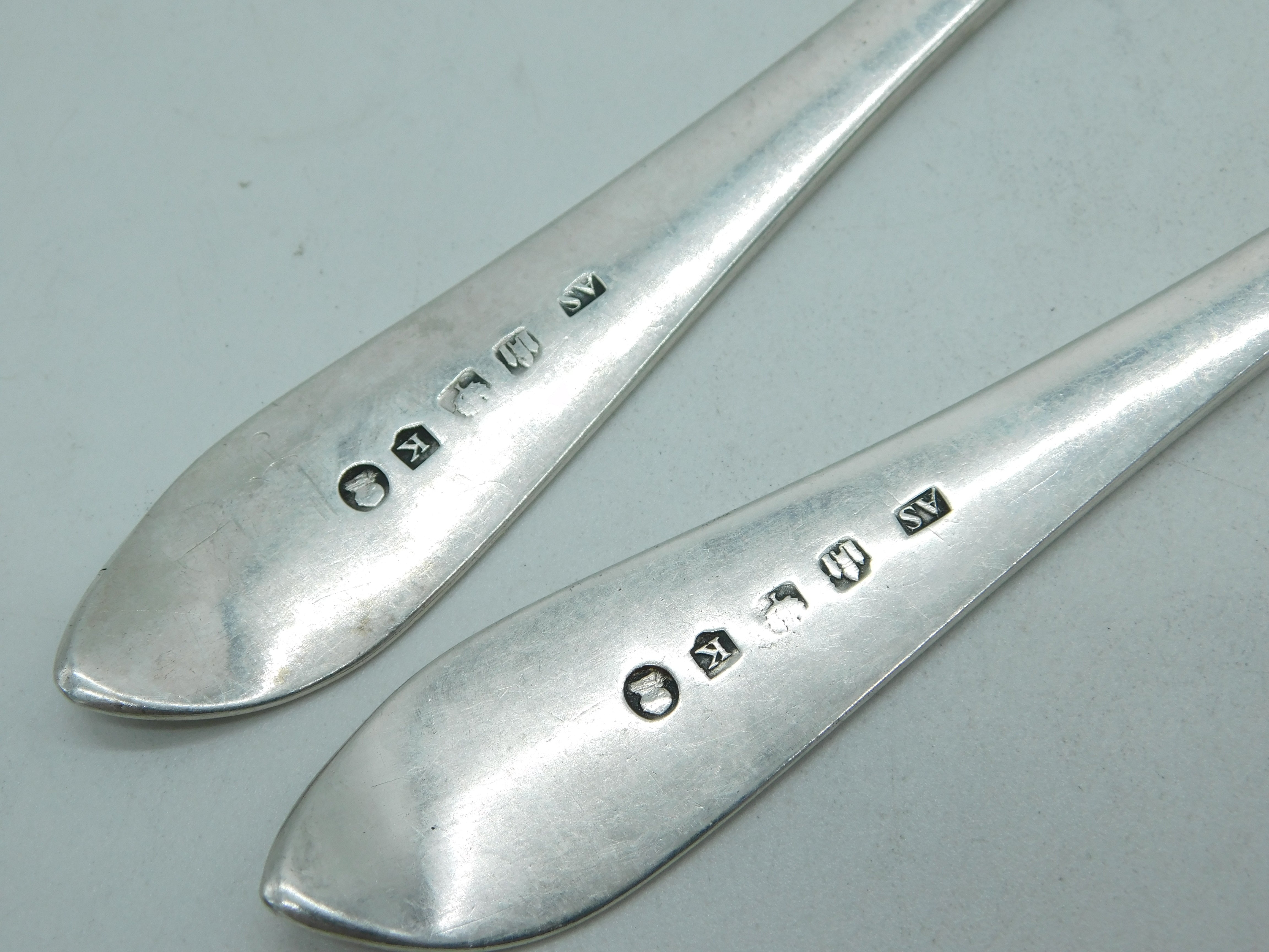 George III Scottish Sterling Silver Celtic Point Serving Spoon Pair Antique 1790