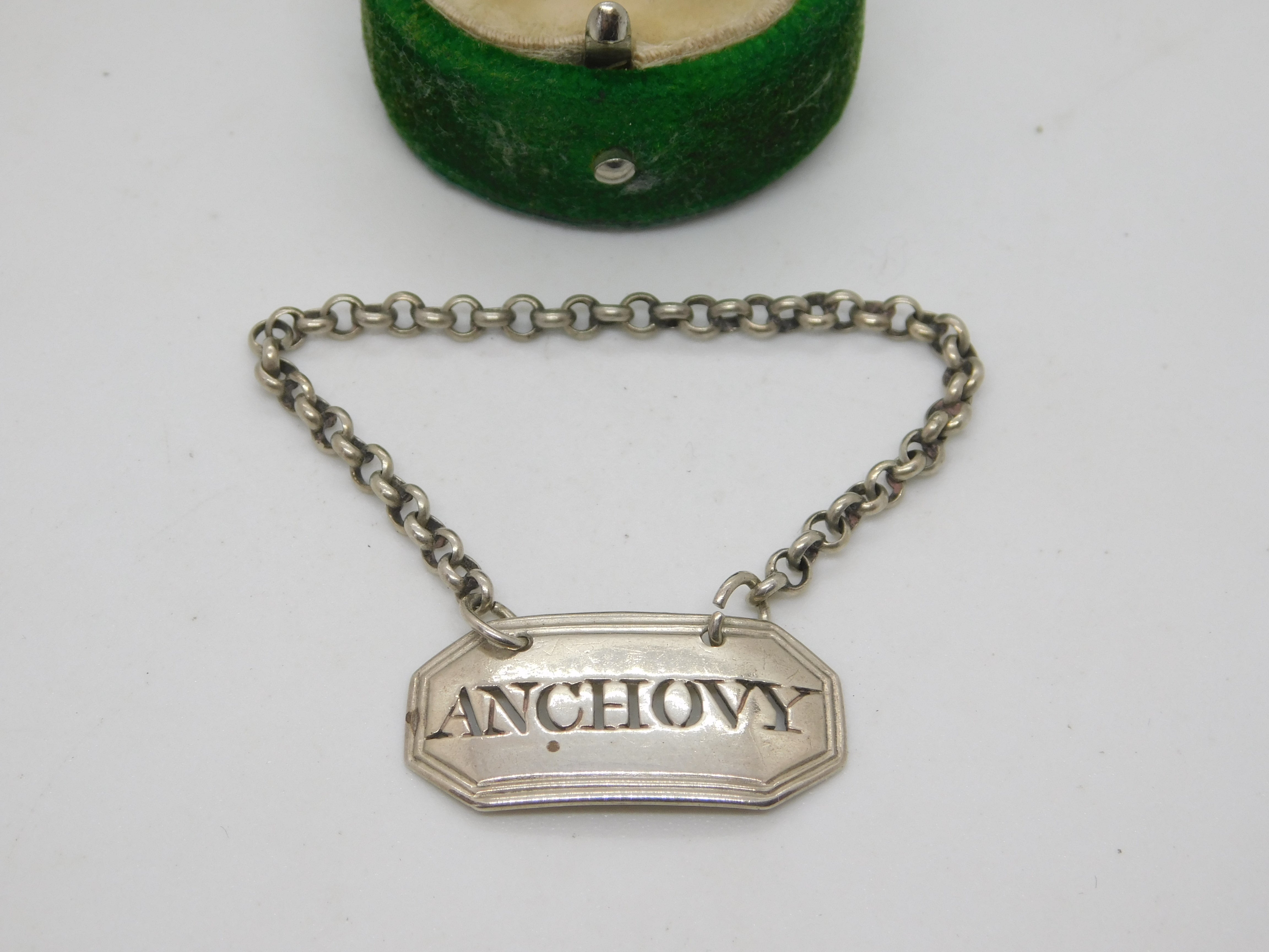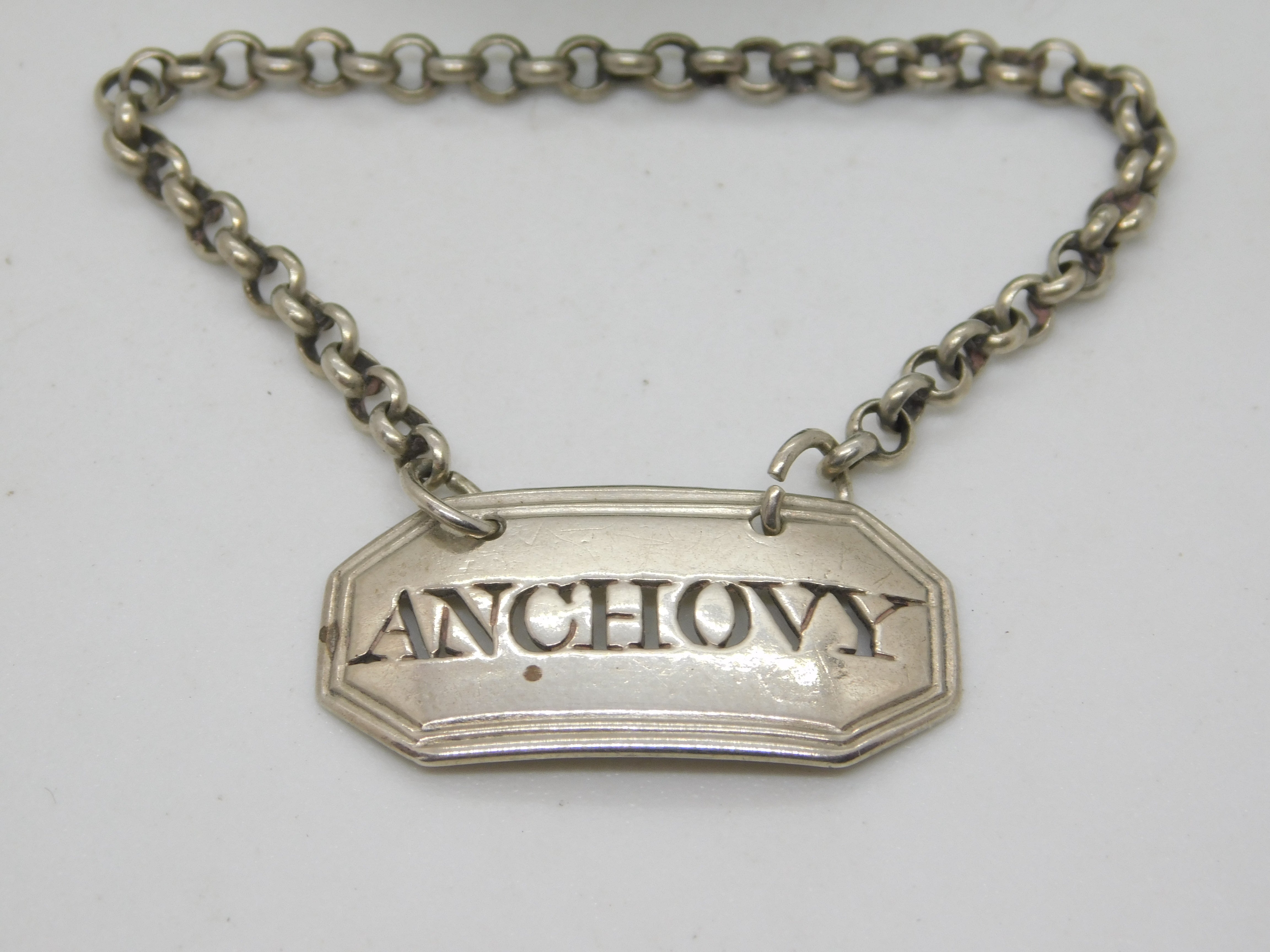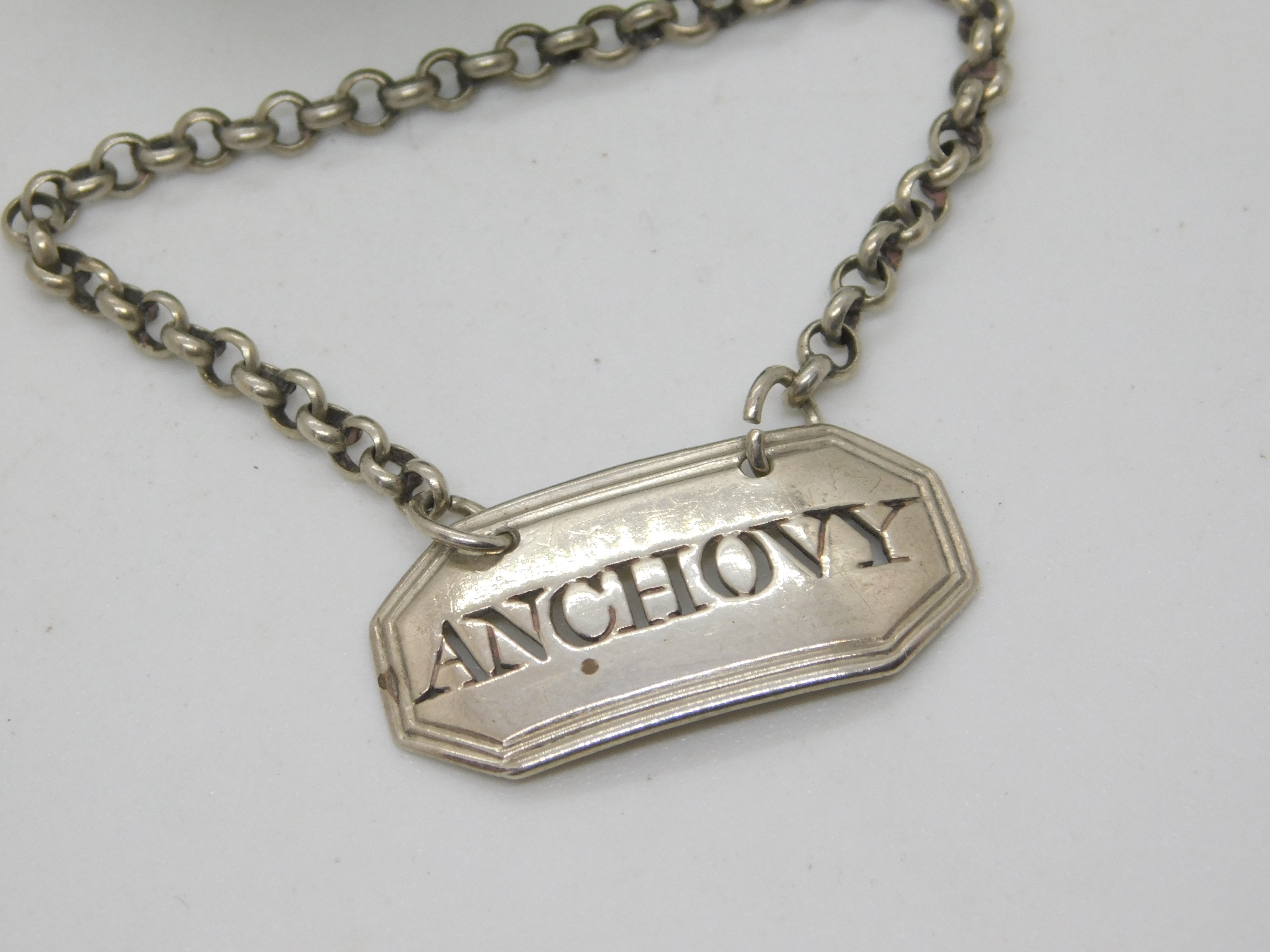 George III Sterling Silver 'Anchovy' Sauce Bottle Label Antique c1790 London