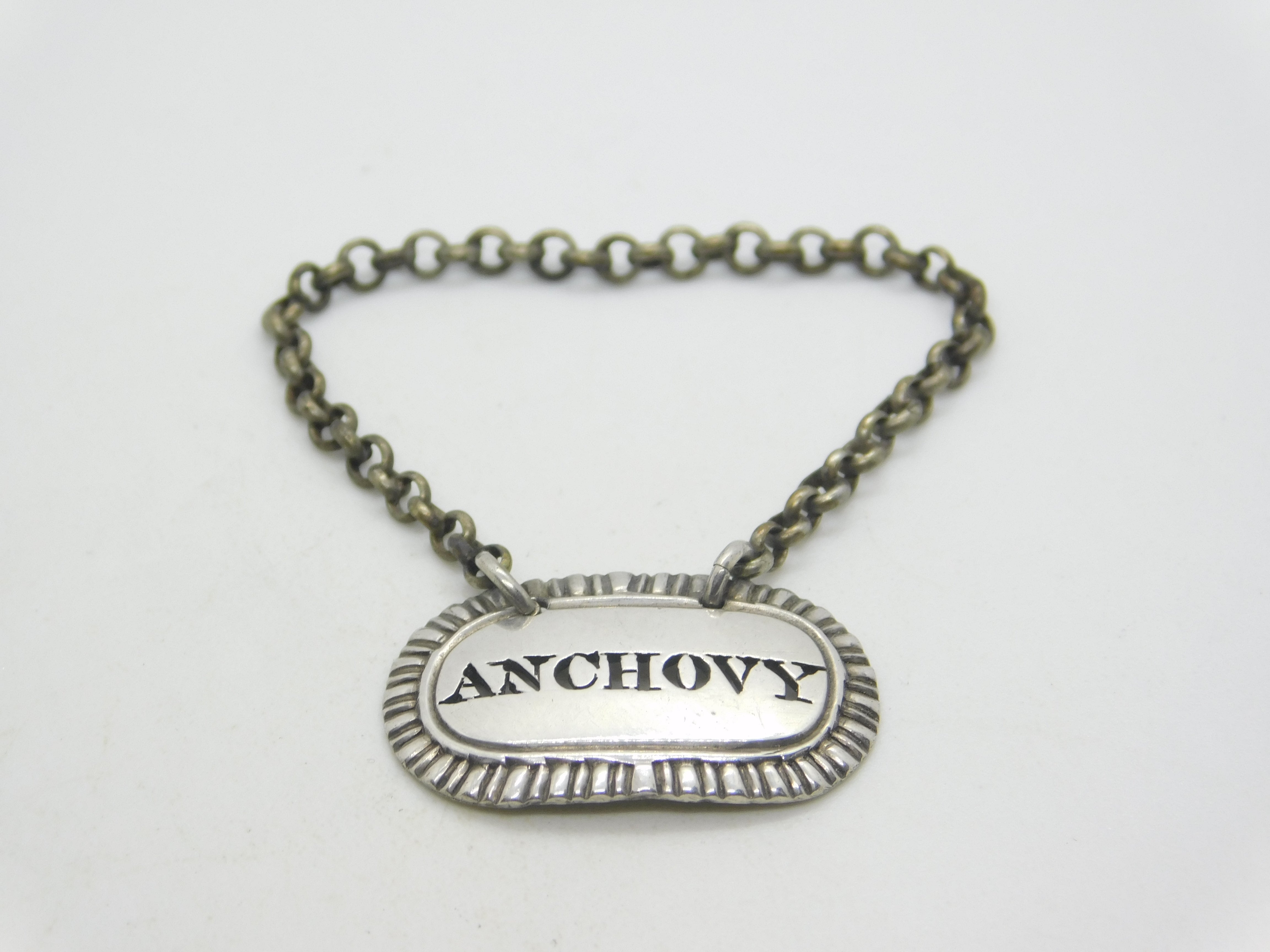 George III Sterling Silver Anchovy Sauce Label Antique c1800 Phipps & Robinson