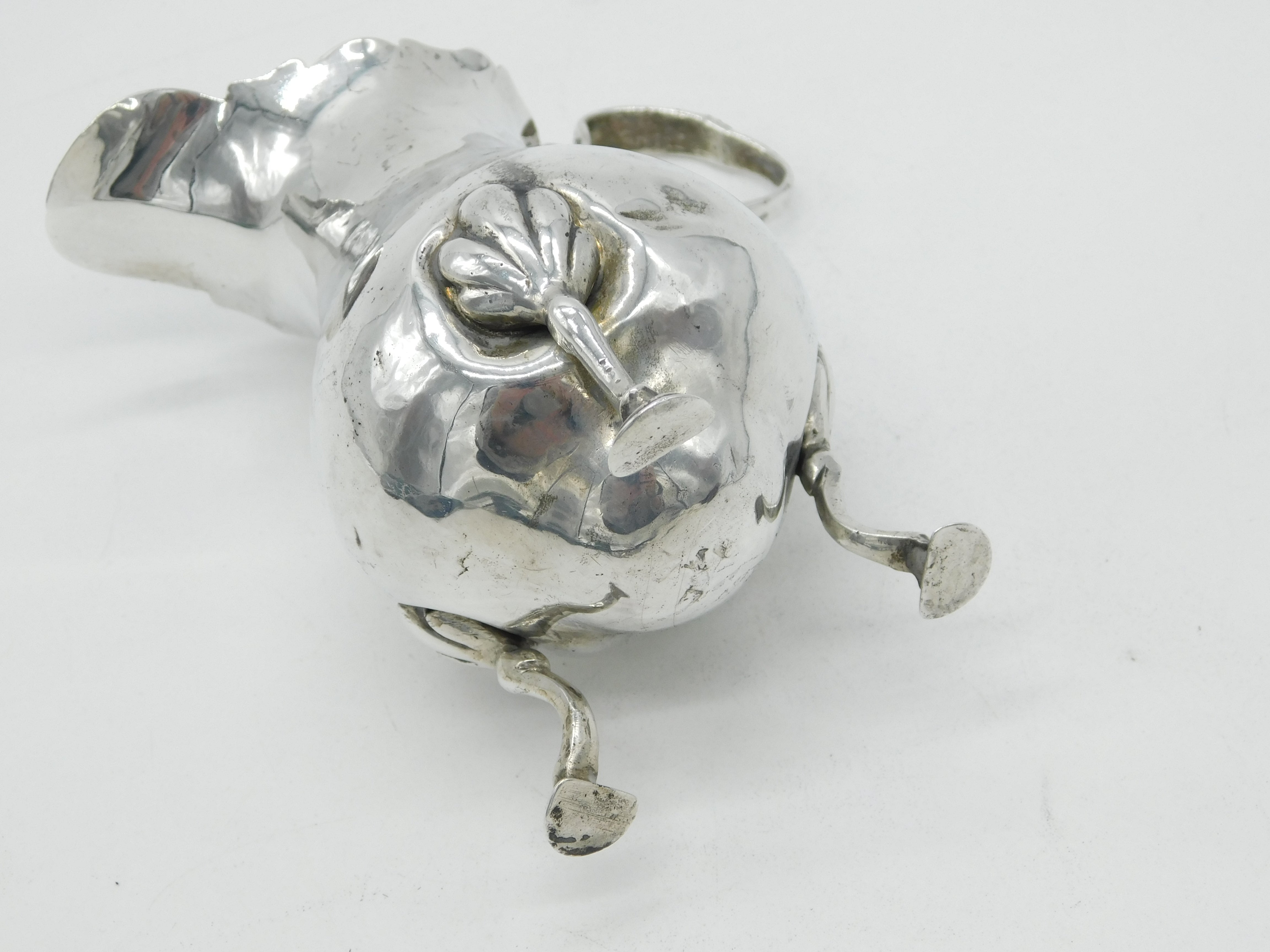 Details: A fantastic and wonderfully designed antique georgian sterling silver cream jug with lovely scrolled handle hallmarked faintly to the base c1760. Unusual design with bulge in the base. This is a wonderful item that would make a perfect gift or addition to any collection. The BOX pictured is for PRESENTATION ONLY and is NOT included in the listings but used to frame the pictures unless specifically stated otherwise.