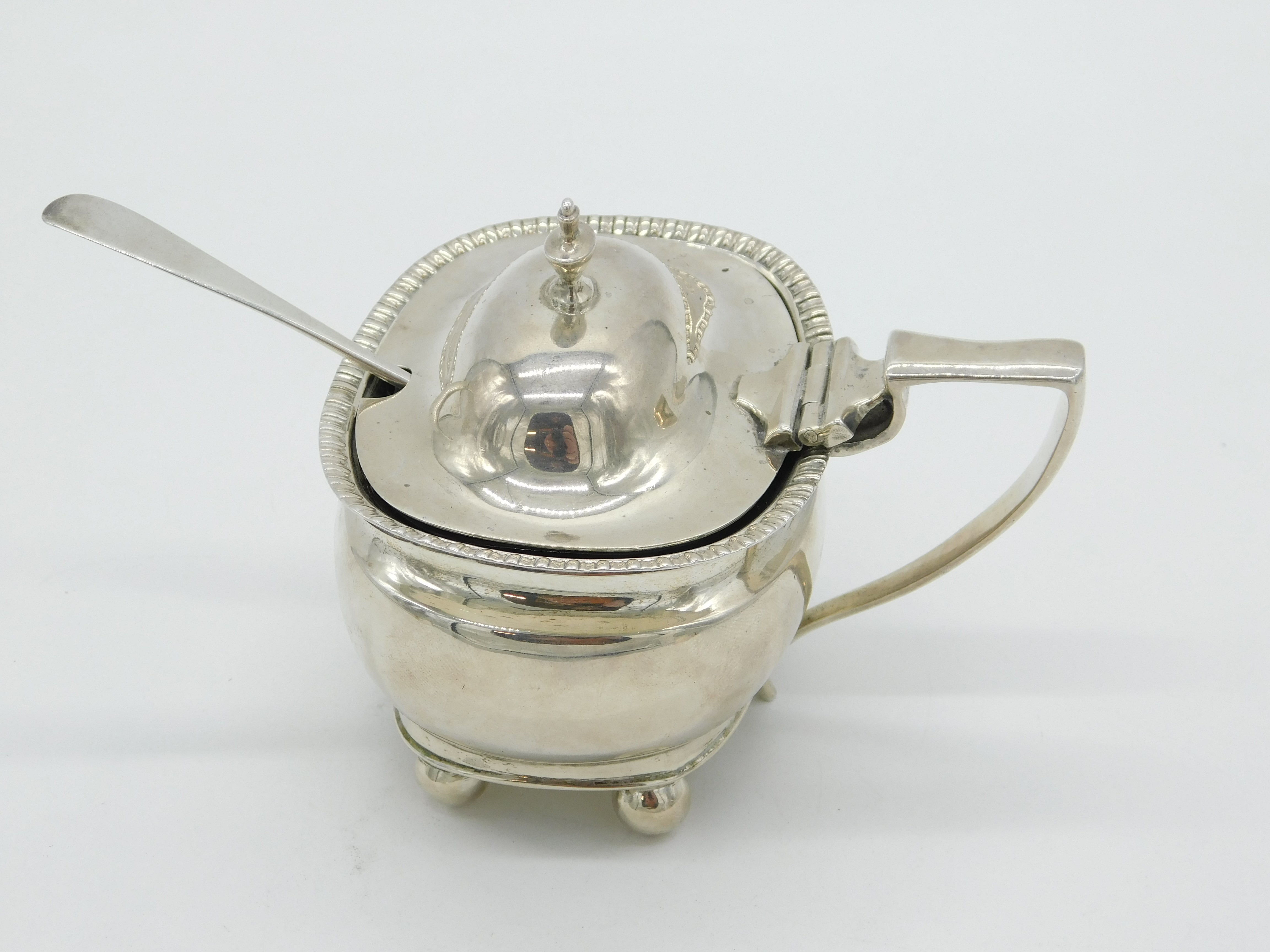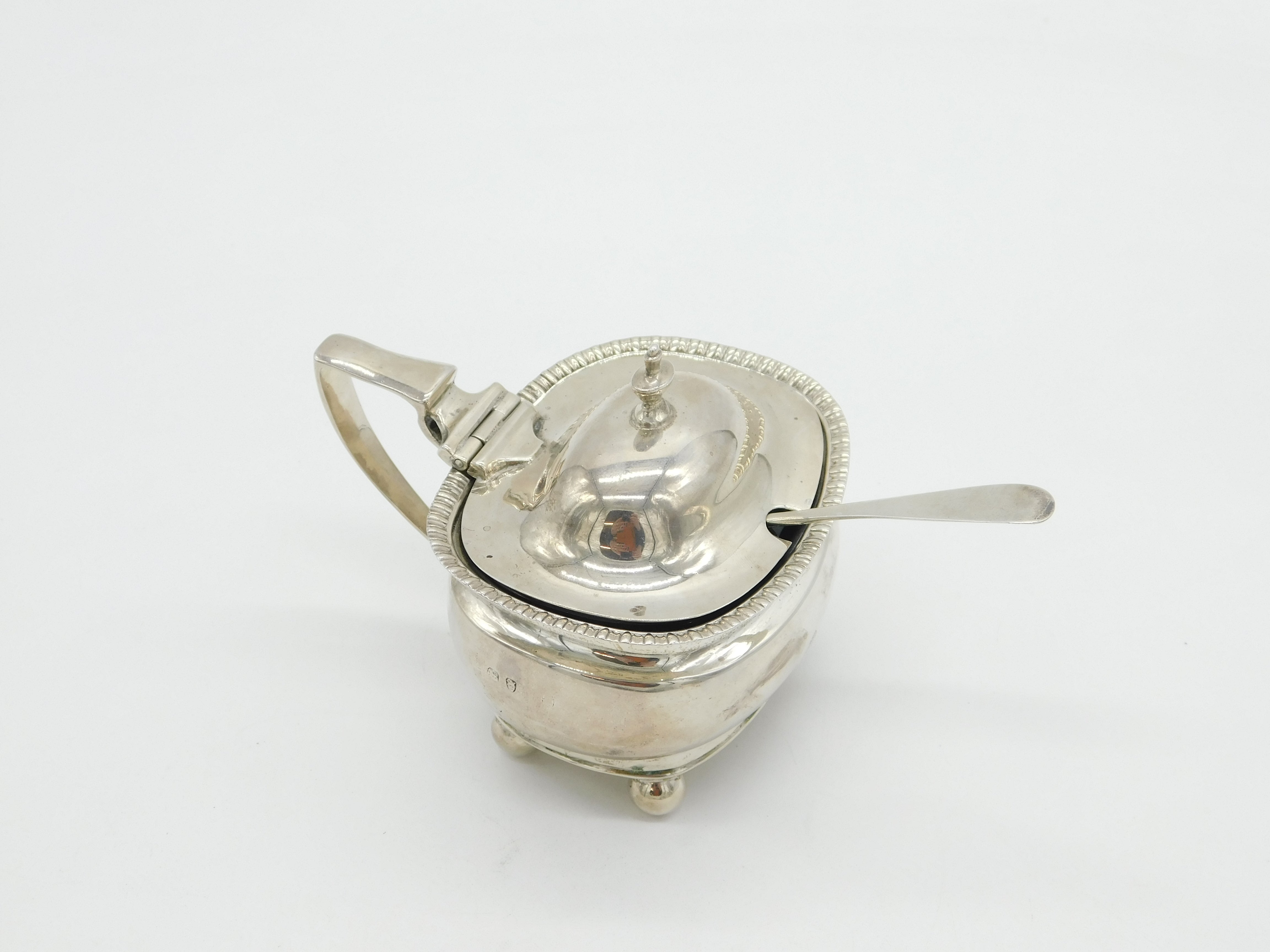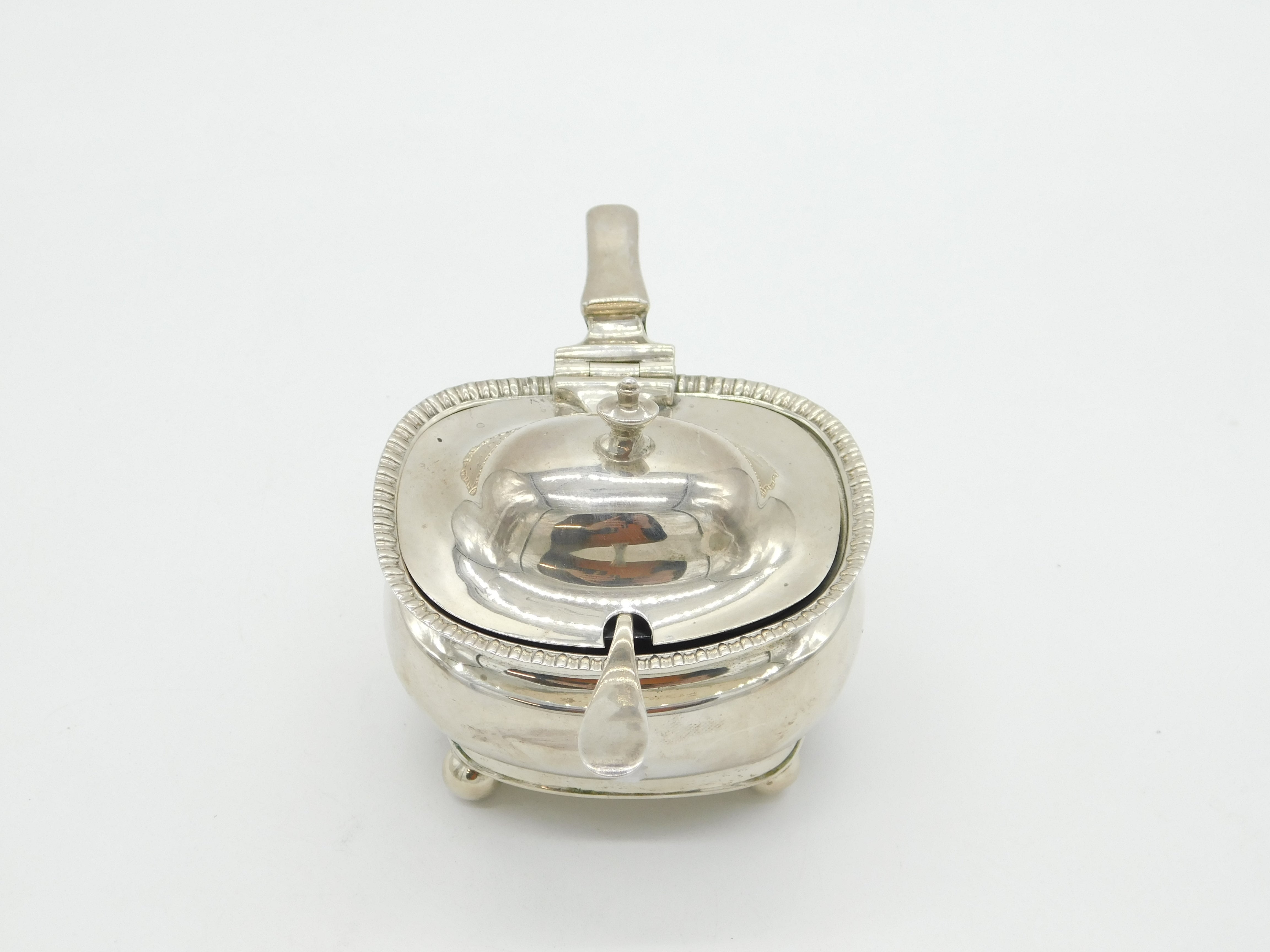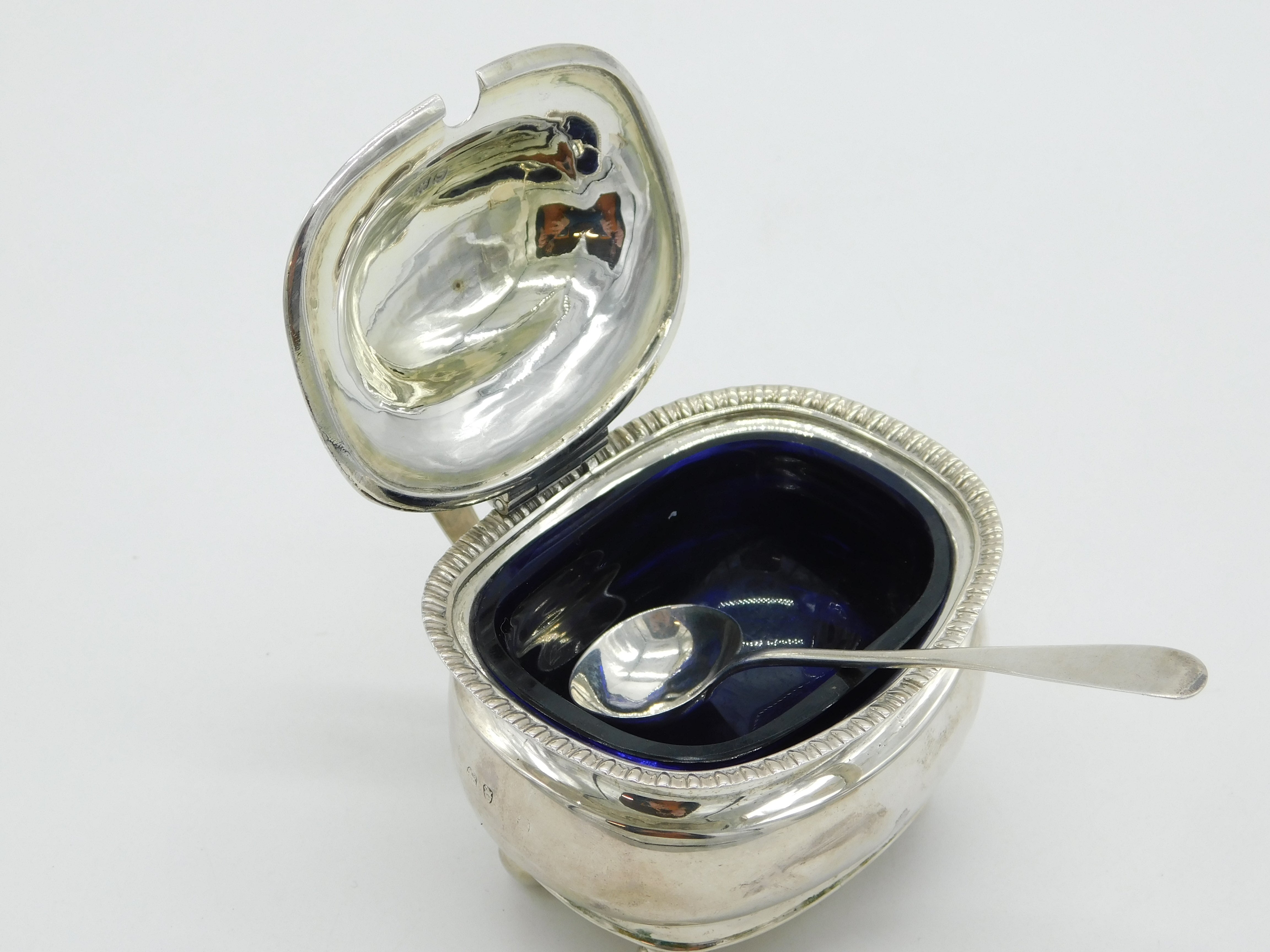 George III Sterling Silver Blue Glass Lined Mustard Pot Antique c1800 London