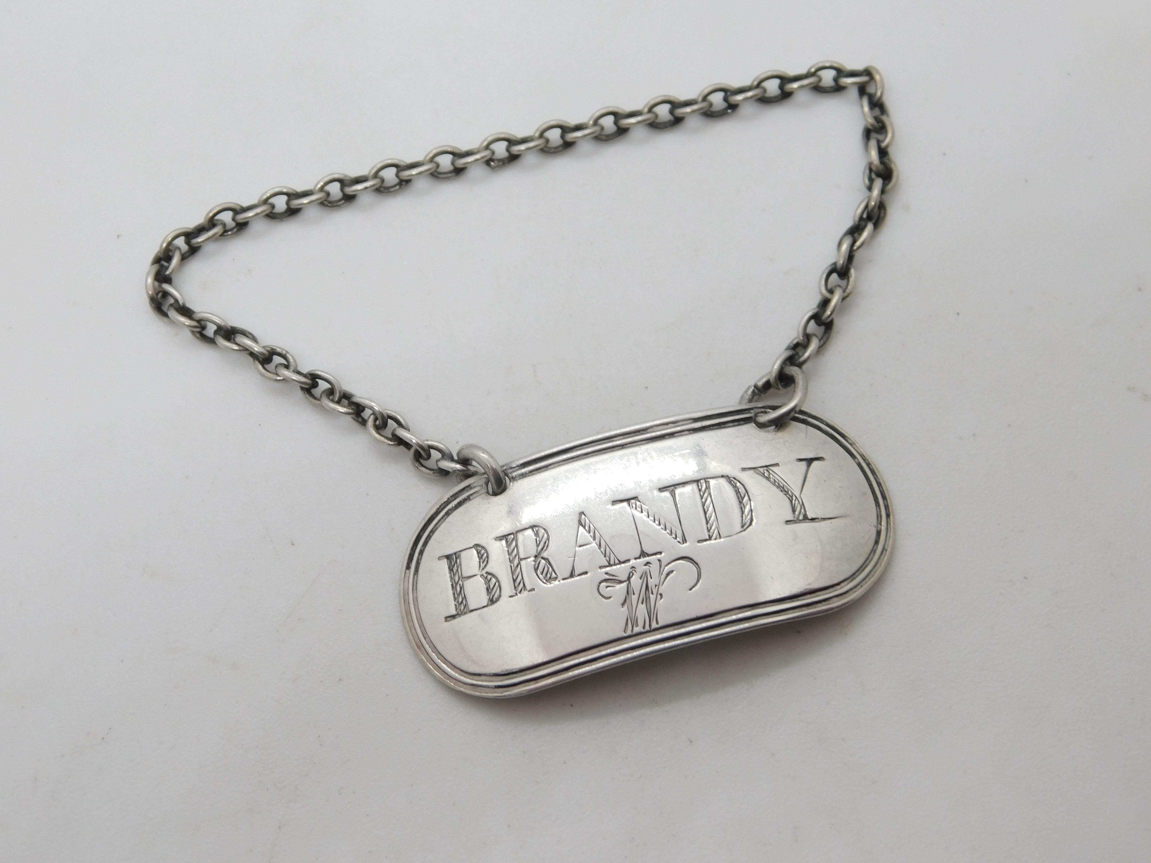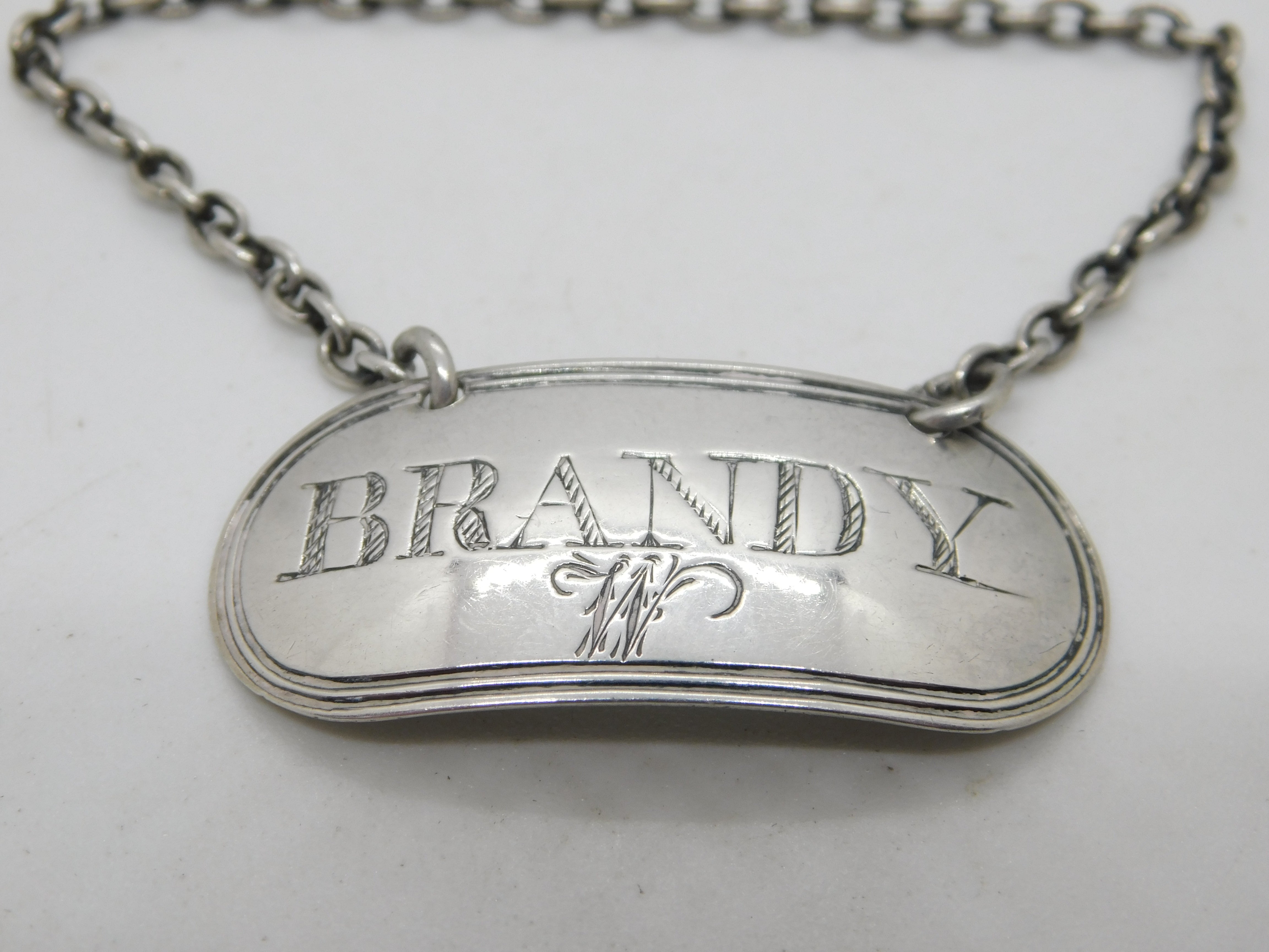 George III Sterling Silver Brandy Decanter Label Antique 1805 Birmingham