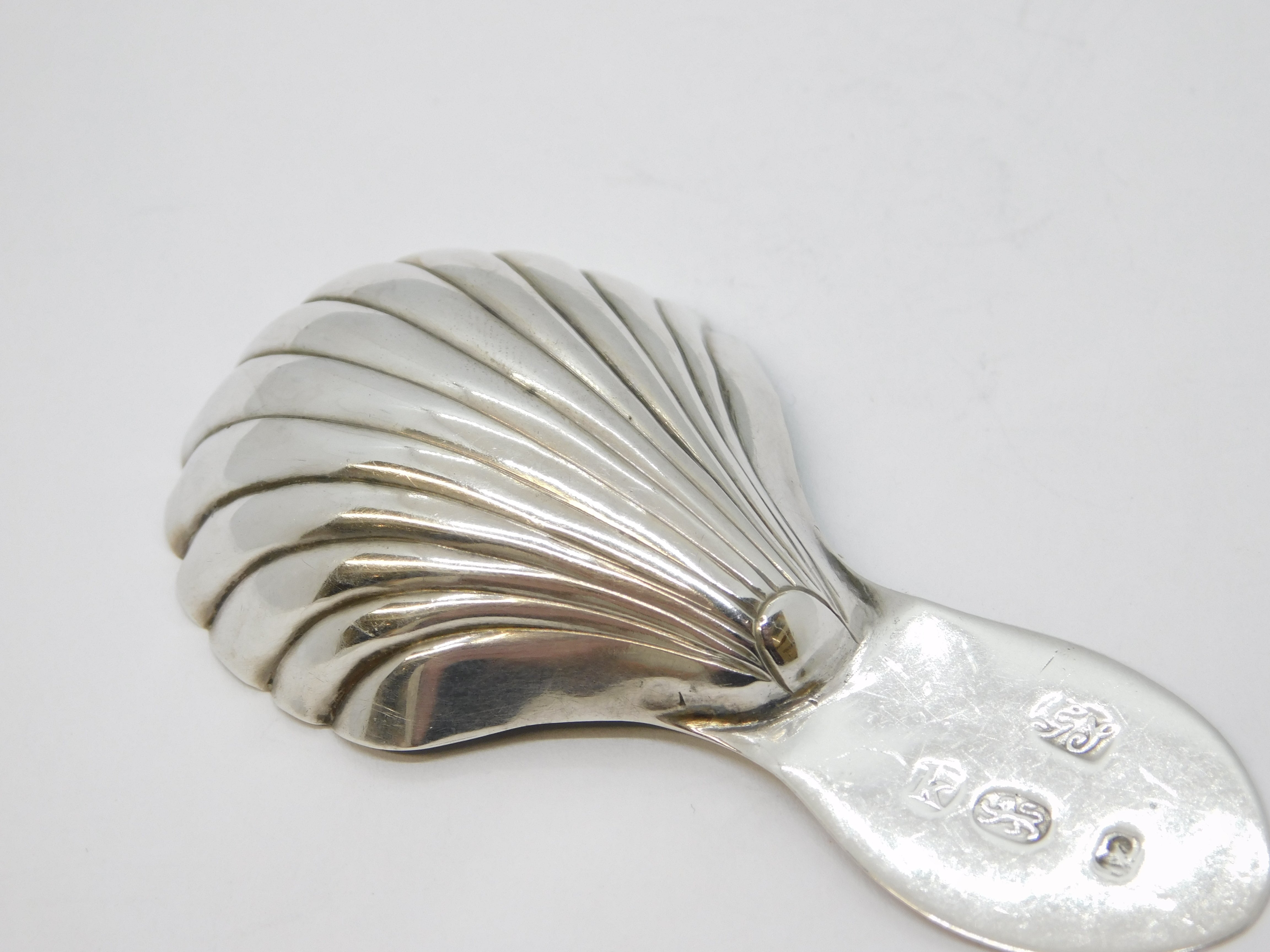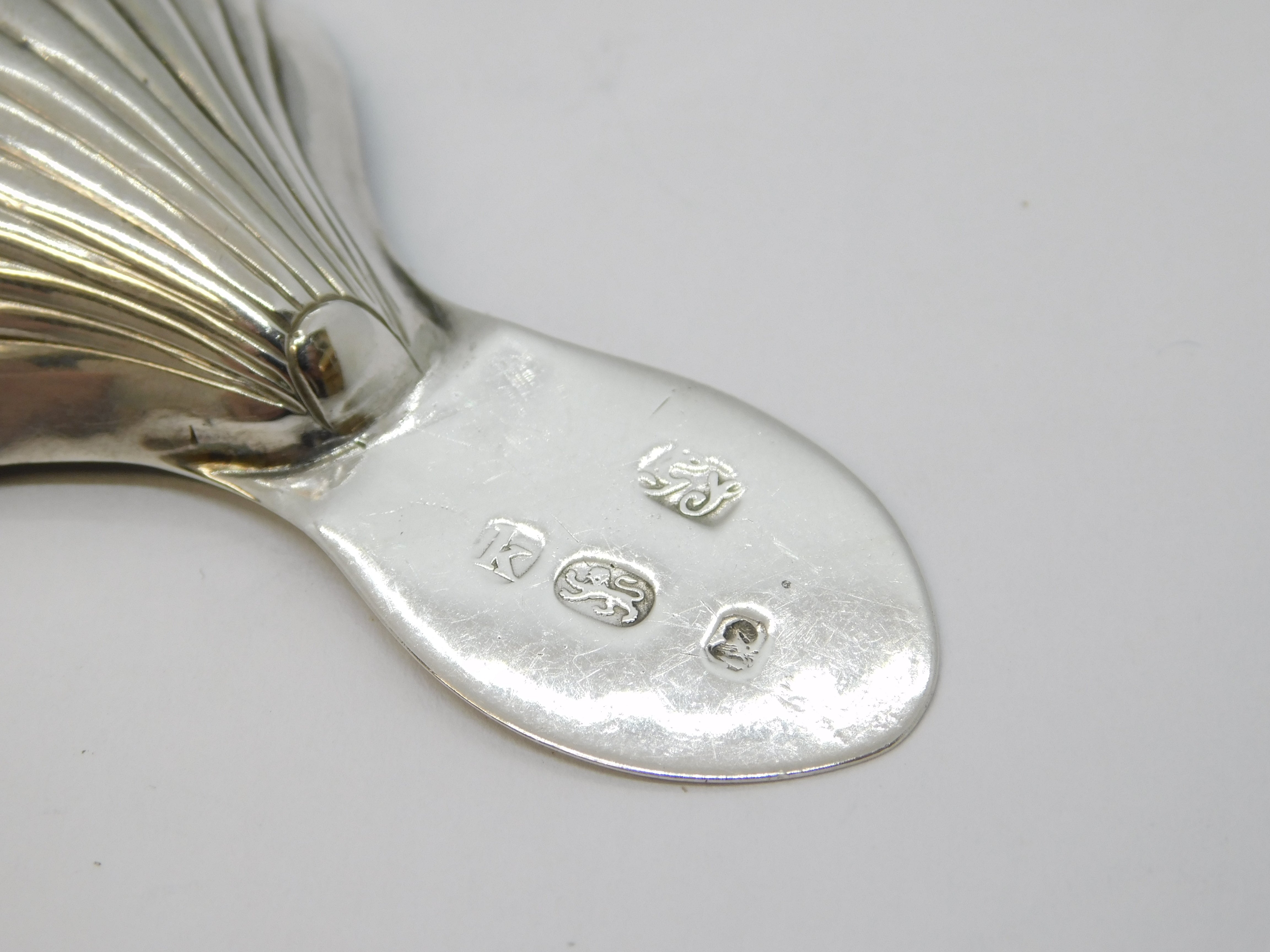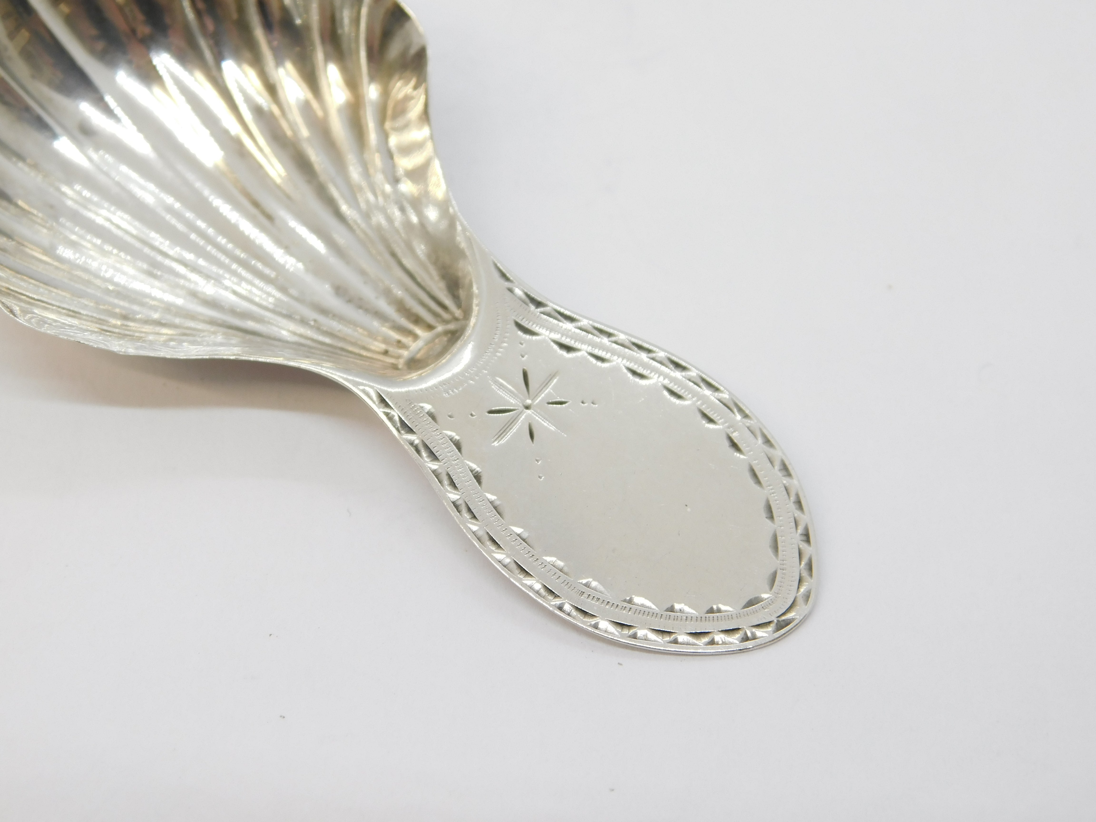 George III Sterling Silver Bright Cut Shell Tea Caddy Spoon Antique 1785 London