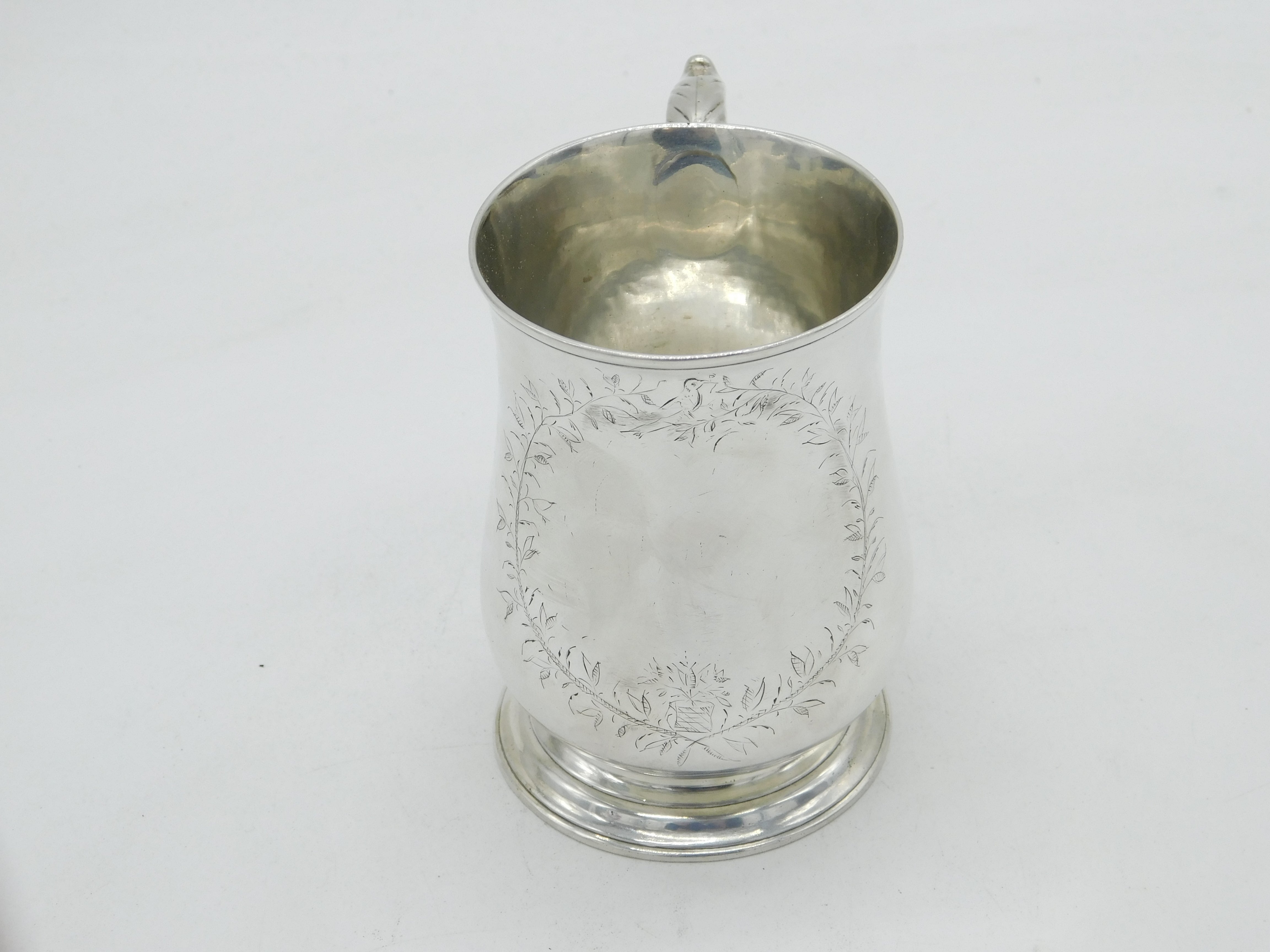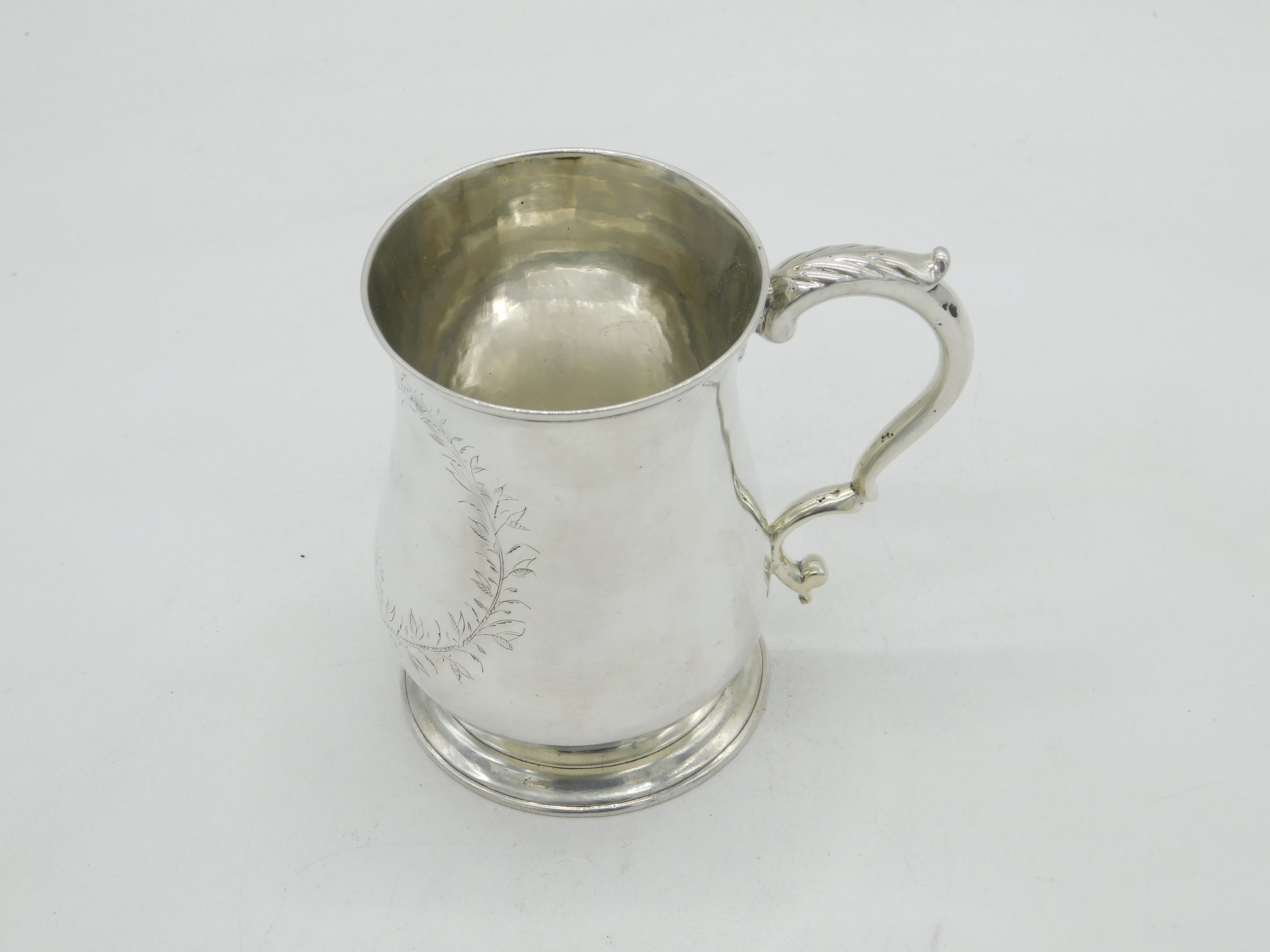 Details: A fantastic and wonderfully designed antique early-georgian sterling silver christening mug with lovely applied wreath engraving around a central cartouche, hallmarked for London 1760 by William Cripps. This is a wonderful item that would make a perfect gift or addition to any collection. We are more than happy to provide XRF reports for items upon request.