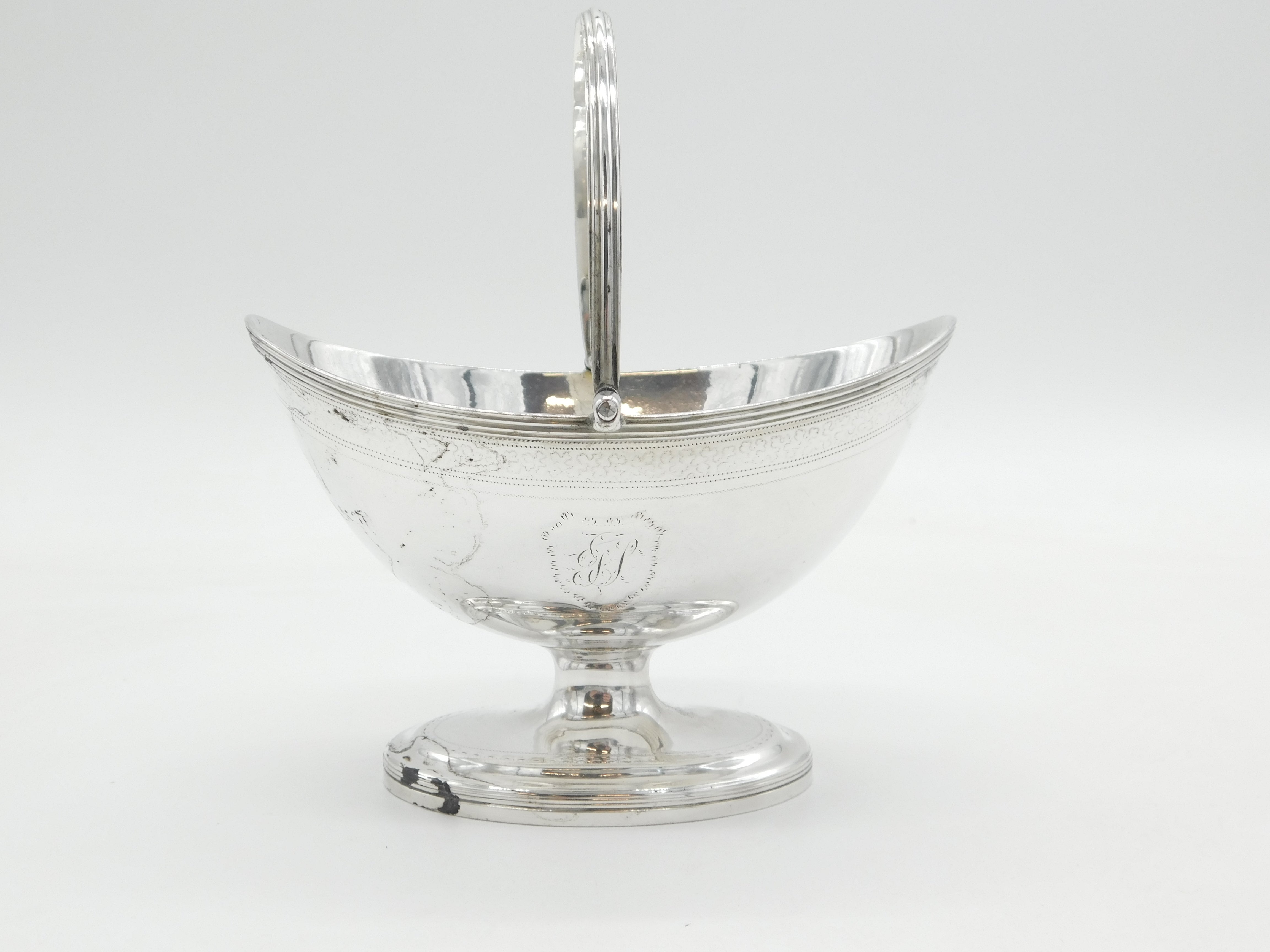 George III Sterling Silver Crested Swing Handle Sugar Basket Antique 1791 London