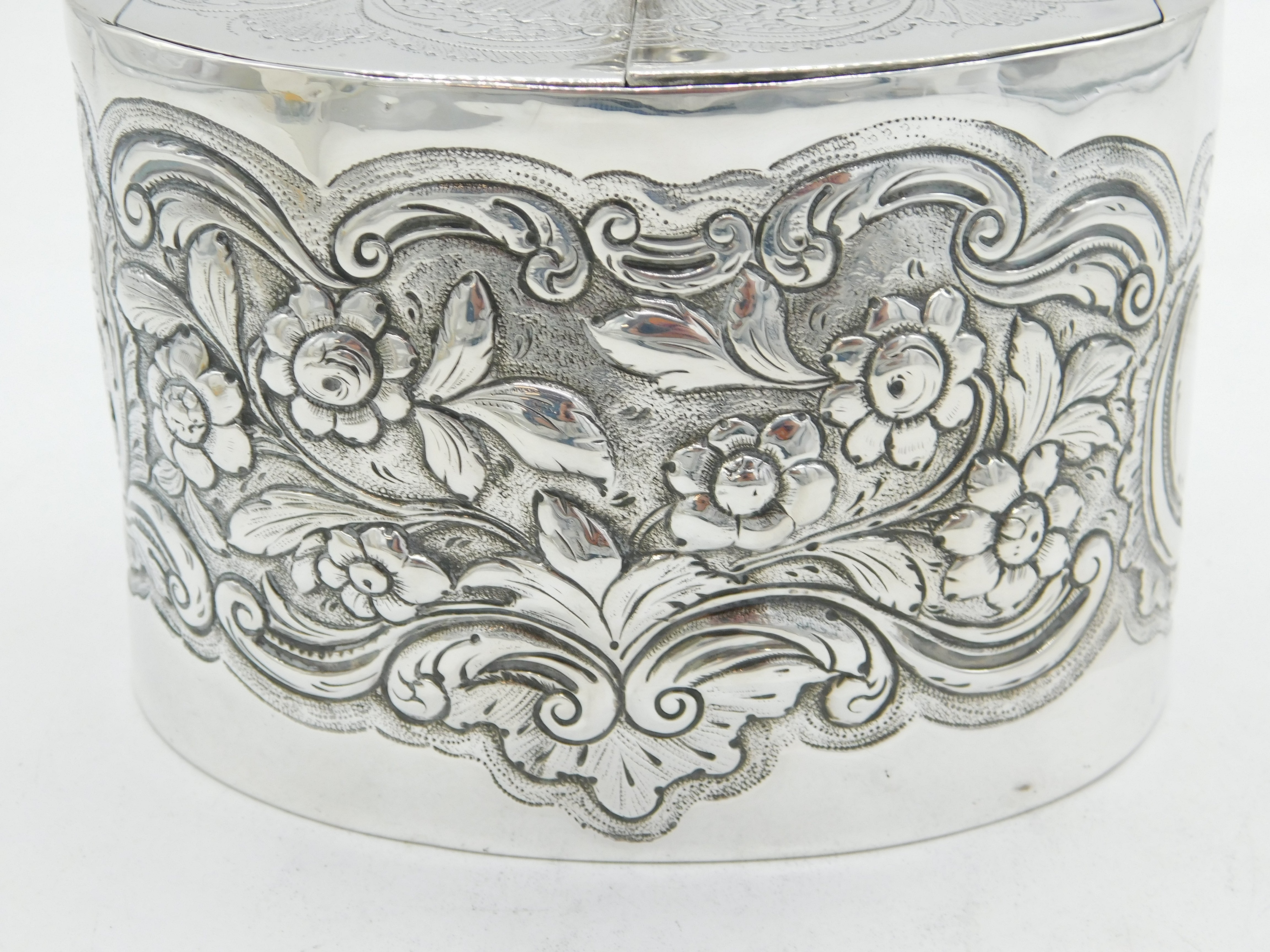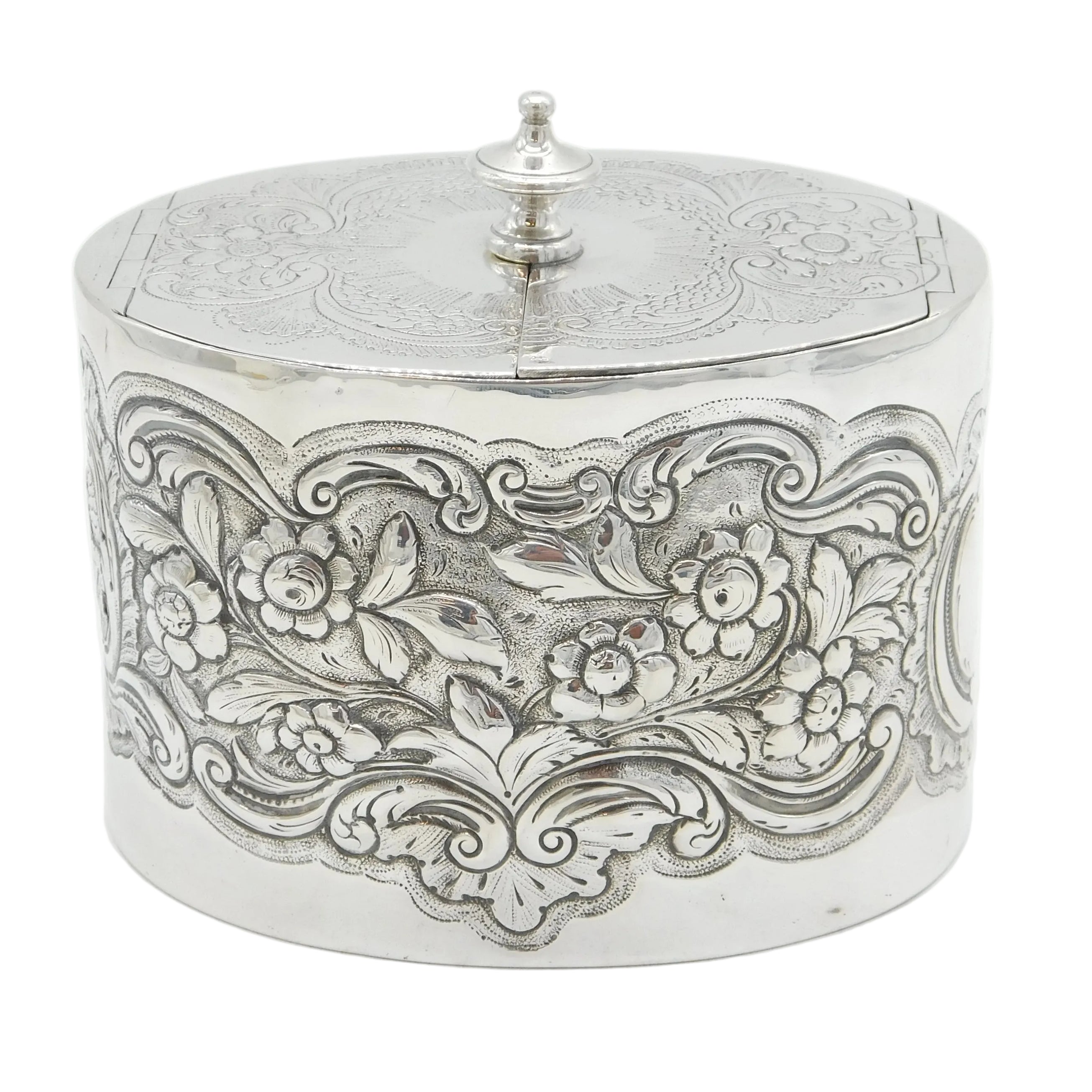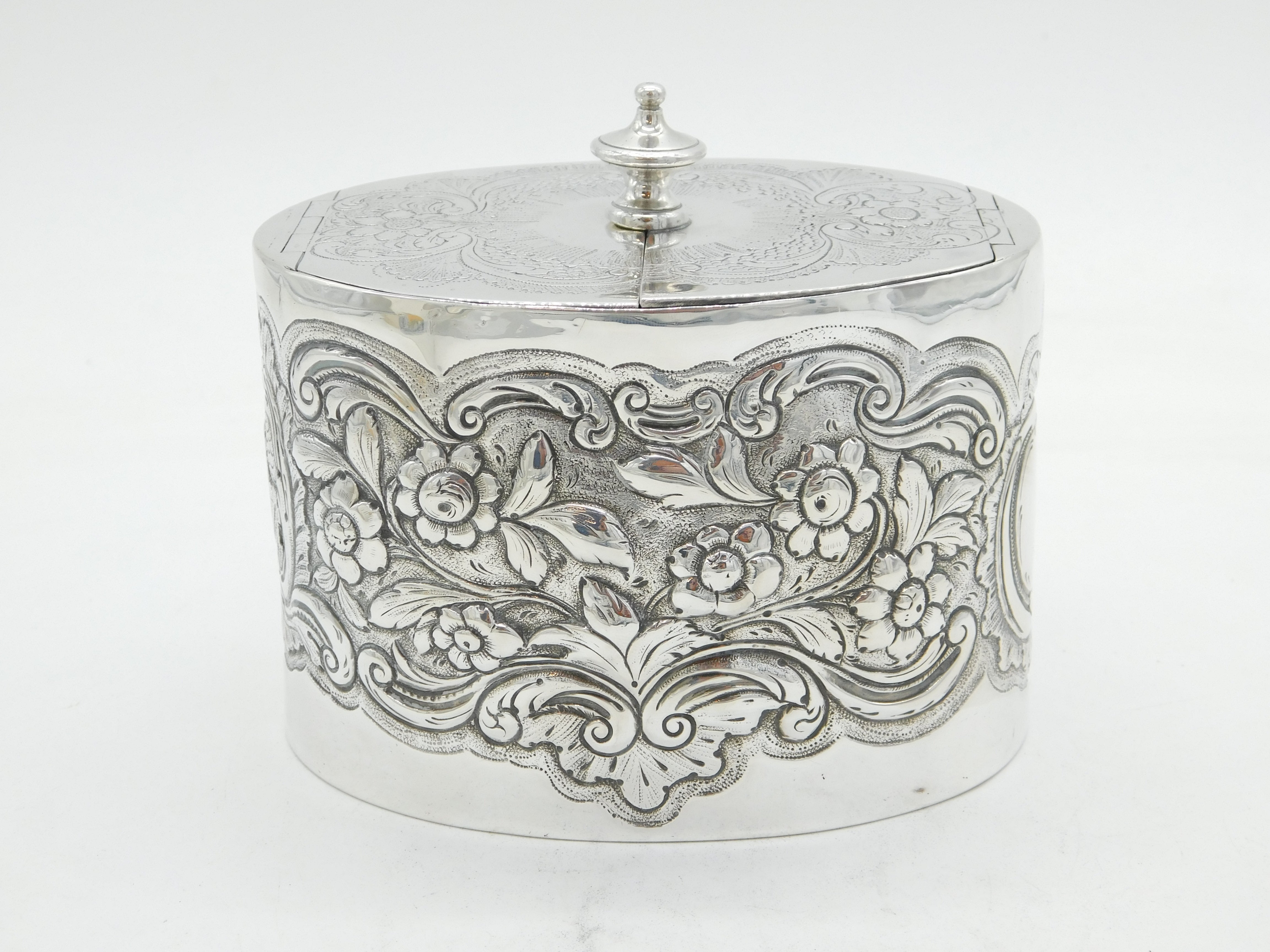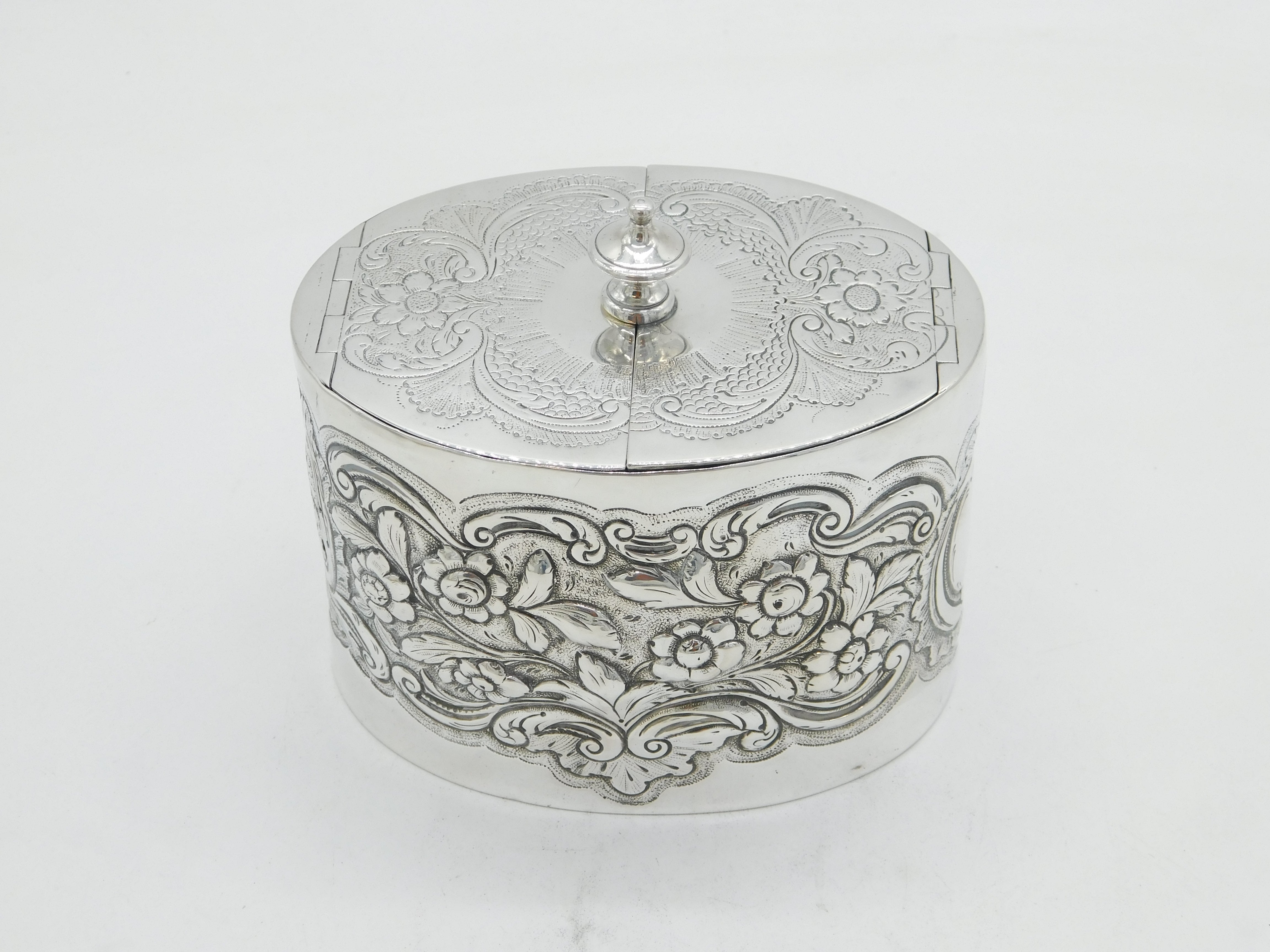 George III Sterling Silver Floral Embossed Tea Caddy Antique 1777 London