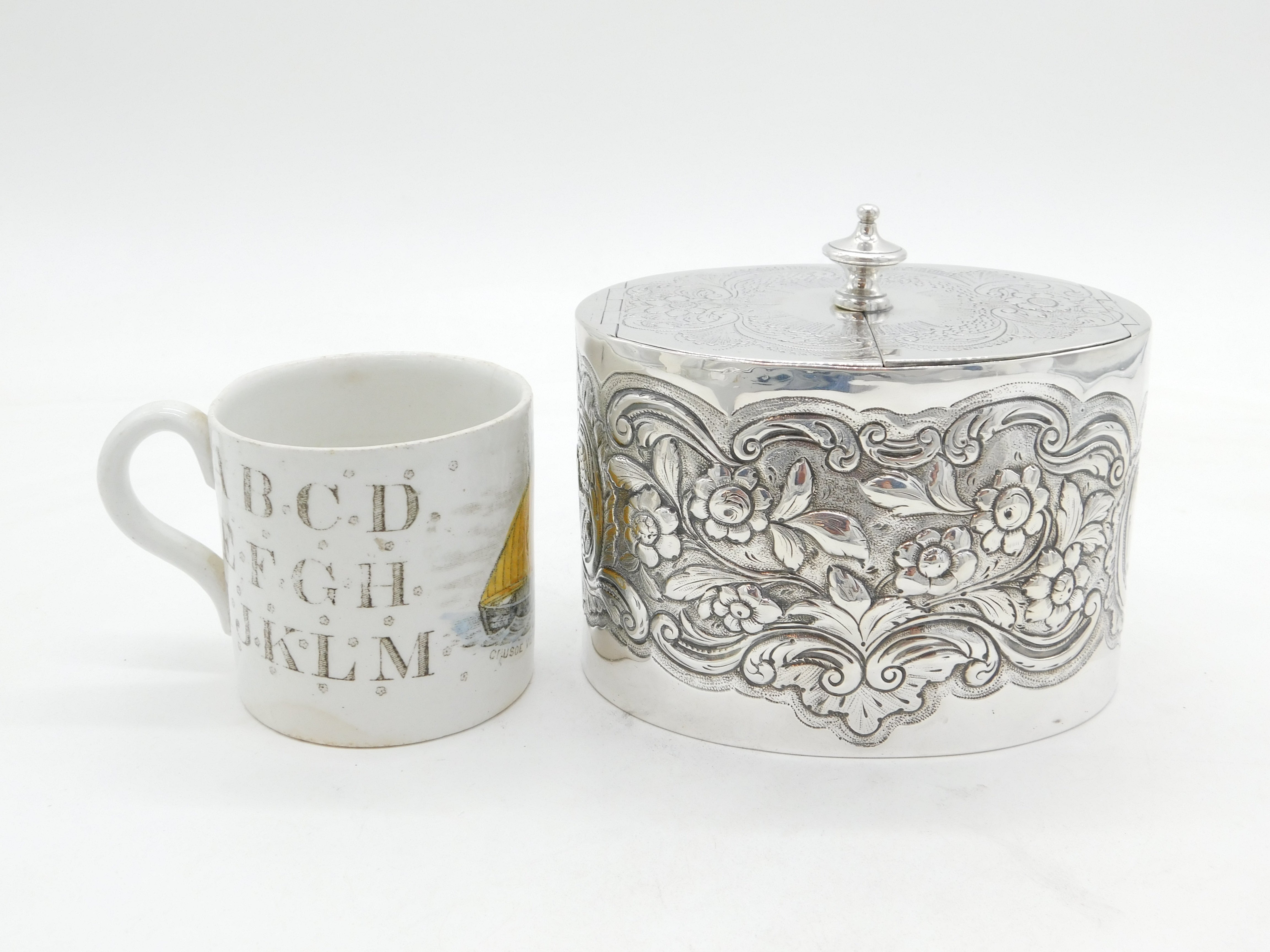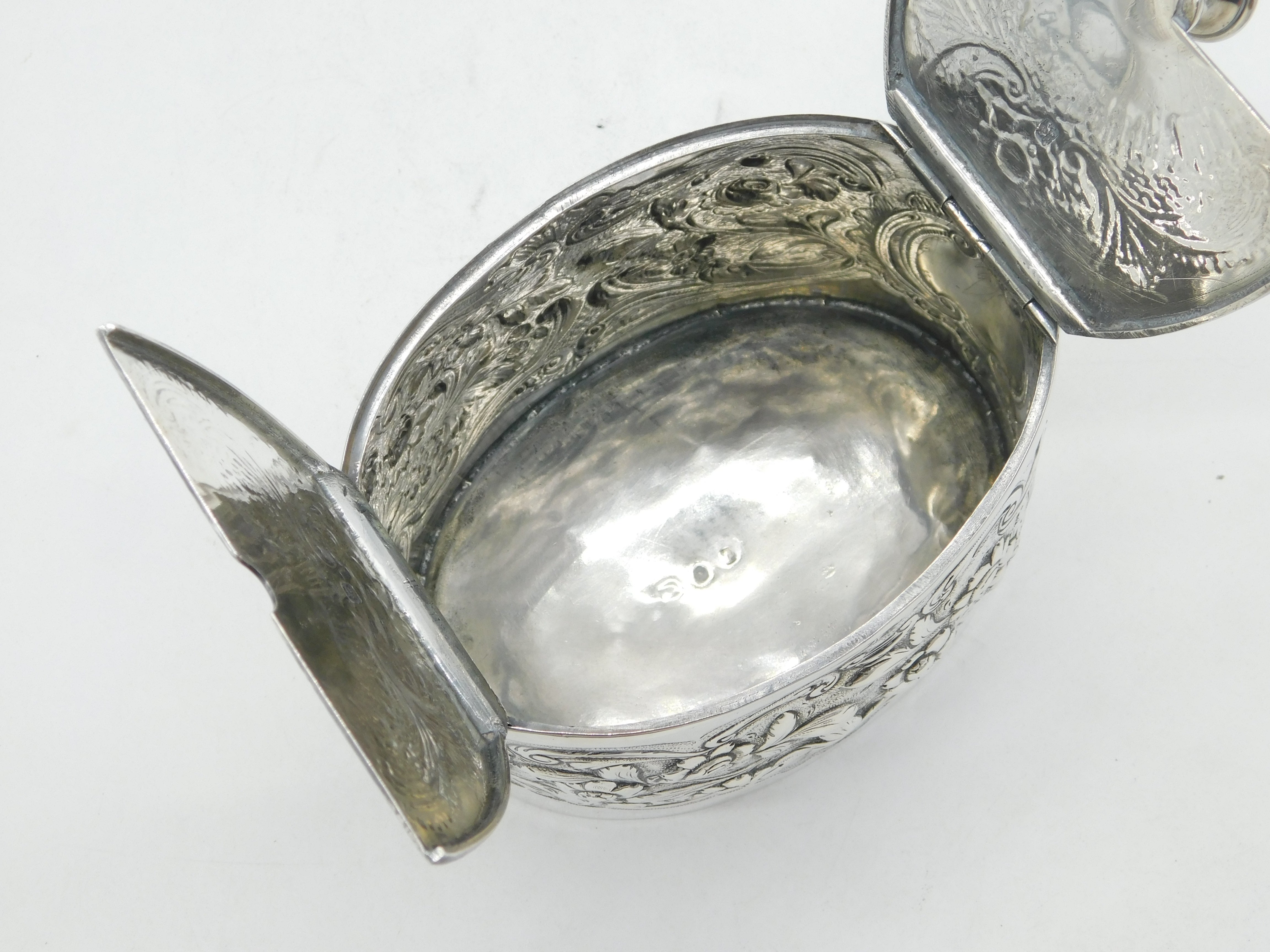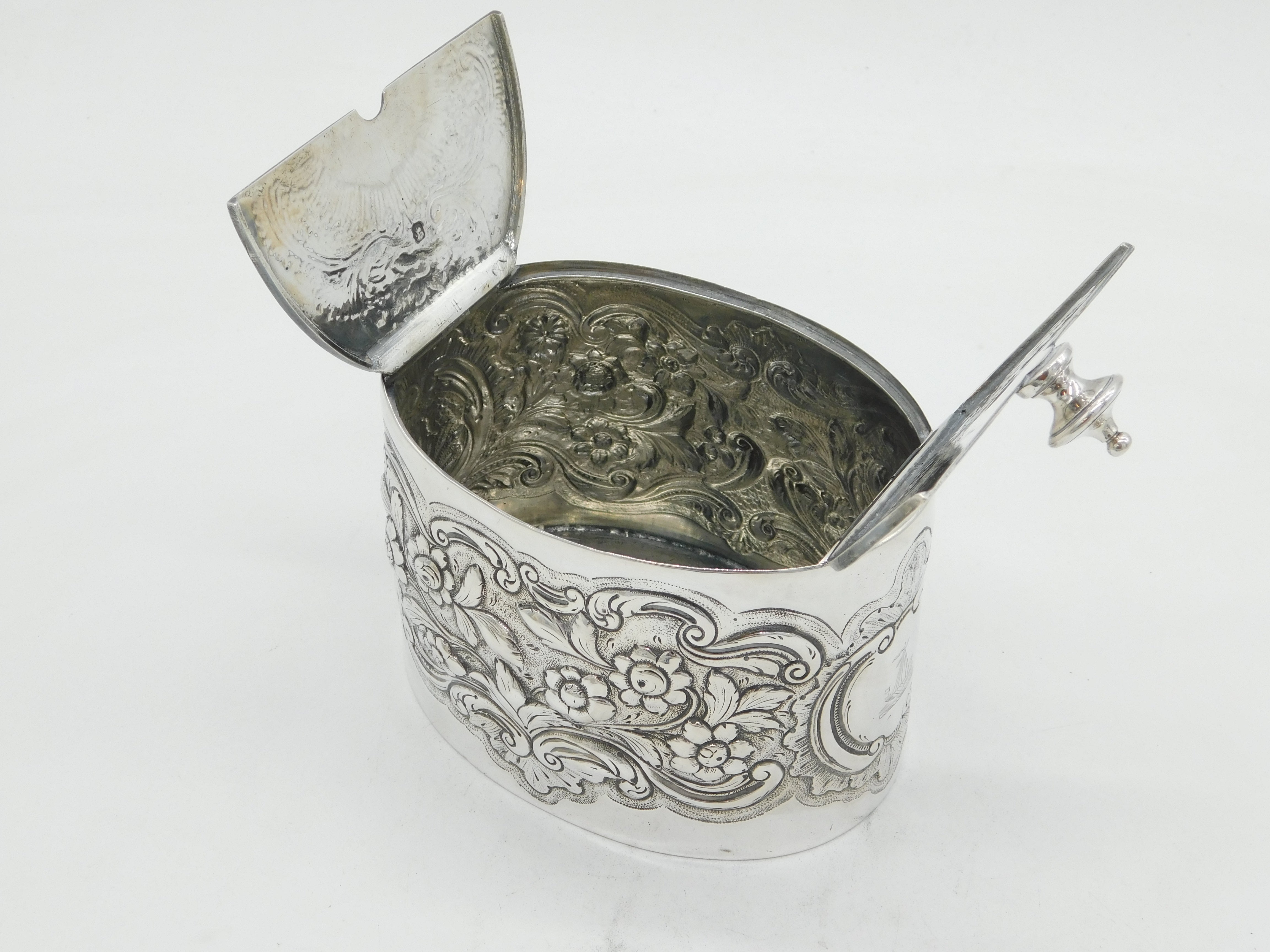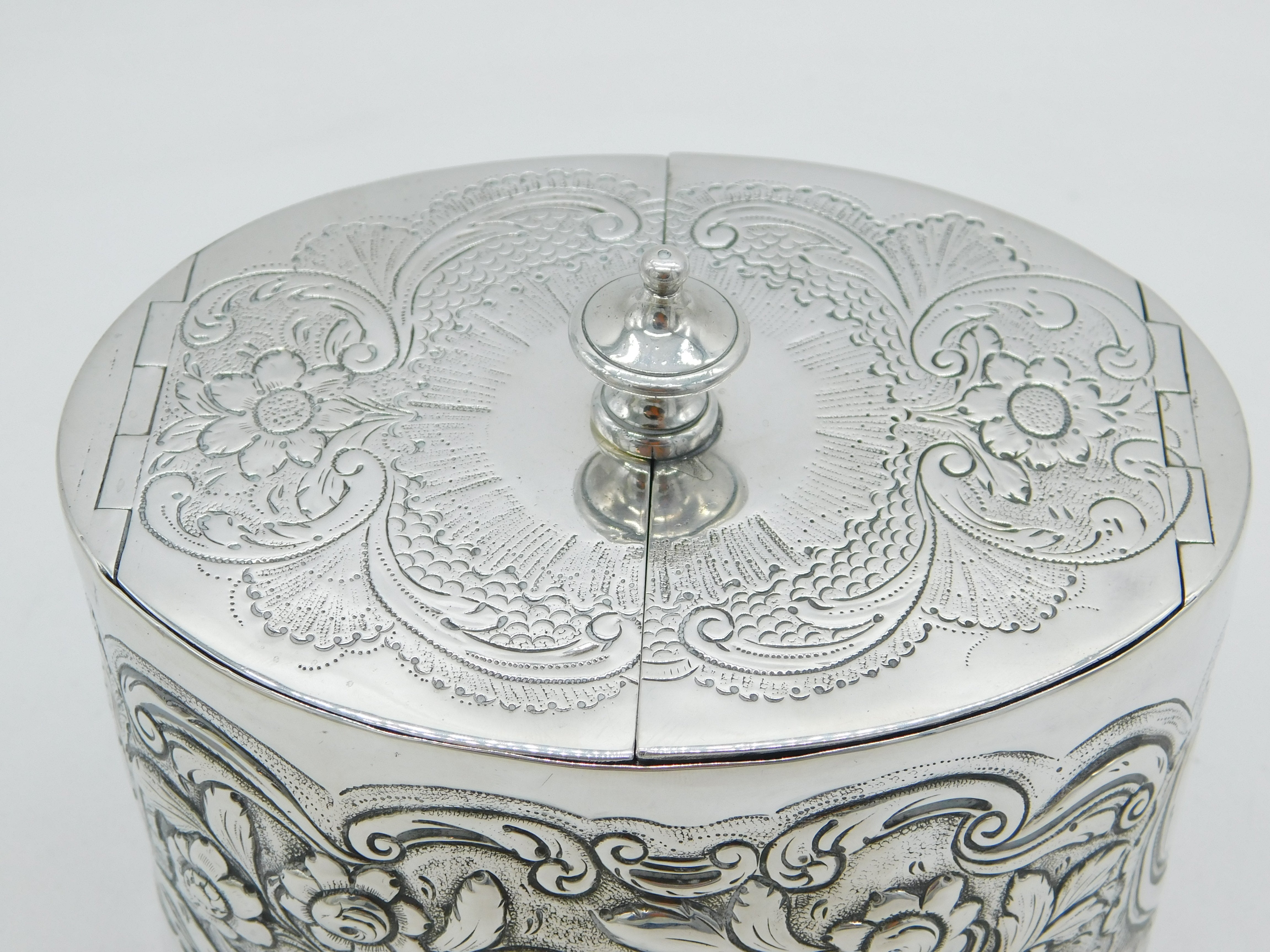 George III Sterling Silver Floral Embossed Tea Caddy Antique 1777 London